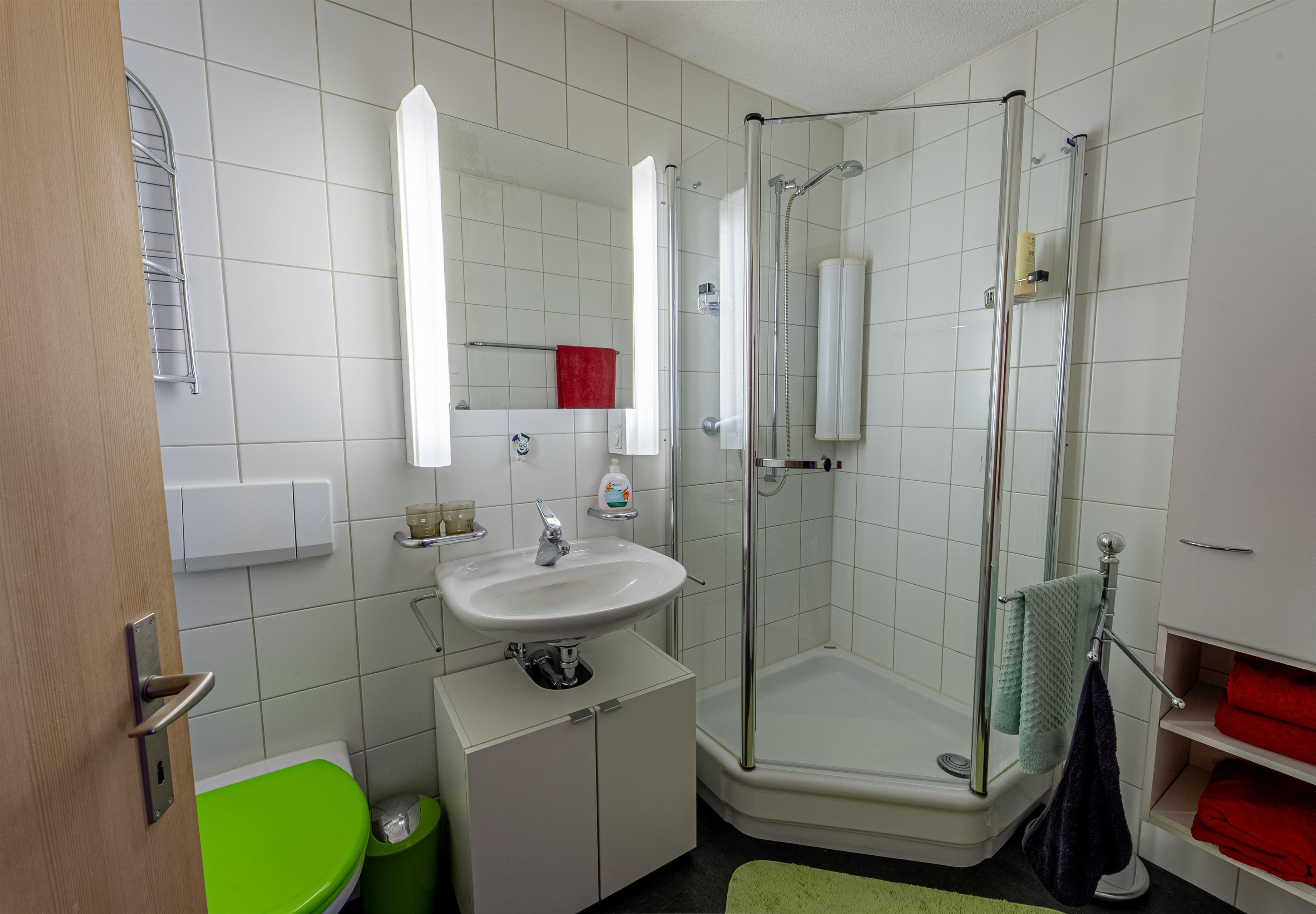 - 1 Badezimmer mit Duschkabine, WC und Lavabo