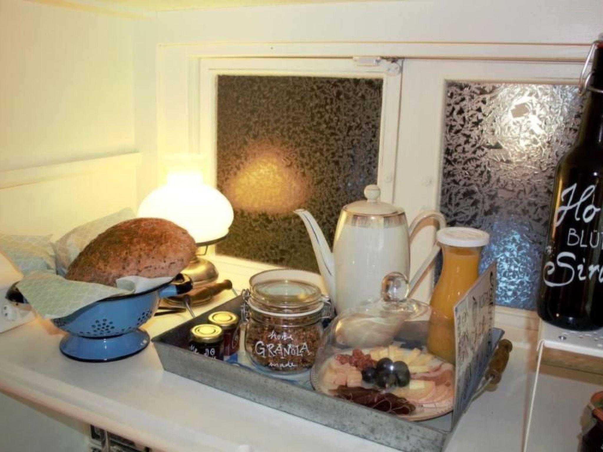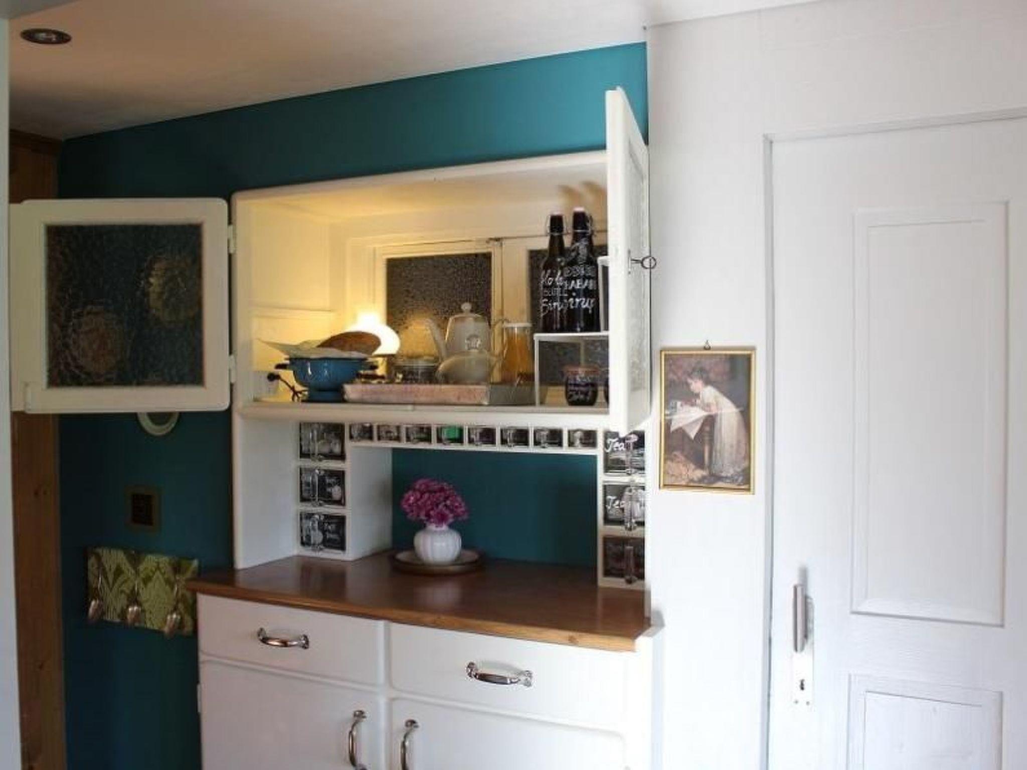 Wir haben die Wohnung mit einem restaurierten Küchenmöbel, von unserem Wohnbereich abgetrennt. Das gute Möbelstück haben wir umfunktioniert, damit man durch das Kästli kommunizieren kann (beide Seiten können öffnen) und wir euch über die Durchreiche das Frühstück (auf Bestellung) bereitstellen können. Es ist uns wichtig, dass ihr als Gäste die uneingeschränkte Privatsphäre habt und trotzdem ganz unkompliziert mit uns in Kontakt treten könnt.