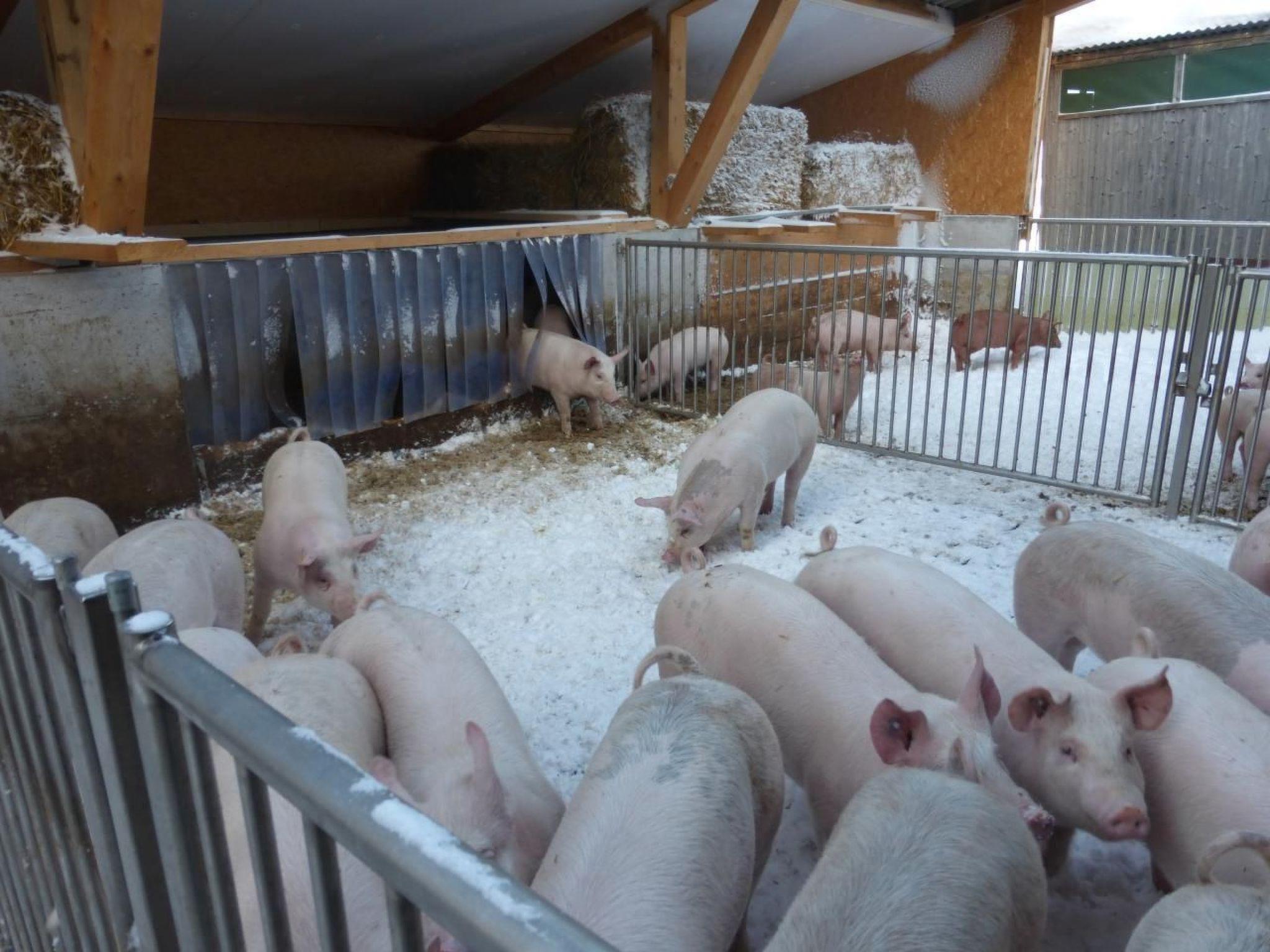 Die Milchkühe und Rinder befinden sich im Sommer auf der Alp (ca 2km entfernt) und werden dort gemolken.