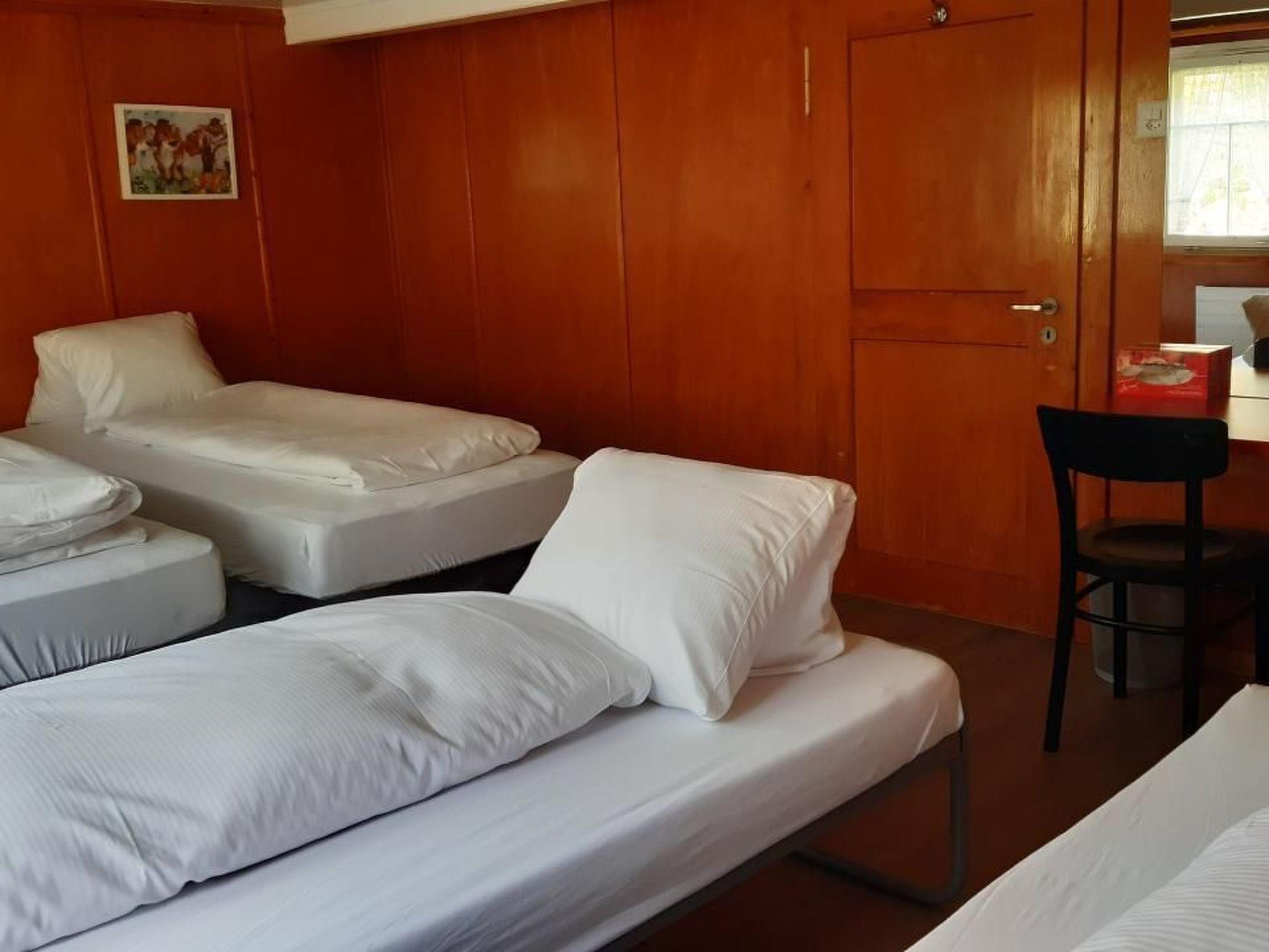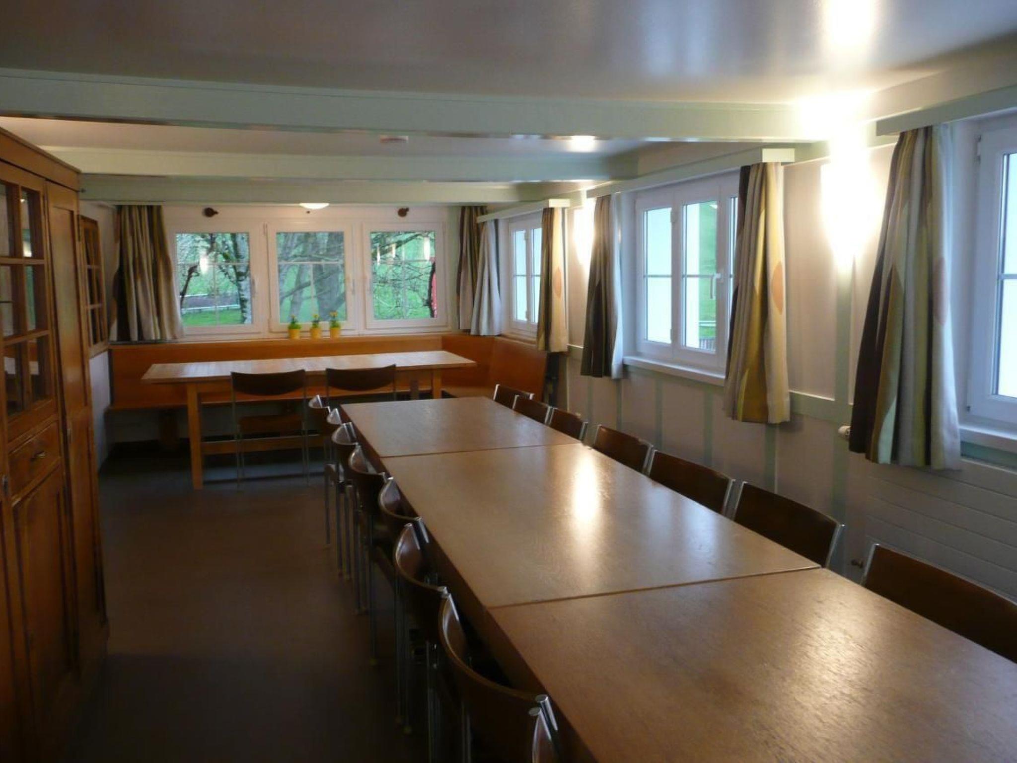 Im Inneren erwartet Sie eine komfortable Ausstattung für einen angenehmen Aufenthalt. Das Haus beherbergt 15 Zimmer, ausgestattet mit Duvets und Kissen, sowie Etagenduschen. Für gesellige Stunden stehen Ihnen eine gemütliche Gaststube mit Platz für 20 Personen, ein angrenzendes Säli für 33 Personen und ein Sitzungszimmer für 10 Personen zur Verfügung. Die zweckmäßig eingerichtete Gastro-Küche ist mit allem Nötigen, inklusive diverser Geräte und Geschirr für die Bewirtung von bis zu 50 Personen, bestens ausgestattet.