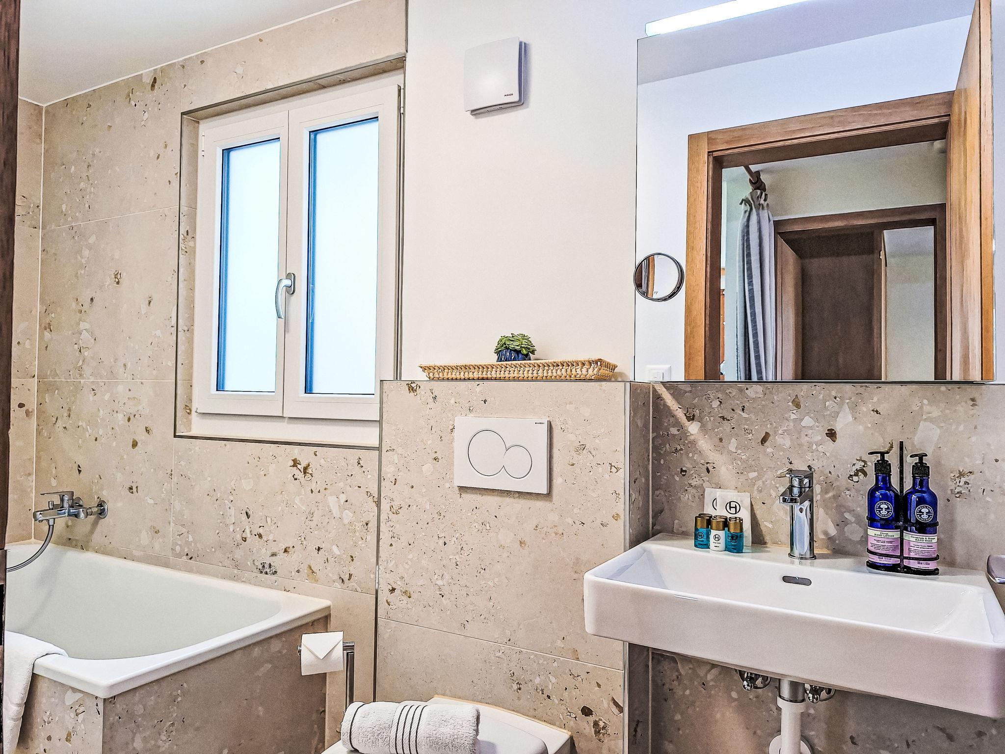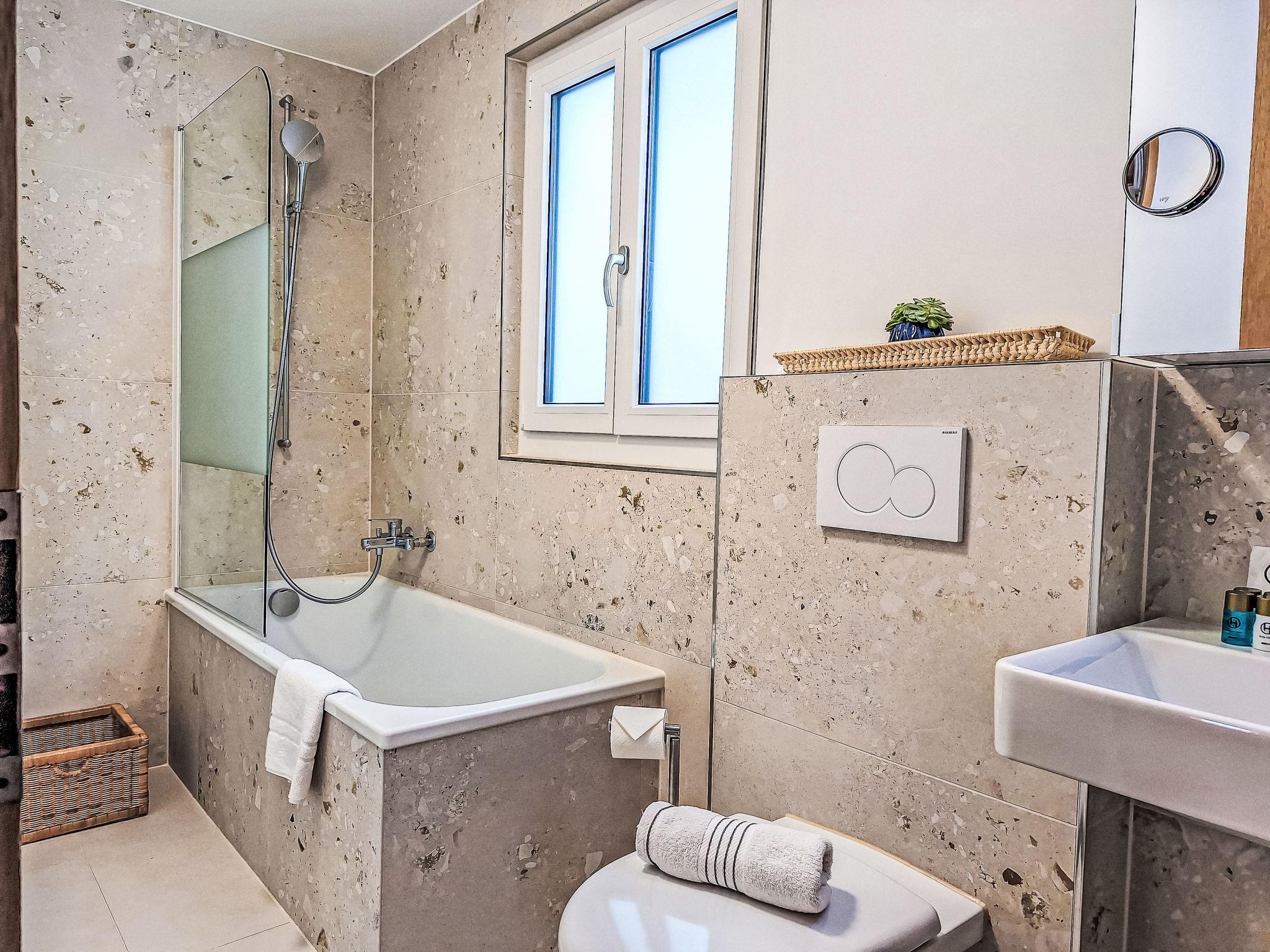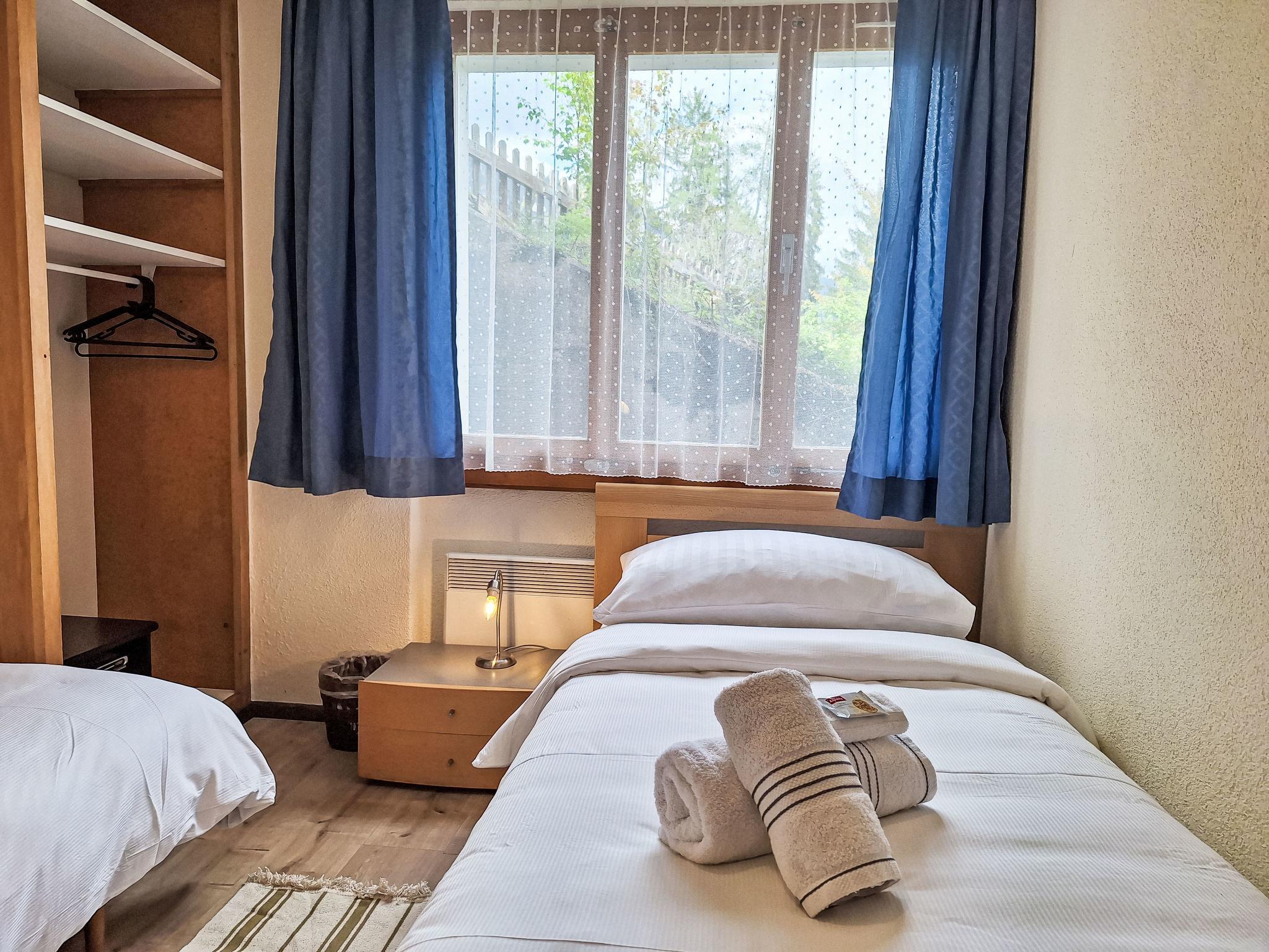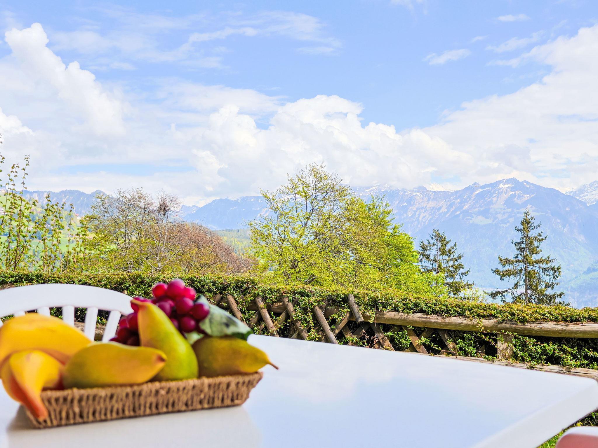 "Chalet Schöpfli", 3-Zimmer-Wohnung 65 m2, im Erdgeschoss, Südlage. Hell, teilweise renoviert im Jahre 2025, sehr zweckmässig und gemütlich eingerichtet: grosses Wohn-/Esszimmer mit Essecke und E-Heizung. Ausgang zum Garten. 1 Zimmer mit 1 franz. Bett (160 cm, Länge 200 cm). 1 Zimmer mit 2 Betten (90 cm, Länge 200 cm). Offene Küche (4 Kochplatten, Backofen, Toaster, Wasserkocher, Mikrowelle, elektrische Kaffeemaschine, Fondue Set (Käse)). Bad/WC. E-Heizung. Heizung nicht in allen Räumen. Grosser Gartensitzplatz, Südlage. Terrassenmöbel, Liegestühle. Herrliche Panoramasicht auf den See und die Berge. Zur Verfügung: Kinderhochstuhl, Babybett bis 2 Jahre (extra), Haartrockner. Internet (WLAN, gratis). Parkplatz. Bitte beachten: eigener Eingang.
