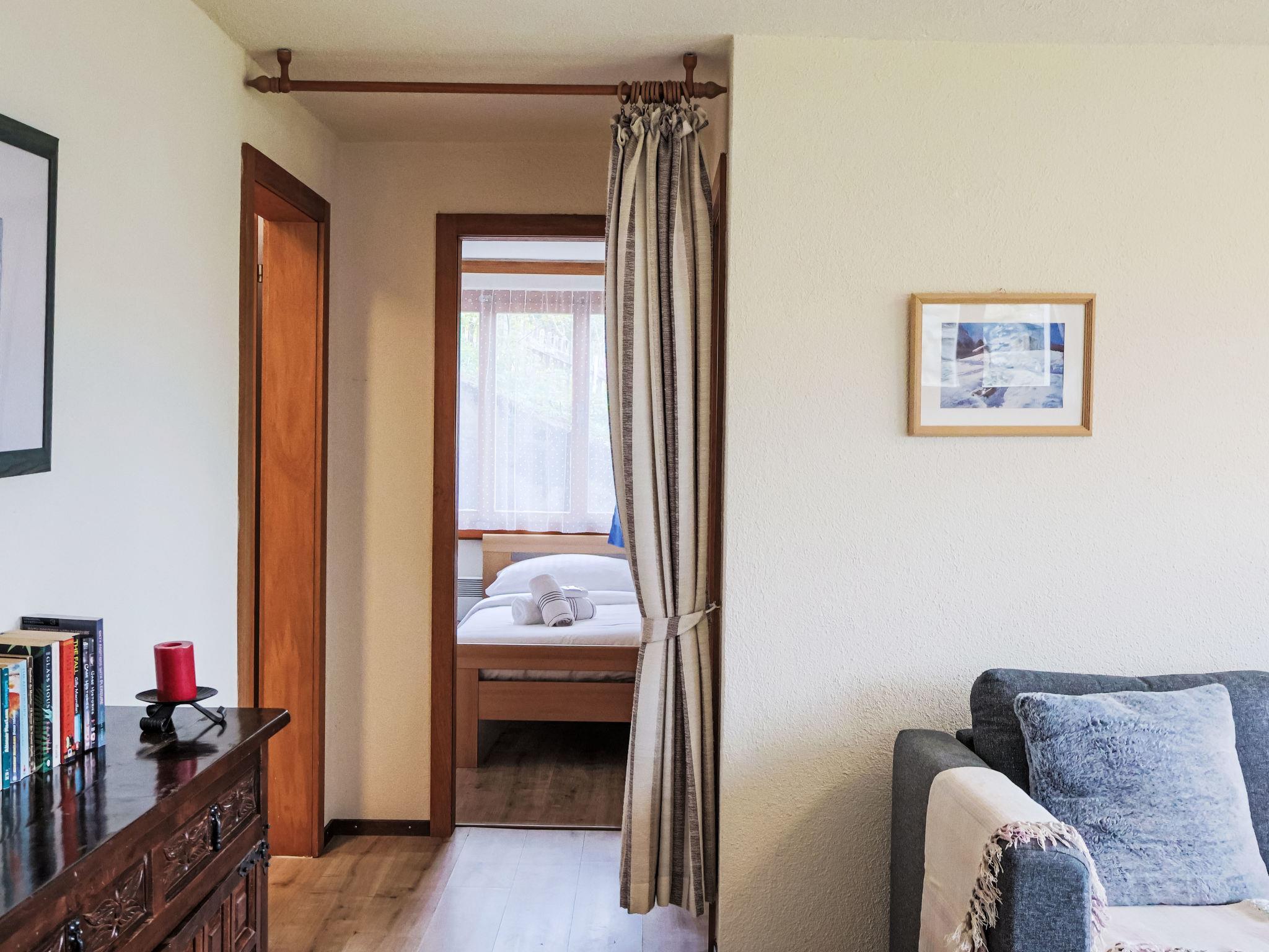 Kleines, gemütliches Zweifamilienhaus. Ruhige, sonnige, erhöhte Lage am Hang. Schmale Zufahrt bis zum Grundstück. Steiler Fussweg bis zum Haus. Parkplatz in 50 m. Lebensmittelgeschäft 1.2 km, Supermarkt 12 km, Restaurant 1 km, Bäckerei 1 km, Bushaltestelle "Lood" 100 m. Golfplatz (18 Loch) 12 km, Wanderwege ab Haus 10 m, Gondelbahn 1.5 km, Kinderspielplatz 1.2 km. Bitte beachten: Be- und Entladen am Ferienhaus möglich.