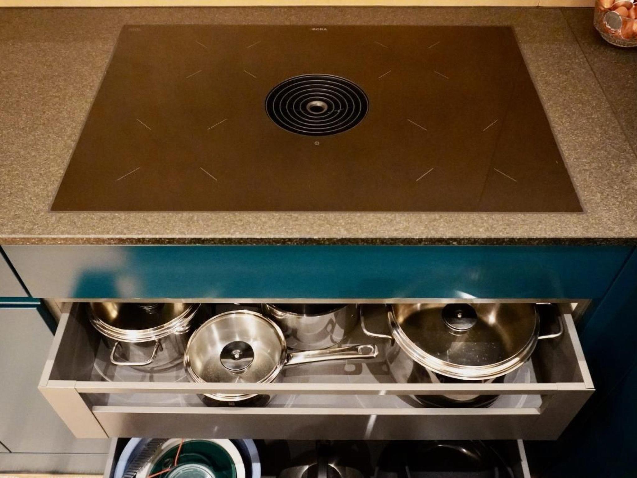Sonstige Kücheneinrichtung (Küche1): Bora Kochherd, V-Zug Kombisteamer-Ofen, diverse Pfannen und Teller, Kohlensäurewasser-Spender, diverse weitere Ausstattung