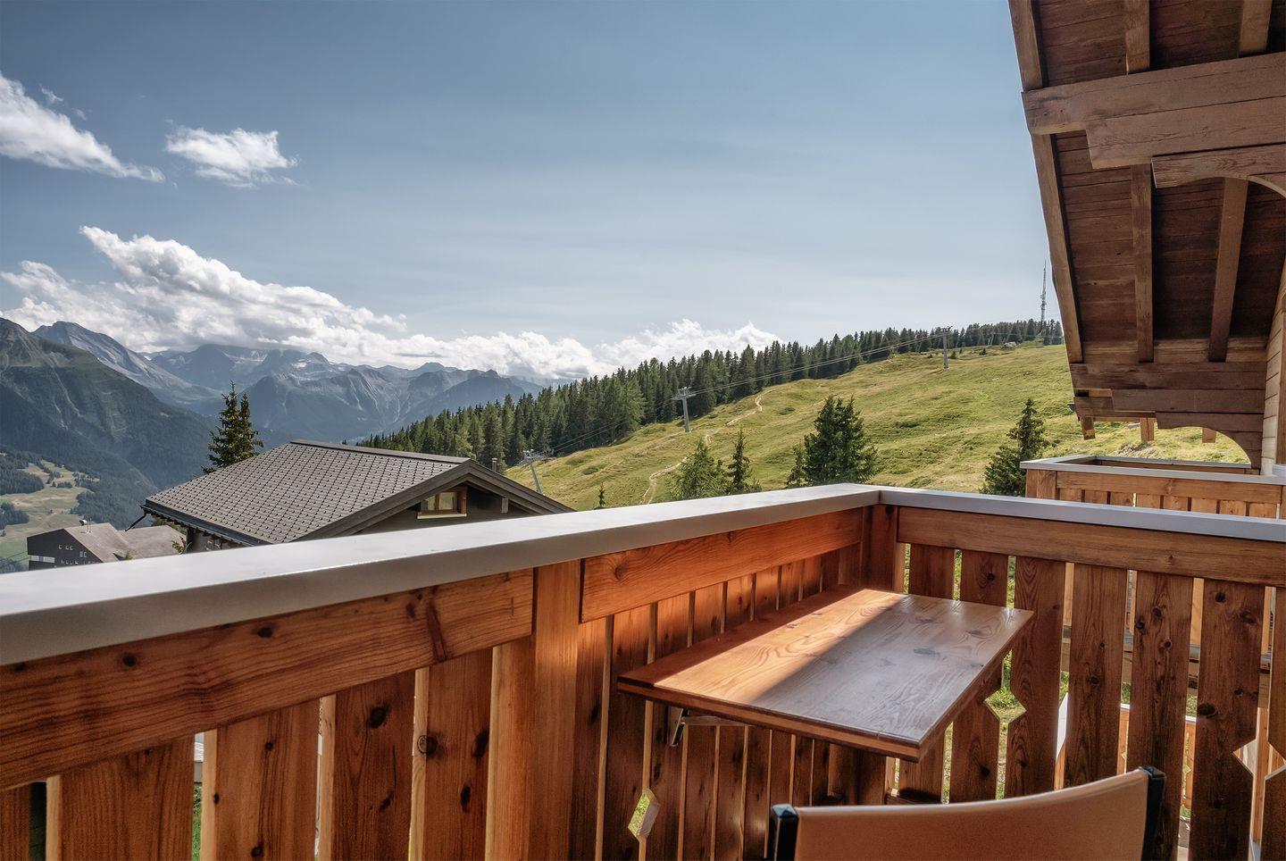 Unser Chalet Alouette ist an bester Lage gelegen, direkt beim Trainerlift, mit Aussicht auf die schöne Walliser Bergwelt.