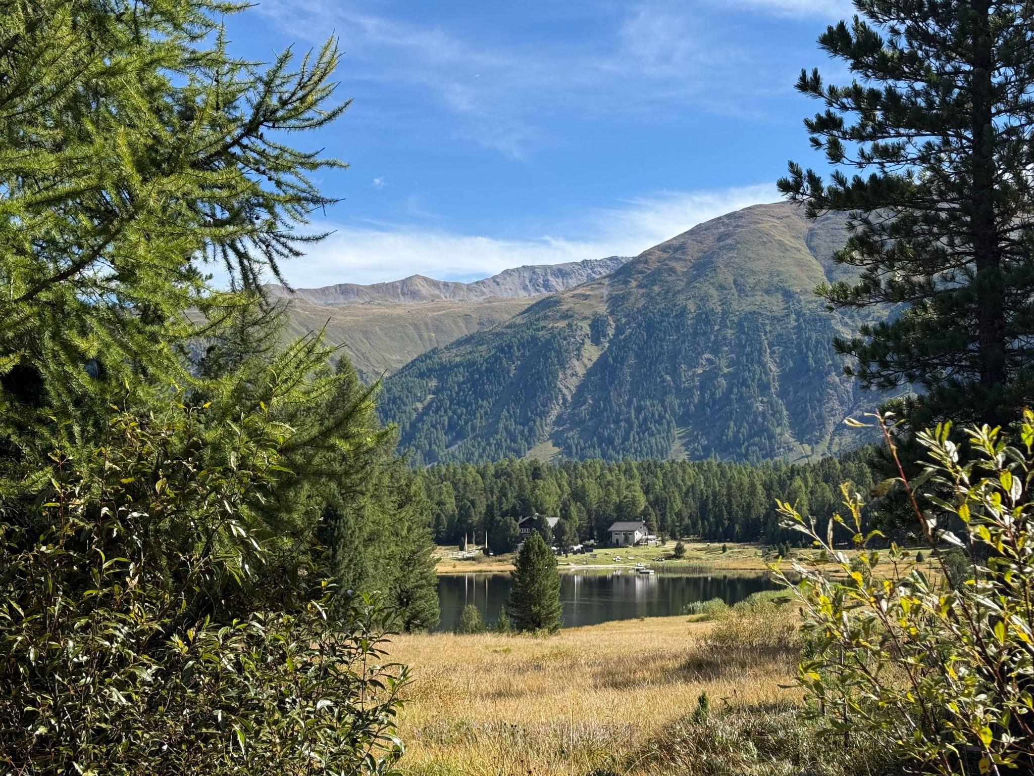 Der Außenbereich unseres Studios mag zwar keinen Balkon bieten, doch die Umgebung macht dies mehr als wett. Gäste unseres Studios profitieren von einem reservierten Parkplatz und haben die Annehmlichkeiten der Umgebung wie Bahnhof, Einkaufsmöglichkeiten, Bushaltestelle und Loipen unmittelbar in der Nähe. Die Lage kombiniert bequemen Zugang zu lokalen Diensten mit der friedvollen Atmosphäre von Engadin.