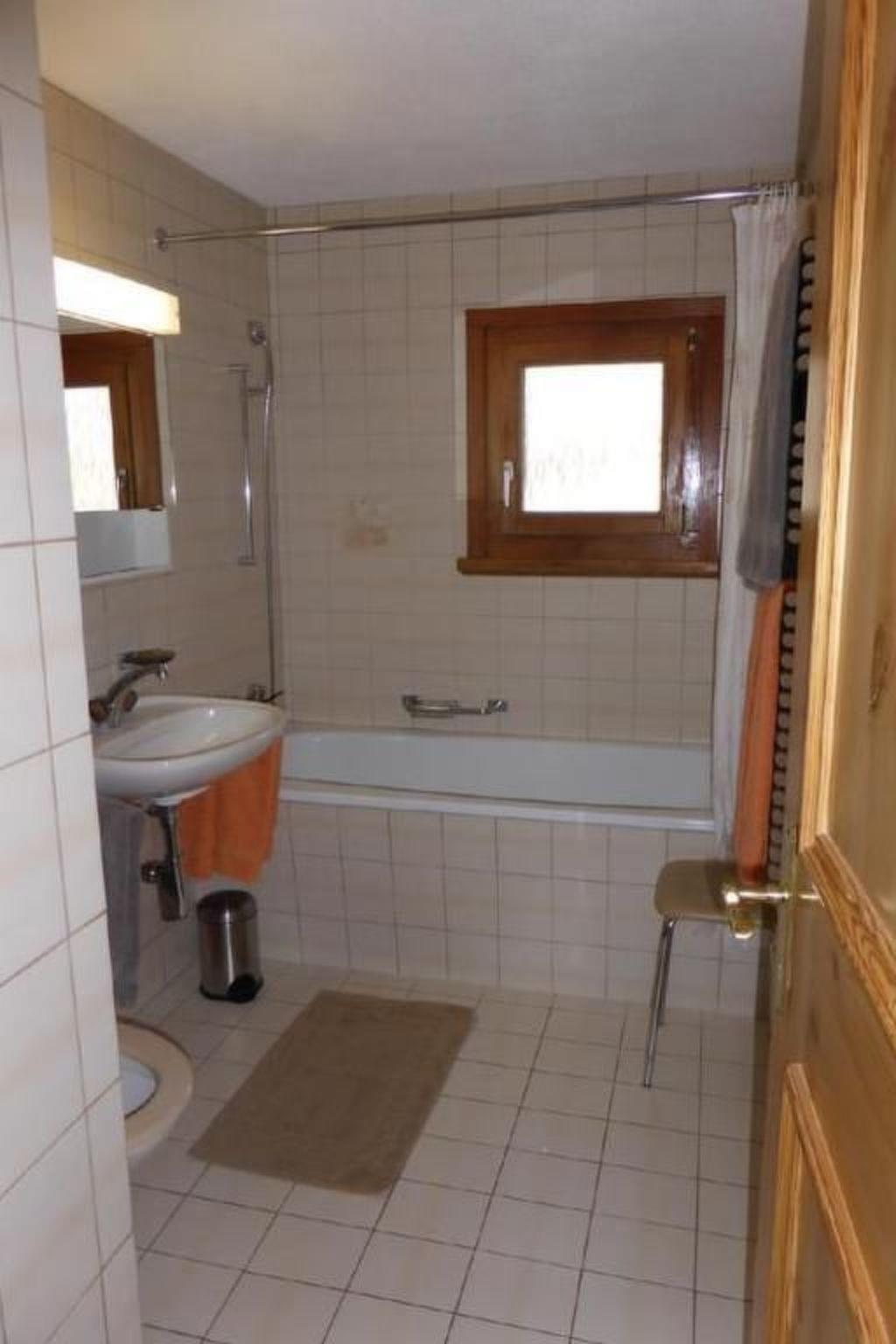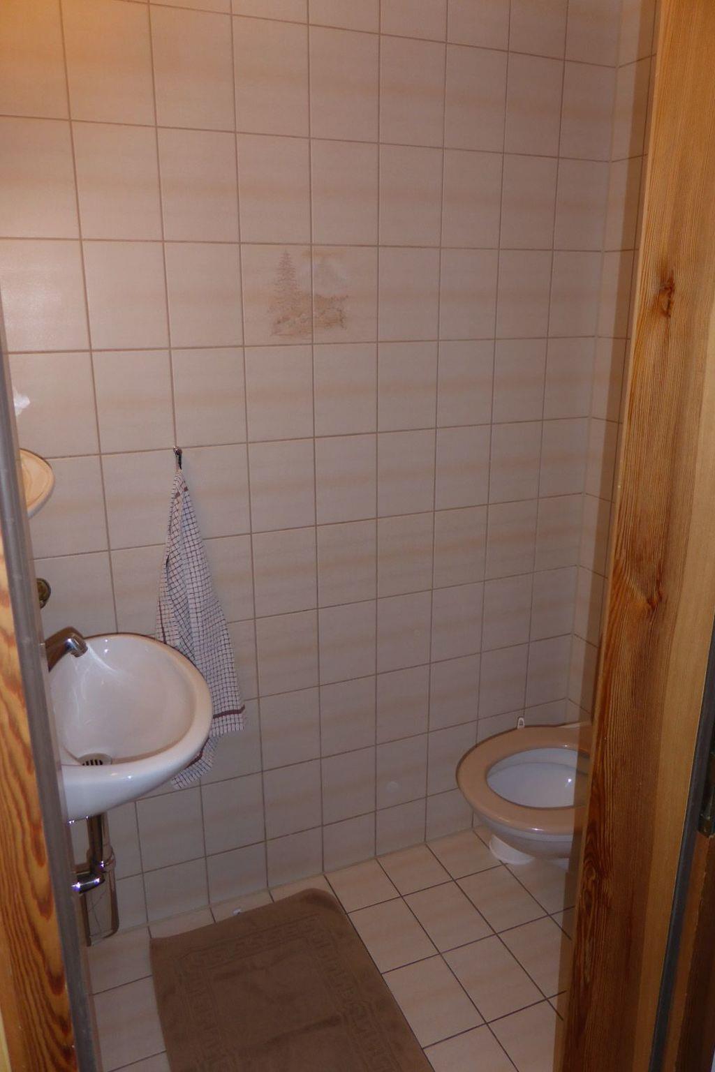 Badewanne mit Duschvorrichtung, WC und Waschbecken, Handtuchwärmer, separates Gäste- WC, Schlafzimmer mit Doppelbett, 2. Schlafzimmer mit 2 Einzelbetten. Kinderbett vorhanden.