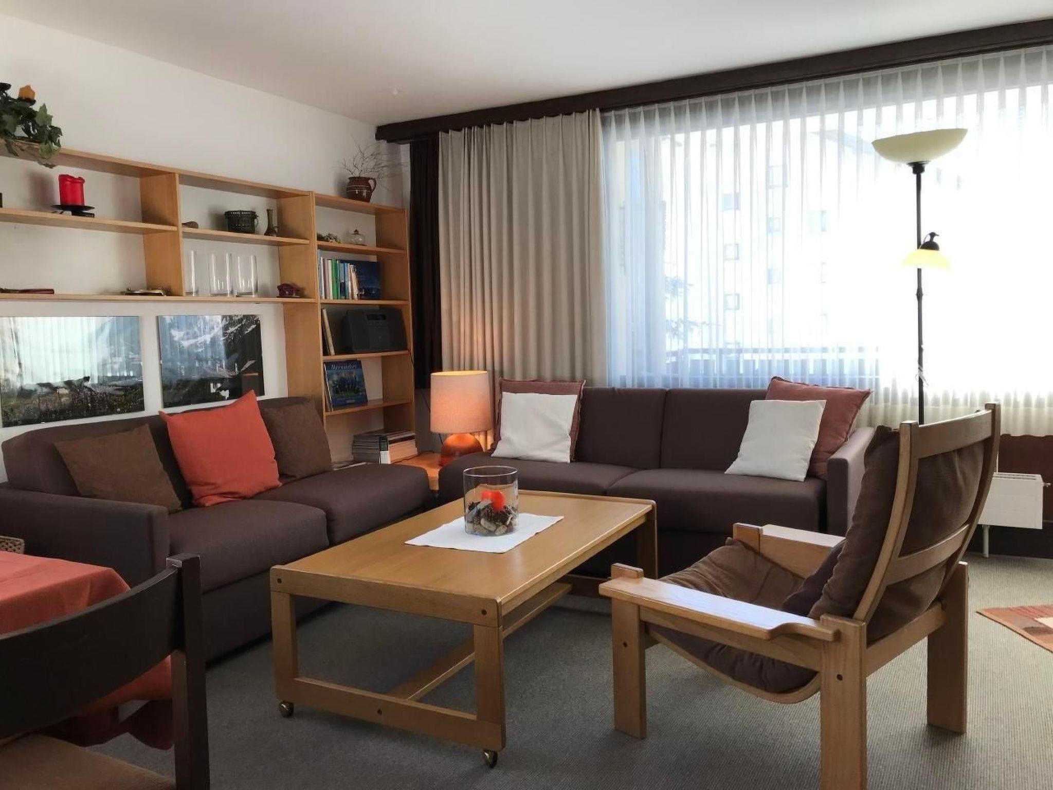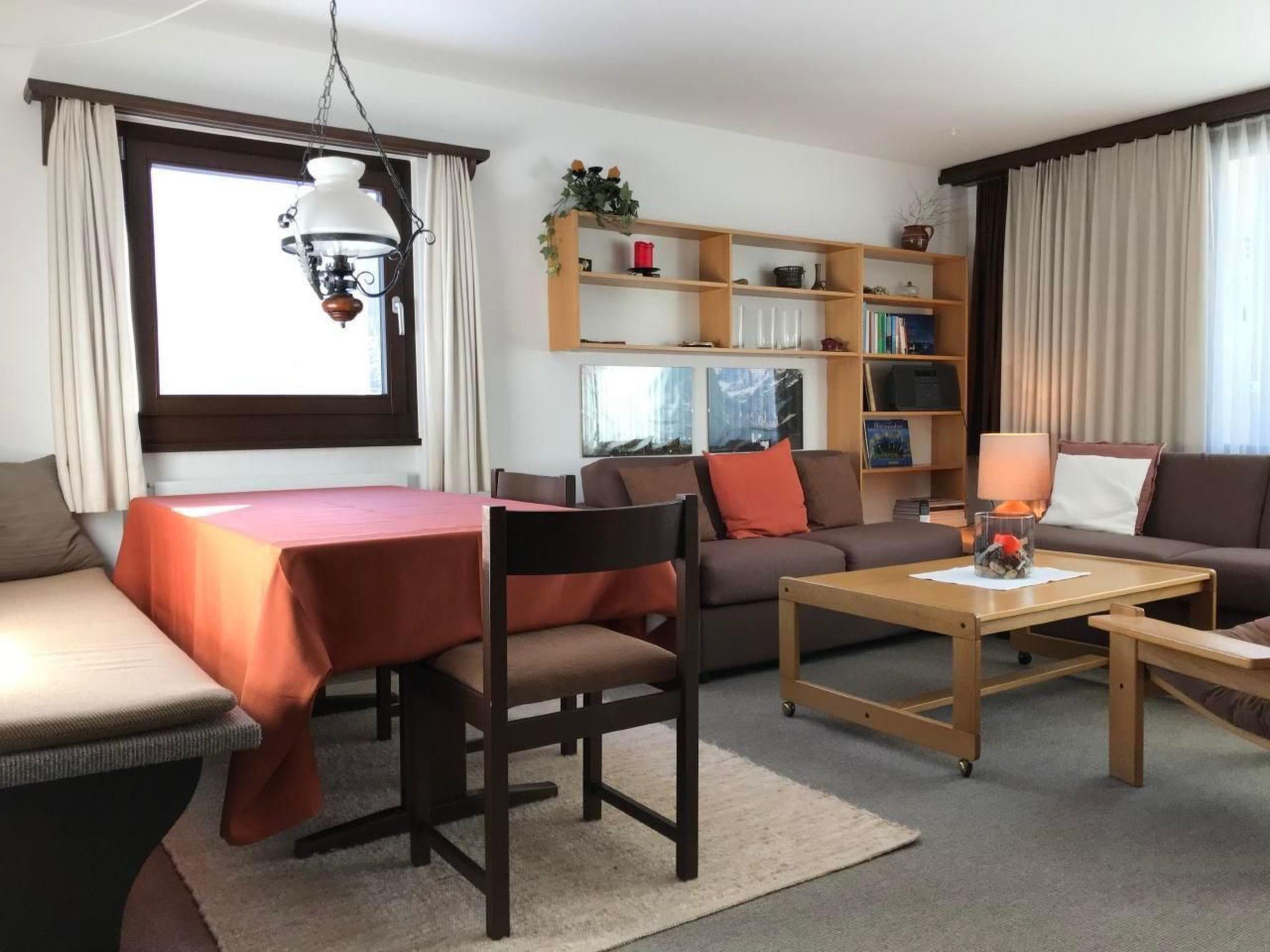 Innen bietet die Wohnung alles, was Sie für einen sorgenfreien Aufenthalt benötigen. Das Herzstück bildet das helle Wohn- / Esszimmer, das direkt auf den Balkon führt, von wo aus Sie die beeindruckende Bergkulisse genießen können. Ein Schlafzimmer mit Doppelbett und ein weiteres mit zwei Einzelbetten versprechen ruhige Nächte. Die gut ausgestattete Küche lädt zu gemeinsamen Kochabenden ein, während das Badezimmer mit Badewanne für entspannte Momente sorgt. Zusätzlicher Komfort wird durch Annehmlichkeiten wie gratis WLAN, eine Gemeinschaftswaschmaschine sowie einen Skiraum und Wachsraum geboten.