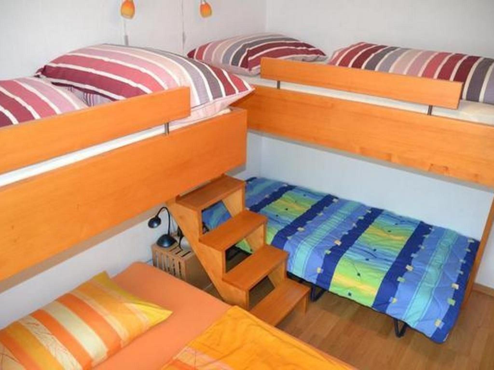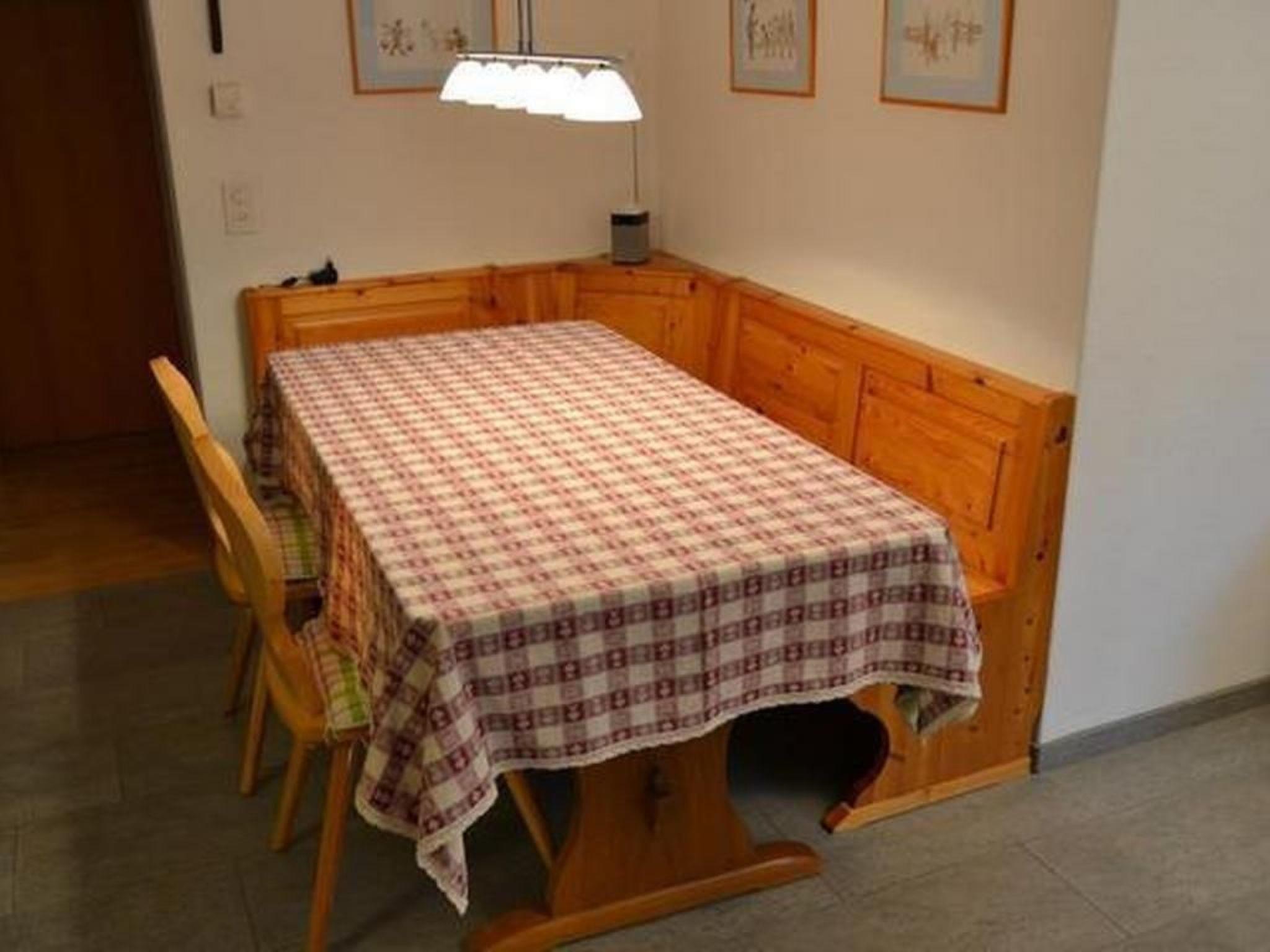 Im Inneren der Wohnung erwartet Sie ein moderner Wohnkomfort. Die Küche bietet mit Glaskeramikherd, Backofen, Kühlschrank und Abwaschmaschine alles, was das Herz eines Hobbykochs begehrt. Das Wohnzimmer ist mit einem gemütlichen Cheminée, einer Polstergruppe sowie mit Fernseher und Radio mit Satellitenempfang ausgestattet. Eine Essecke mit Eckbank bietet viel Platz für gesellige Mahlzeiten und fasst bis zu 12 Personen. Zwei Schlafzimmer, eines mit Doppelbett und Einbauschrank, das andere mit einem 1,60 m breiten Bett – auf Wunsch ergänzbar mit Hochbetten oder einem Kinderbett –, versprechen erholsame Nächte. Ein komplett neu gestaltetes Badezimmer mit Dusche, zwei Lavabos und WC vervollständigt das Angebot.