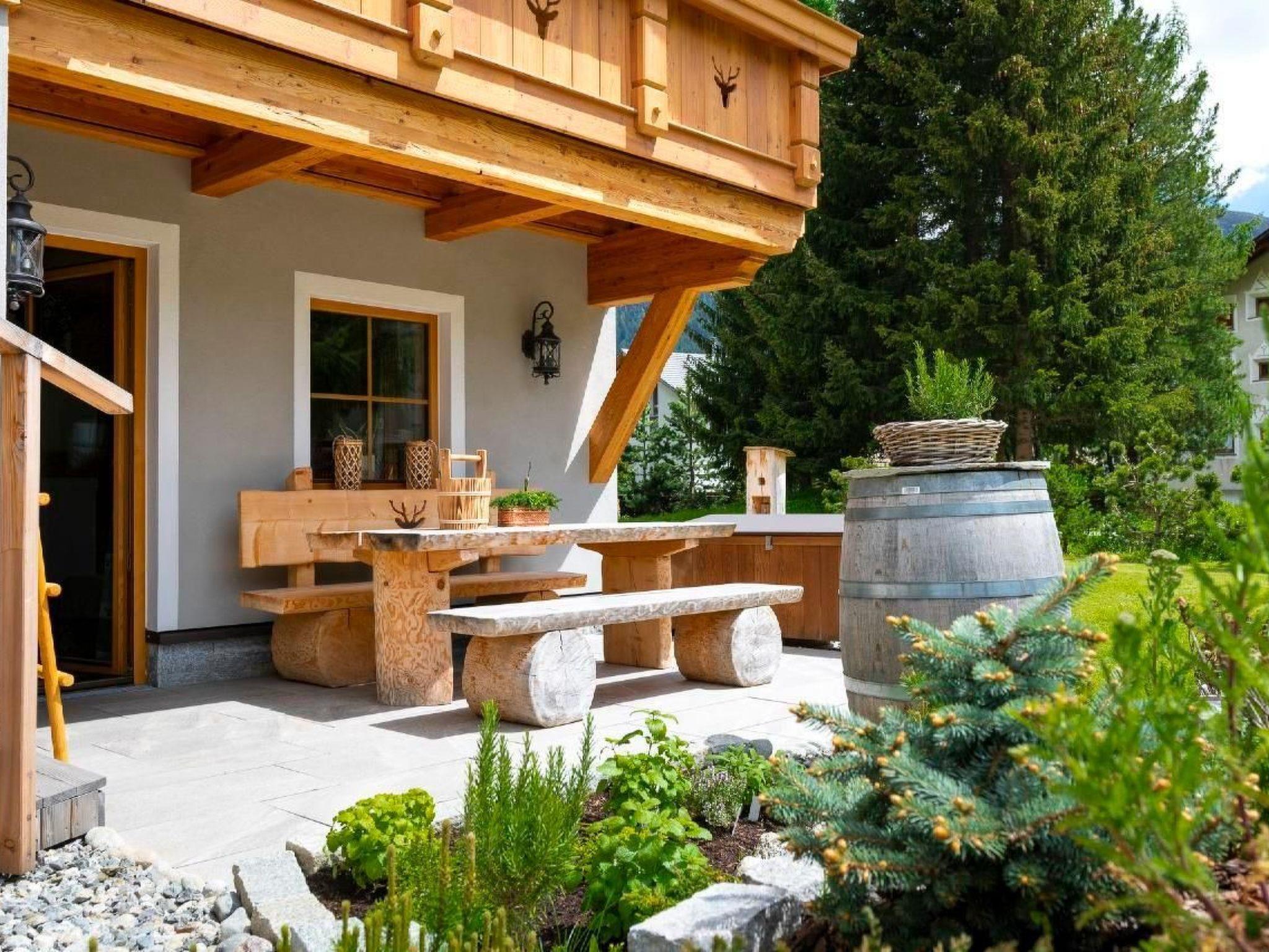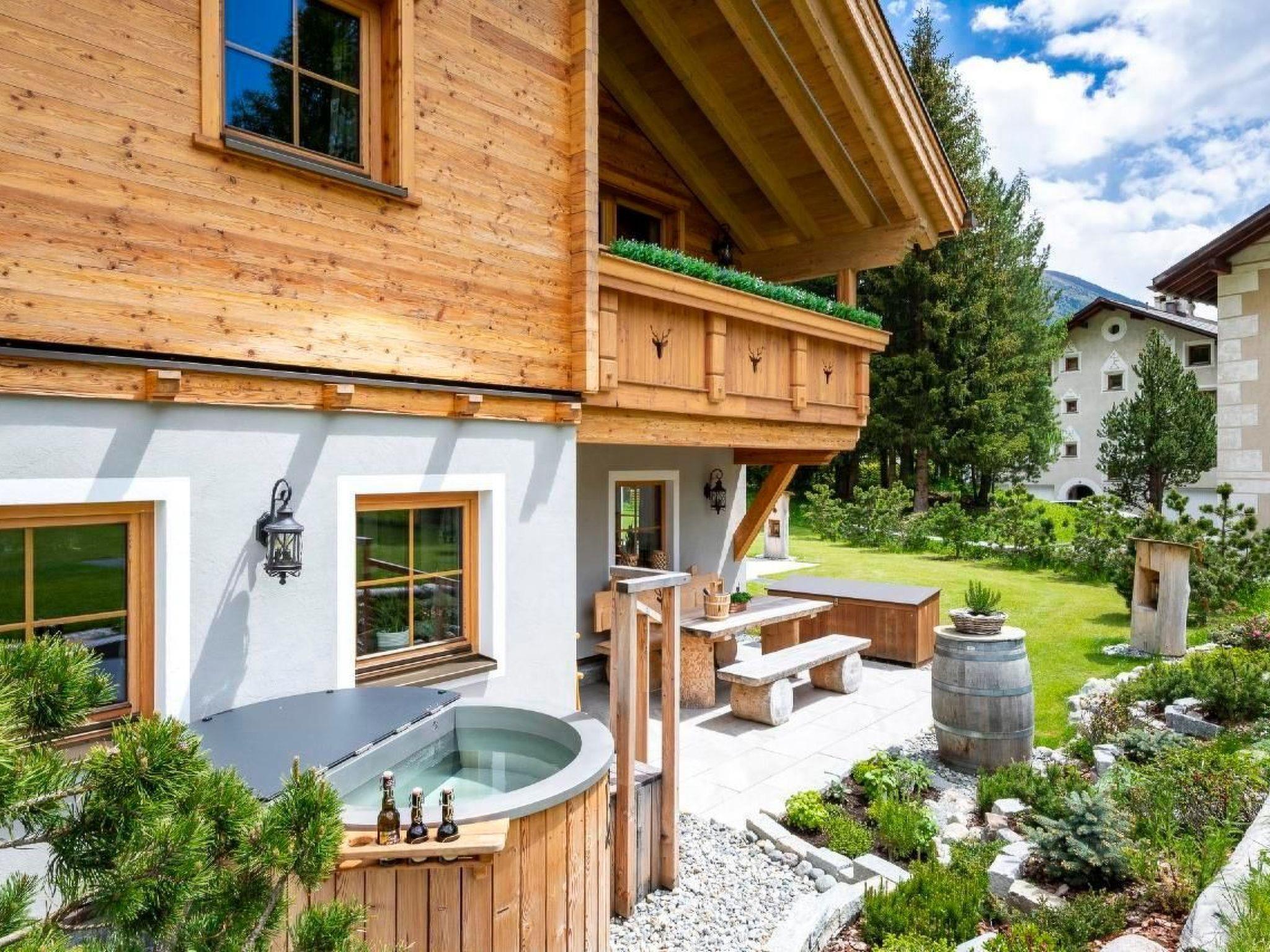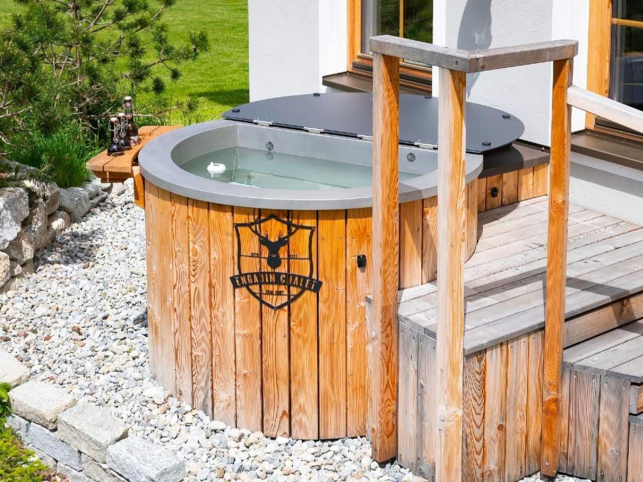 Der Außenbereich des Chalets ist eine Oase der Entspannung. Direkt an den sonnendurchfluteten Wohnbereich schließt sich eine private Terrasse an, die mit unbeschreiblichen Blicken auf die umliegende Bergwelt und ins Val Bever verzaubert. Der Edel-Stahl-Hot Pot verstärkt das Gefühl von Luxus und Privatheit. Die direkte Lage am Dorfrand bietet im Winter einen direkten Loipenzugang und macht das Chalet zum idealen Ausgangspunkt für Naturerlebnisse.