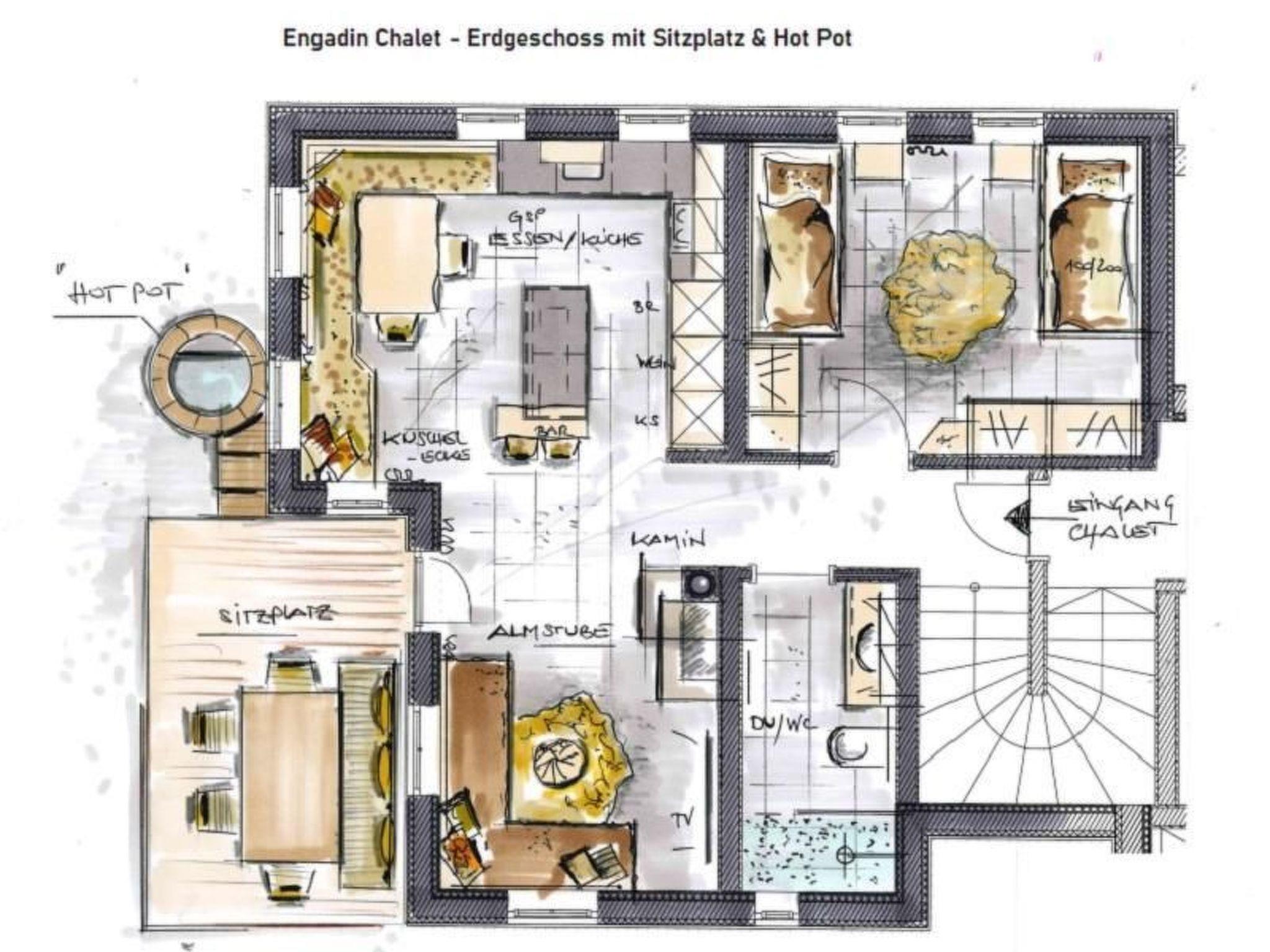 Verbringen Sie unvergessliche Tage im neuen Engadin Chalet, Ihrem privaten Luxus-Berg-Refugium im Herzen des Engadins. Auf 1.717 m Höhe, umgeben von der atemberaubenden Kulisse des Berninamassivs und nah am berühmten St. Moritz, bietet unser Chalet eine exklusive Kombination aus alpinem Luxus, warmherziger Tradition und viel Privatsphäre. Genießen Sie den Komfort unseres privaten Spa-Bereichs mit Sauna, Whirlpool und einem beheizten Außen-Hot Pot, die zu jeder Zeit für Entspannung sorgen.