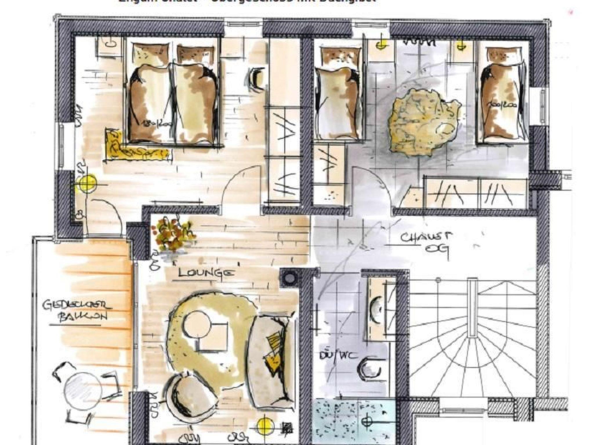 Innen beeindruckt das Chalet mit seiner liebevollen Einrichtung im typischen Engadiner Stil, geprägt durch Wärme und Flair. Hochwertige Naturmaterialien, Massivholzmöbel sowie Holz- und Steinböden schaffen eine behagliche Atmosphäre. Das Erdgeschoss präsentiert sich mit einer voll ausgestatteten, modernen Küche und einem großzügigen offenen Wohnbereich mit einem einladenden Sichtkamin, der für gemütliche Abende sorgt. Das Obergeschoss wartet mit zwei gemütlichen Schlafzimmern, einem sonnigen Balkon und einem großzügigen Bad auf.