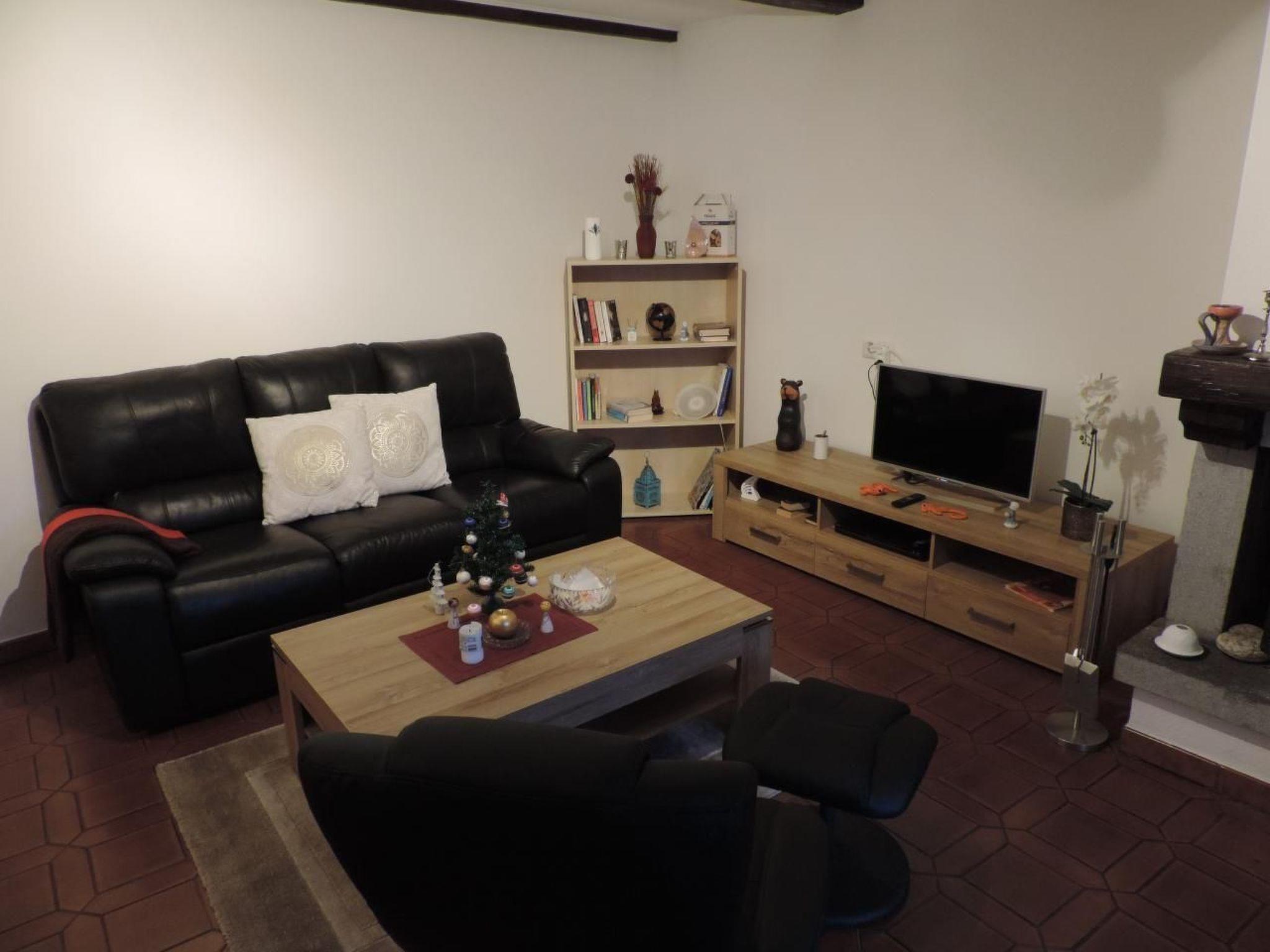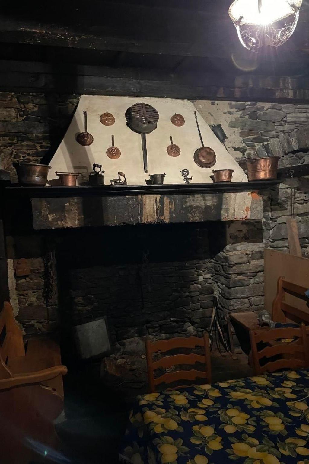 Im Inneren des Bauernhauses befindet sich ein gemütlicher Wohnbereich, der mit einem Relax-Sessel, einem Ledersofa mit aufklappbaren Sitzen, einem 32-Zoll-Philips-Fernseher und einem charmanten Steinkamin ausgestattet ist, der zu gemütlichen Abenden vor dem Kamin einlädt. Das Esszimmer ist mit einem Tisch und vier Stühlen ausgestattet und bietet einen idealen Rahmen für Frühstück, Mittagessen und Abendessen mit Freunden. Das Schlafzimmer ist mit großen Schränken, Nachttischen mit Schubladen und einem Fernseher mit Bluetooth-Anschluss ausgestattet. Die Küche ist mit modernen Geräten wie einem Wassergasbereiter, einem Kamingrill und verschiedenen Fondue- und Raclette-Utensilien ausgestattet, um ein komplettes Esserlebnis zu gewährleisten.