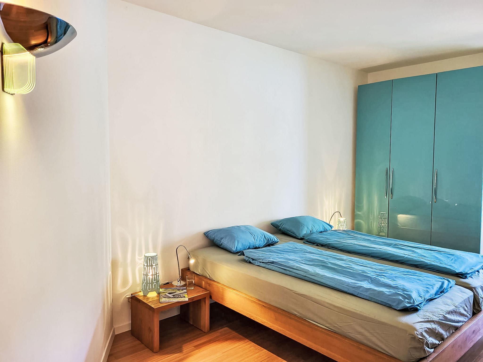 "Frontlake Panorama Apt. 408", 3-Zimmer-Wohnung 78 m2 im 4. Stock, Südwestlage. Objekt geeignet für 2 Erwachsene + 3 Kinder. Geräumig und hell, modern und geschmackvoll eingerichtet: offenes Wohn-/Esszimmer mit Panoramafenster mit Esstisch, Kabel-TV, Flachbildschirm, Radio, CD, Stereoanlage, Klimaanlage und elektrischem Rollladen. Ausgang zum Balkon. 1 Doppelzimmer mit 1 Doppelbett (2 x 90 cm, Länge 200 cm). Ausgang zum Balkon. 1 Zimmer mit 1 Bett (90 cm, Länge 190 cm), 1 x 2 Etagenbetten (90 cm, Länge 200 cm). Ausgang zum Balkon. Offene Küche (Backofen, Geschirrspüler, 2 Glaskeramikplatten, Toaster, Wasserkocher, Mikrowelle, elektrische Kaffeemaschine, Kapseln für die Kaffeemaschine (Dolce Gusto) extra, Racletteofen, Fondue Set (Käse)). Bad, sep. WC. Heizung. Grosser Balkon 12 m2, Westlage und Südlage. Balkonmöbel, Liegestühle (1). Herrliche Panoramasicht auf den See, die Berge, das Schwimmbad, die Landschaft und die Stadt. Zur Verfügung: Waschmaschine (extra). Kinderhochstuhl, Babybett bis 2 Jahre (extra), Haartrockner. Internet (Wireless LAN, gratis). Parkplatz beim Haus. Bitte beachten: Nichtraucher-Unterkunft. Rauchmelder, Feuerlöscher. NL-00005980