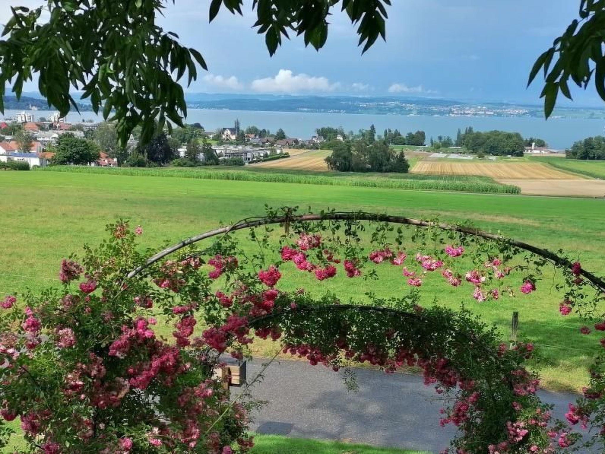 Willkommen. Die Ferienwohnung befindet sich in einem im Jahre 1881 erbauten Haus. Umgeben von einem alten Baumbestand steht das Haus auf der Anhöhe von Bottighofen mit freier Sicht auf den Bodensee und Konstanzer Hafen.