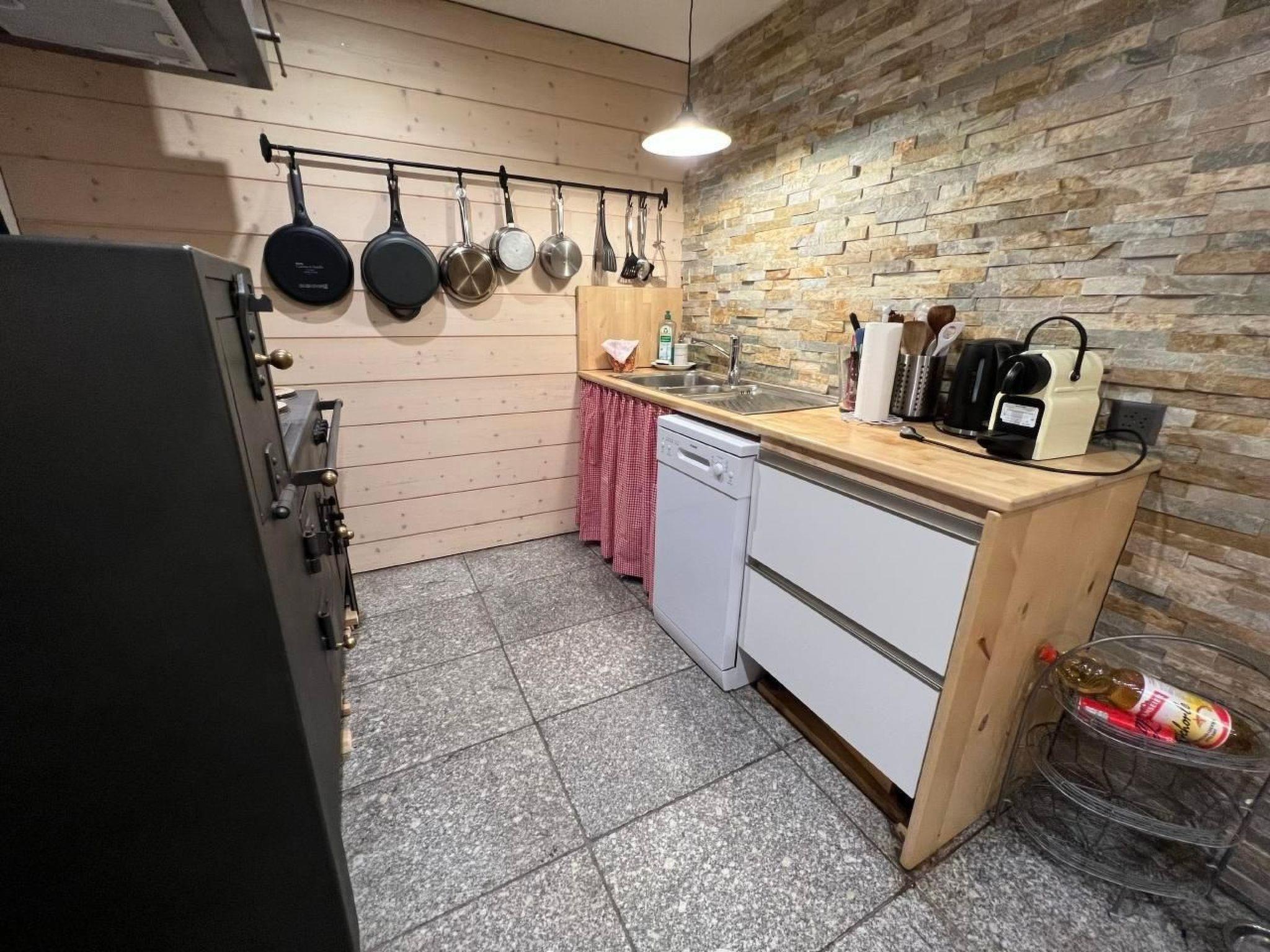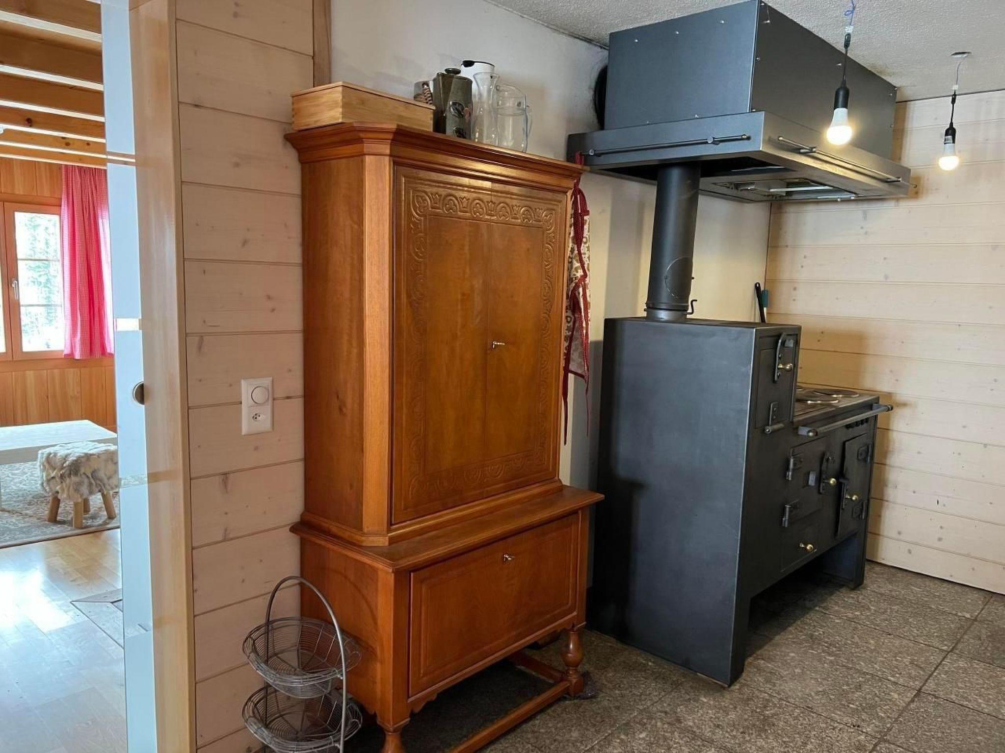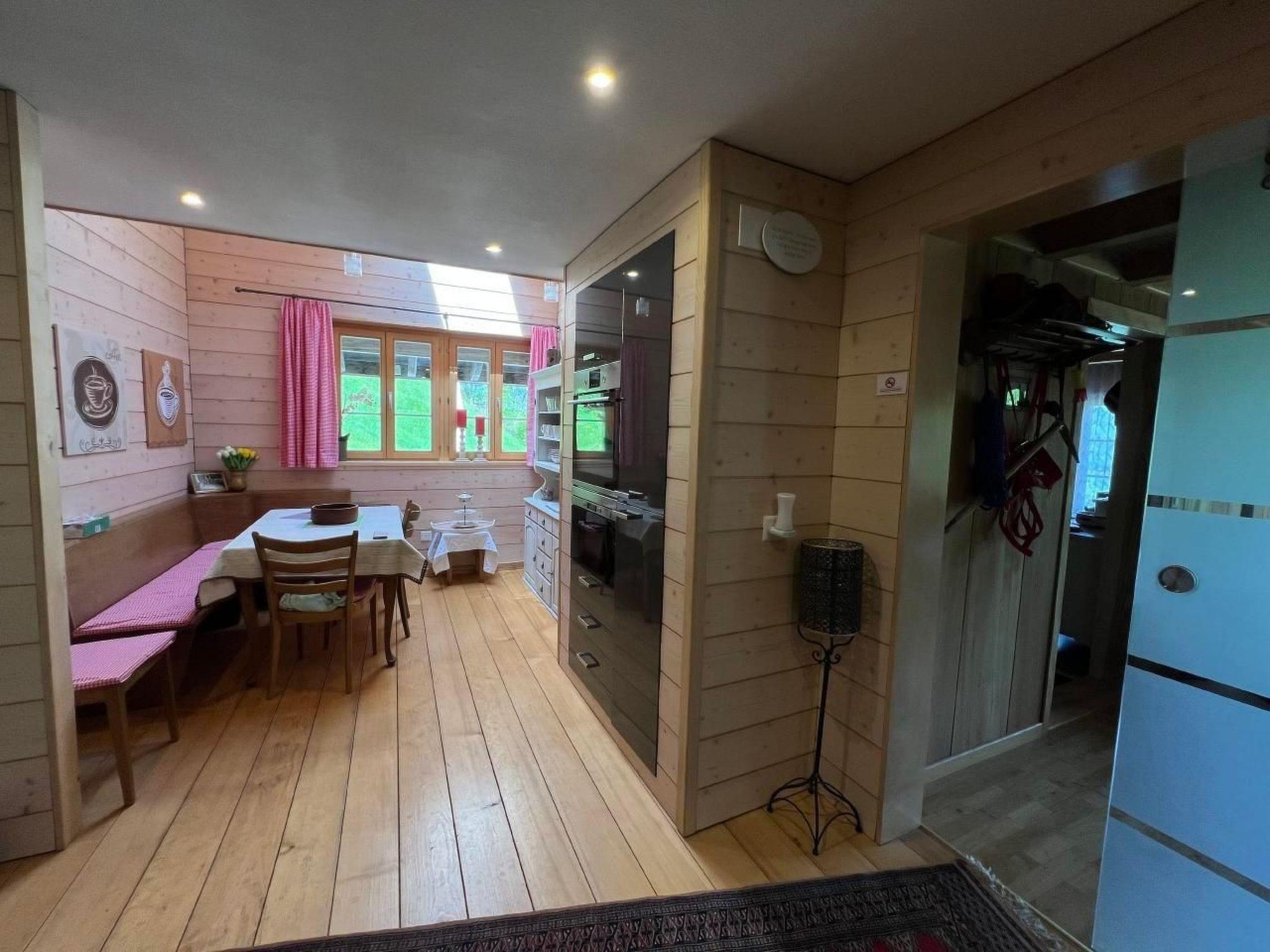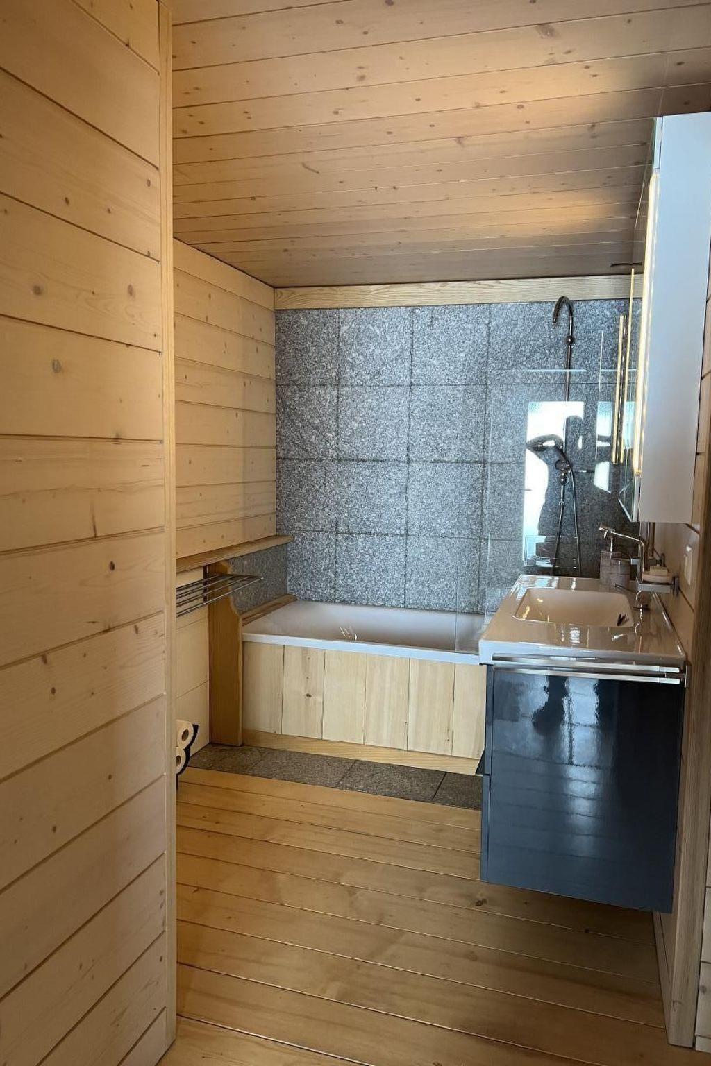 Das Innere der Wohnung ist eine perfekte Mischung aus Tradition und Moderne. Ein gemütlicher Schwedenofen in der Stube und ein nostalgischer Holzofen in der Küche spenden in den Wintermonaten Wärme und sorgen für ein heimeliges Ambiente. Für kulinarische Erlebnisse bietet die Küche neben dem Holzofen auch einen Elektroherd, einen modernen Backofen, eine Mikrowelle sowie eine Geschirrspülmaschine und eine Nespresso Kapselmaschine. Im Badezimmer lädt eine große Badewanne zur Entspannung ein, und das Ambiente erinnert dezent an eine Saunalandschaft.
