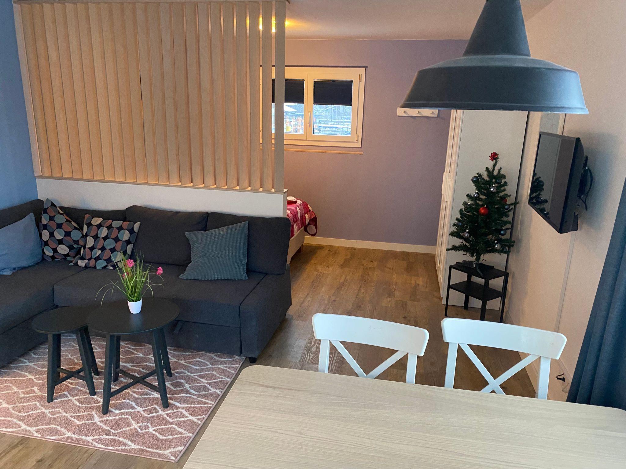Tauchen Sie in Komfort ein, beginnend mit unserem Studio, das einen herrlichen Schlafbereich mit einem komfortablen Boxspringbett für zwei Erwachsene bietet. Das Sofa lässt sich leicht in ein Schlafsofa umwandeln und bietet zusätzlichen Schlafplatz für zwei Kinder oder weitere Gäste. Eine voll ausgestattete Küche mit Kombi-Mikrowelle, Geschirrspüler und Kühlschrank, ein modernes Badezimmer, Fernseher und Sonos-Lautsprecher runden die Innenausstattung ab. Aussen haben Sie noch ein privater Balkon