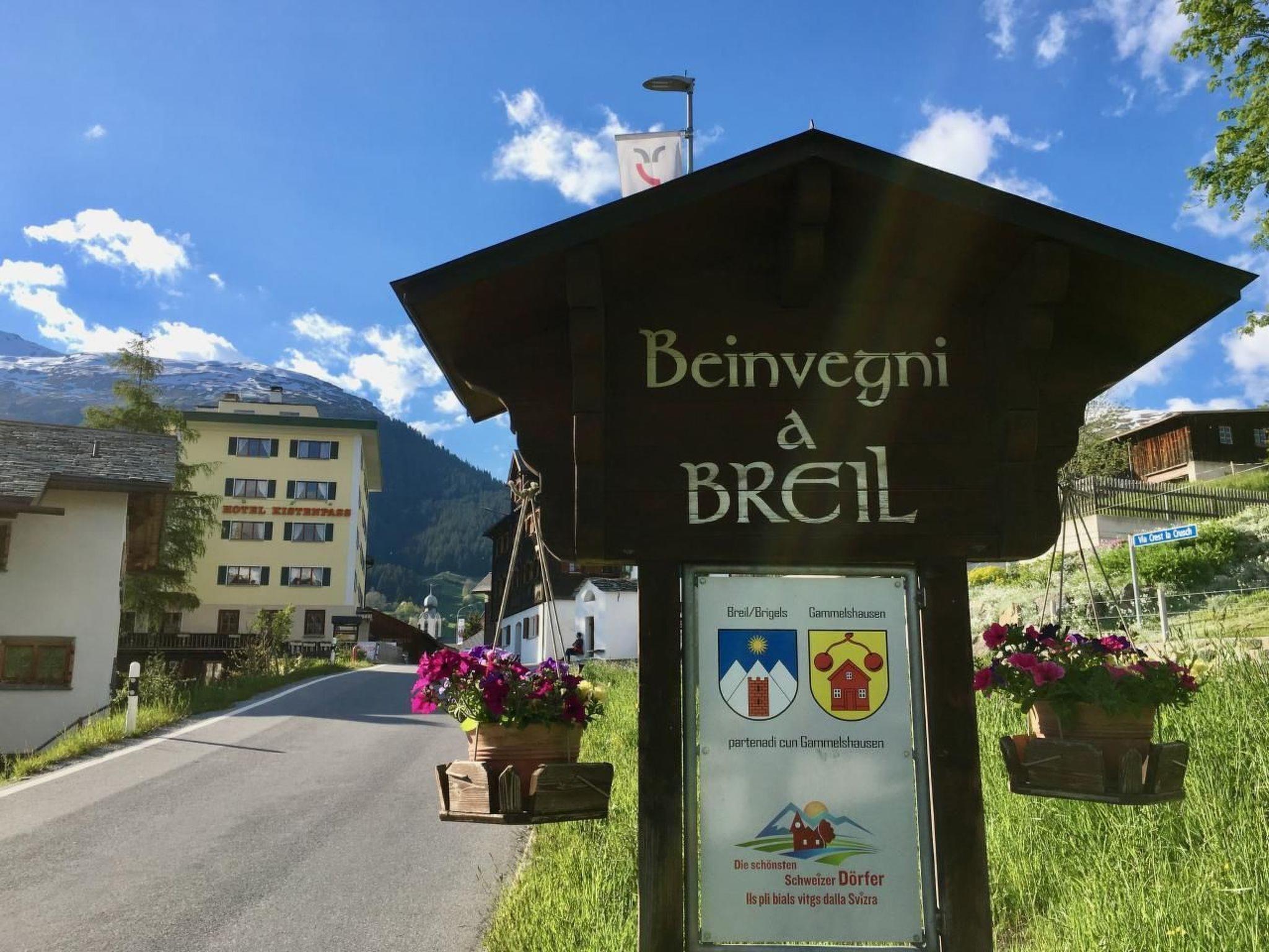 Ortsbeschreibung: Breil/Brigels liegt idyllisch auf einem weiten, sonnenverwöhnten Hochplateau am Südhang über dem Vorderrhein. Das familienfreundliche Dorf bietet im Sommer, so wie im Winter ein grosses Angebot an Aktivitäten in den Bündner Bergen. Die Ortschaften Brigels, Dardin, Danis-Tavanasa, Waltensburg und Andiast liegen nur wenige Minuten voneinander entfernt, eingebettet in ein imposantes Bergpanorama bestehend aus dem Hausberg Péz Tumpiv, den Brigelserhörner und dem Kistenstöckli.