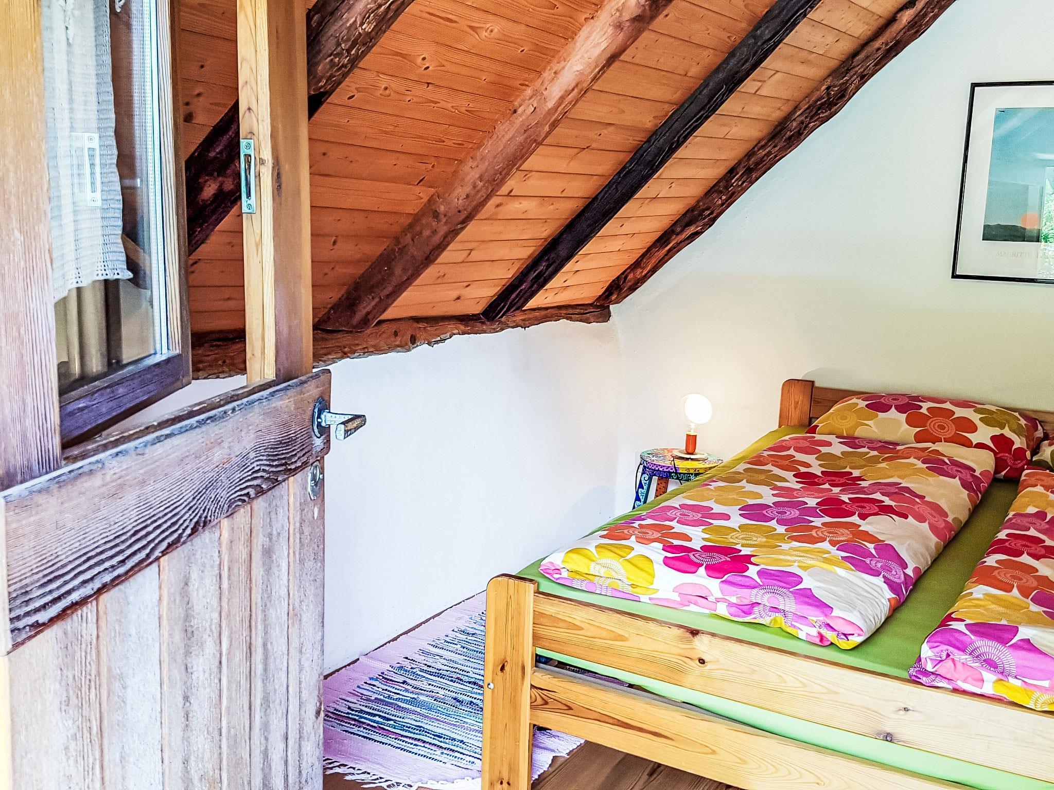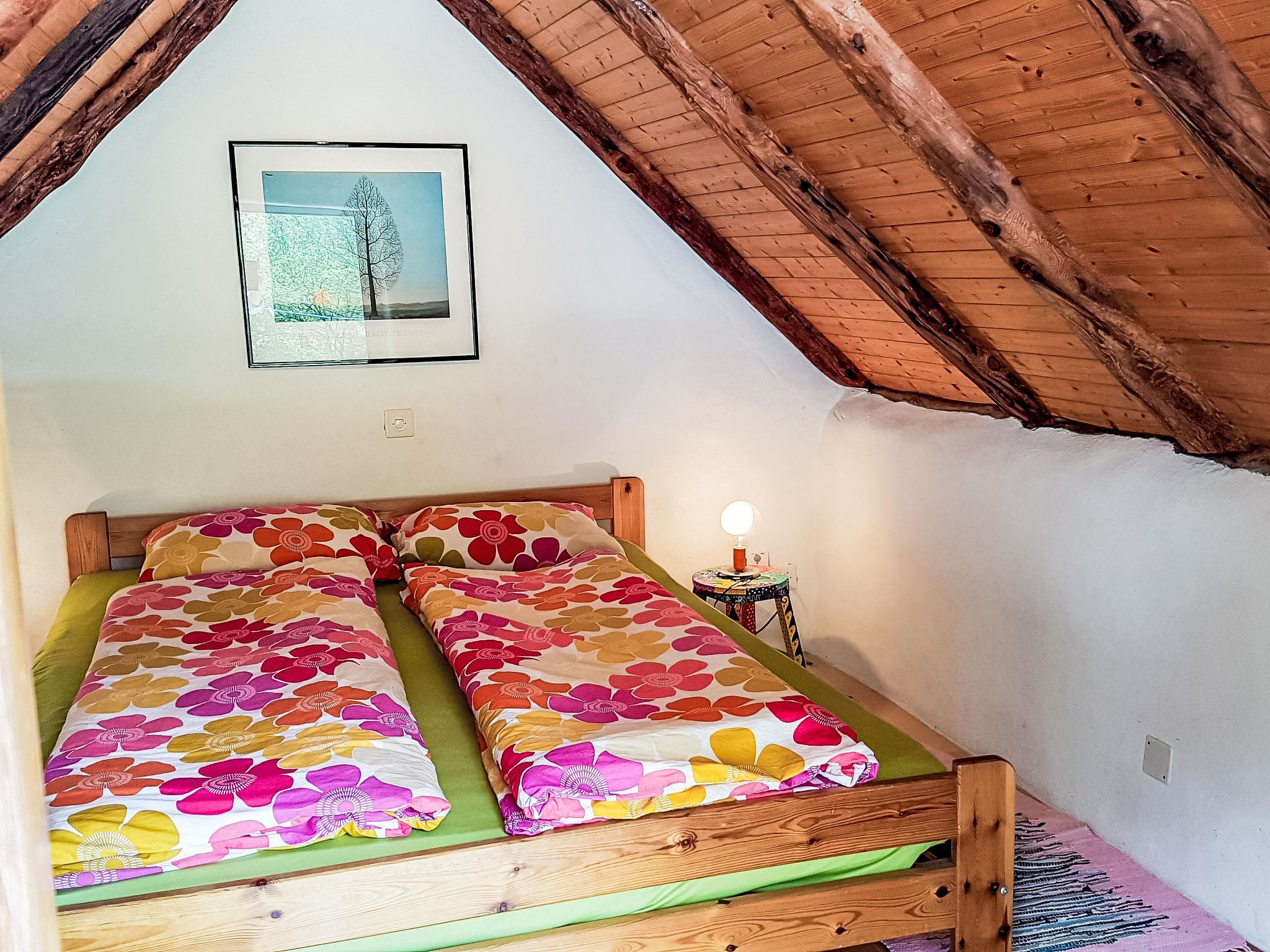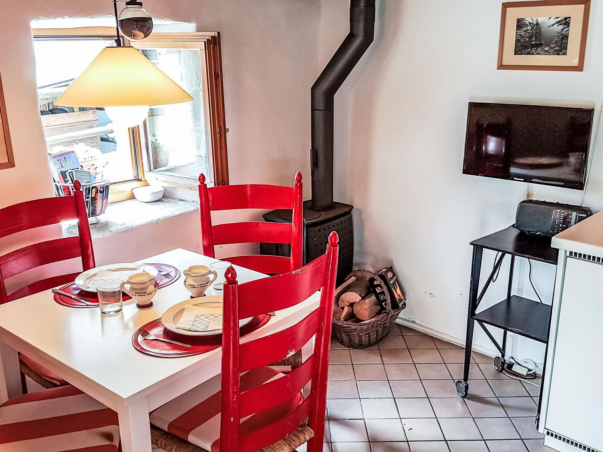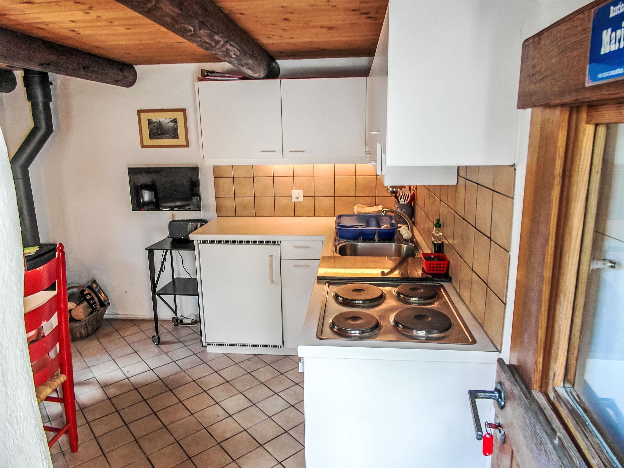 3-Zimmer-Haus 30 m2 auf 3 Stockwerken. Einfach und gemütlich eingerichtet: Deckenhöhe 90 - 210 cm, auf 3 Ebenen niedrige Türrahmen, Höhe 146 cm mit Kabel-TV, Flachbildschirm und Radio. Kleine Wohnküche (4 Kochplatten, Backofen) mit Esstisch. Ausgang zum Gartensitzplatz. E-Heizung. Obergeschoss: (Aussentreppe) Eingang. Dusche/WC. 2. Obergeschoss: (Aussentreppe) 1 Doppelzimmer mit 1 franz. Bett (1 x 160 cm, Länge 200 cm). Terrassenmöbel, Liegestühle (2), Sitzplatz. Sicht auf die Berge und die Ortschaft. Zur Verfügung: Internet (WLAN, gratis). Parkplatz Nr. 6 in 100 m. Bitte beachten: Nichtraucher-Haus. Maximal 1 Haustier/Hund erlaubt. Achtung: niedrige Türrahmen und Zimmerdecken (ca. 1.85 m). Boiler. NL-00004853