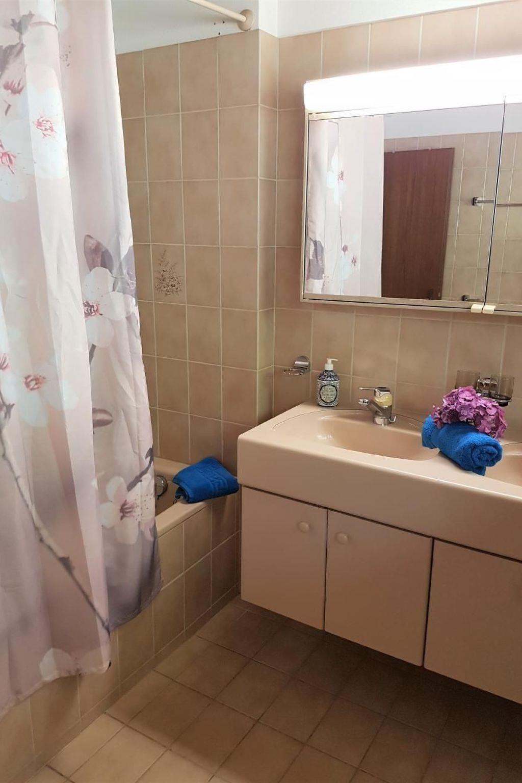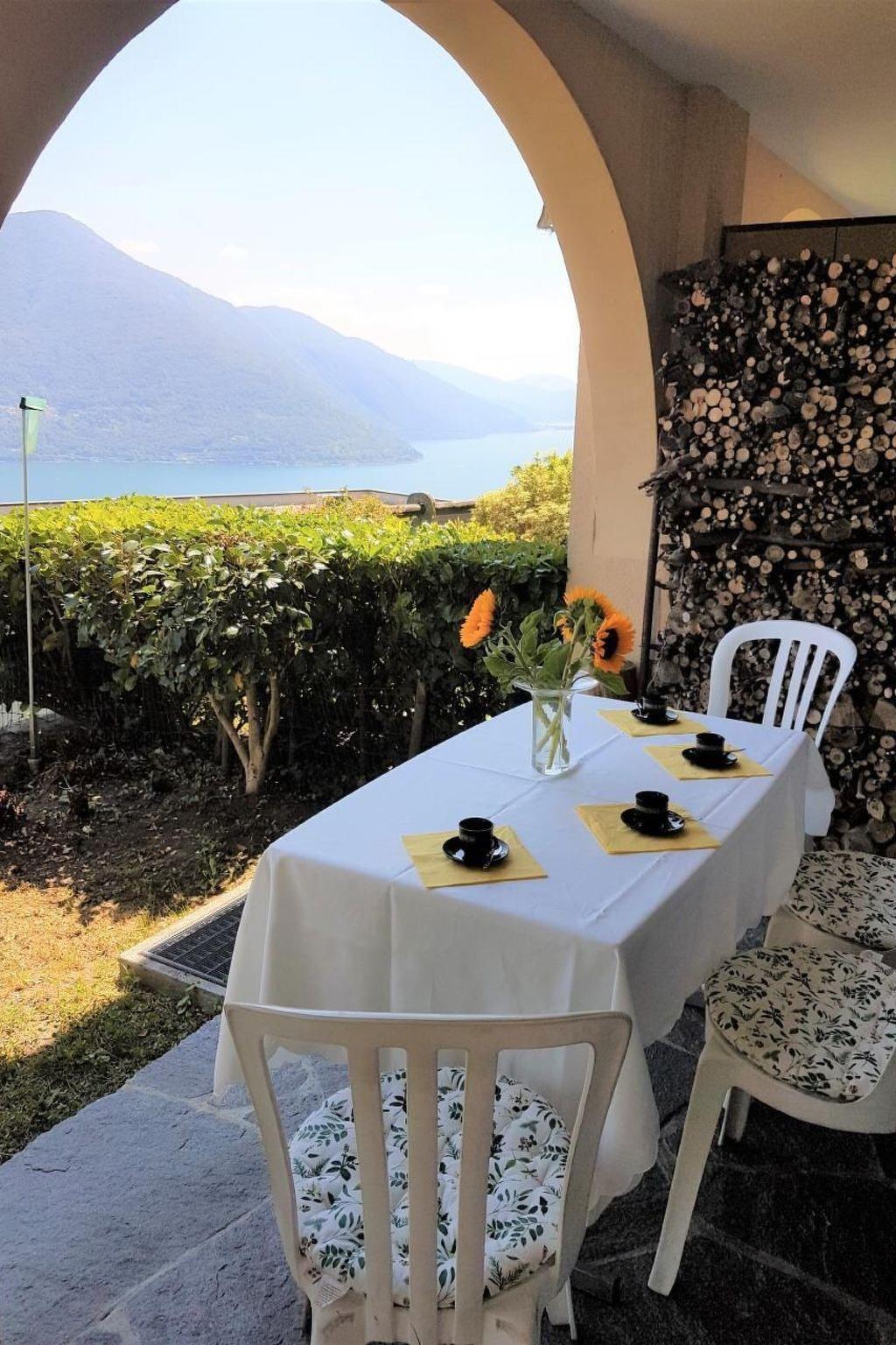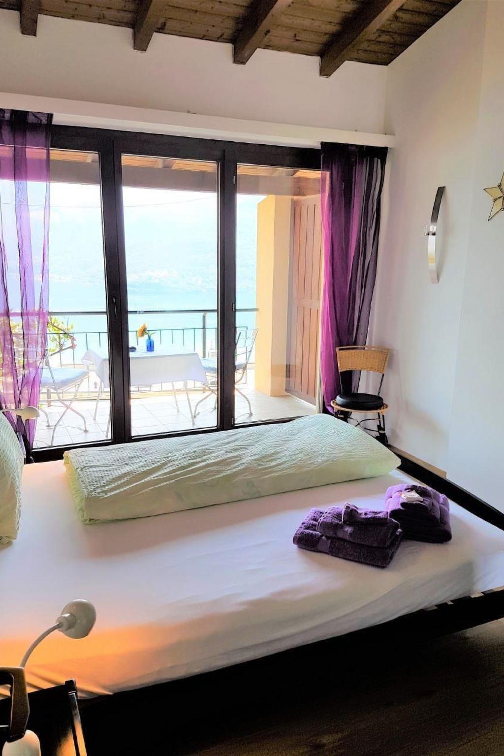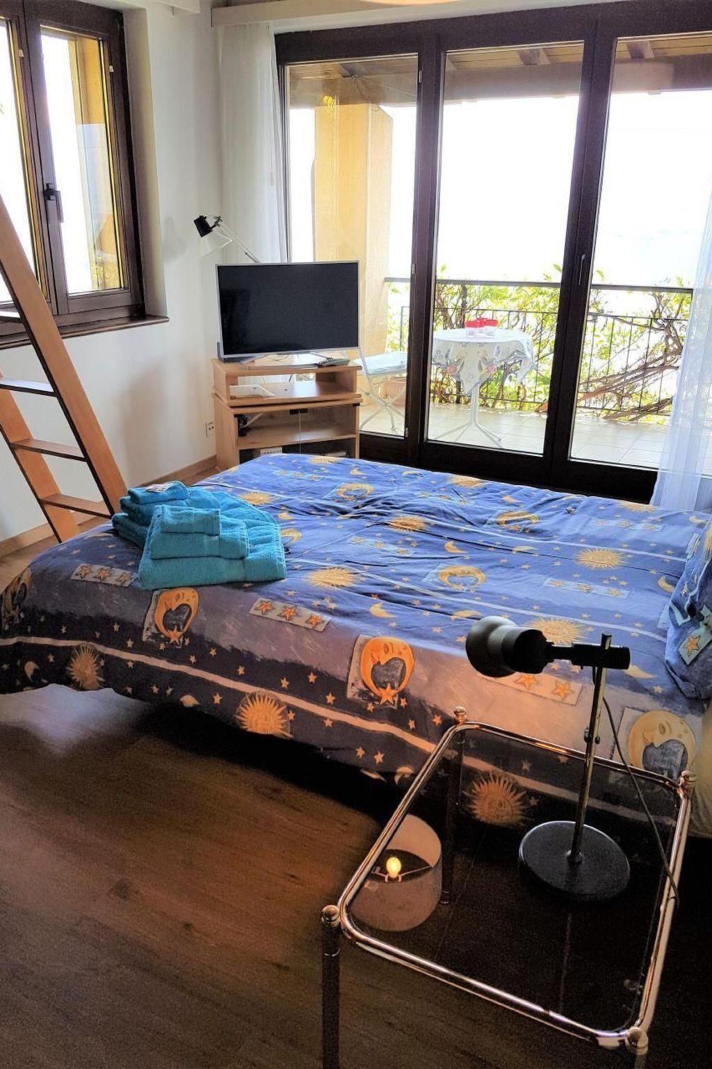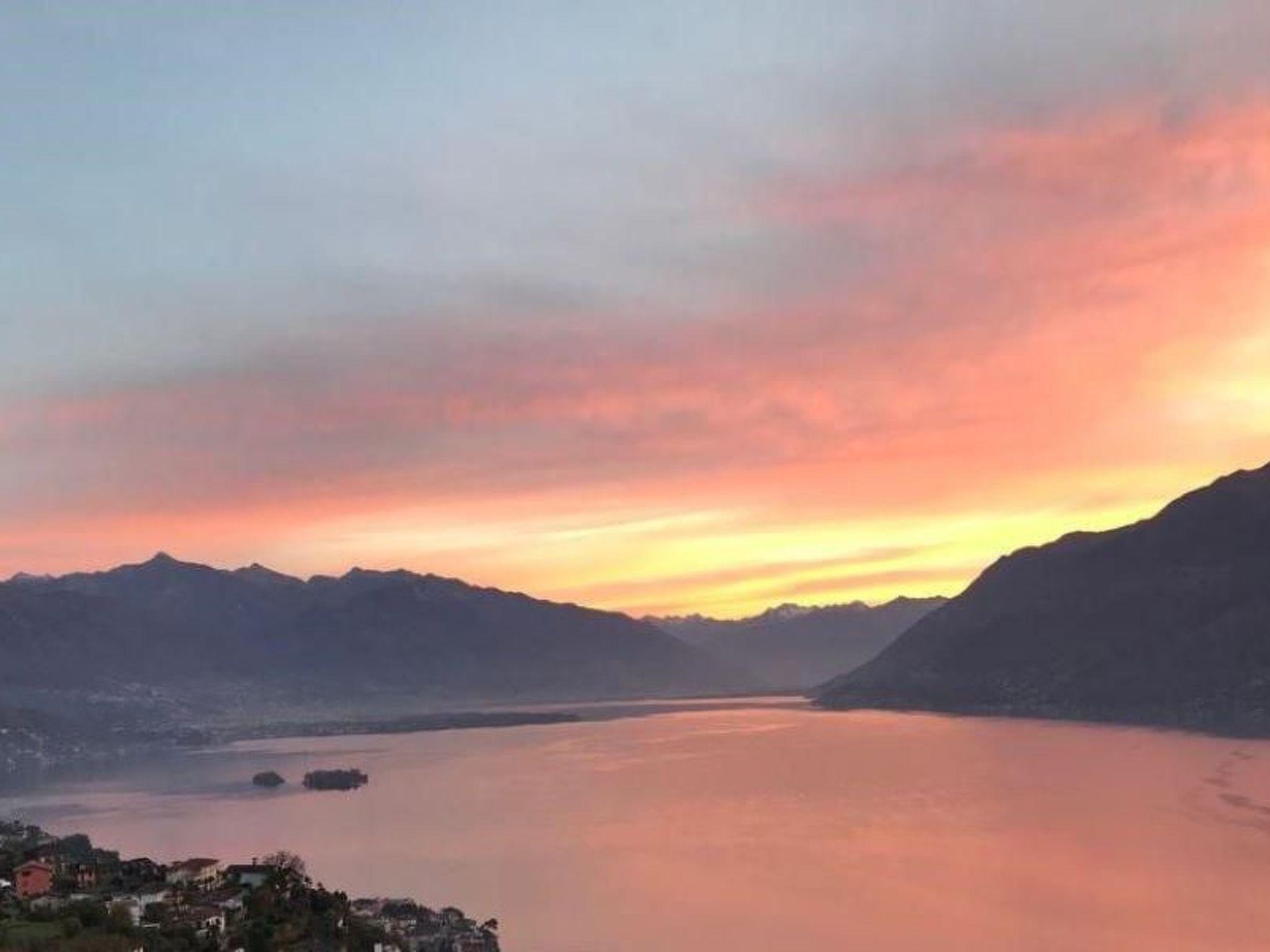 Schöner geht's nicht mehr! Die grosszügige und helle 4.5-Zimmer-Villa oberhalb von Brissago verwöhnt Sie mit einer atemberaubenden 180°-Sicht auf den Lago Maggiore. Der Panoramablick reicht von den Schweizer Alpen mit den Seestädten Locarno und Ascona bis zum italienischen Seebecken. Auch die Schiffsanlegestelle und die nachts beleuchteten Schlösser von Bellinzona sind zu sehen. Ob auf der Terrasse, dem Balkon, im Garten oder zu Hause, Sie haben immer den schönen See vor Augen. Wenn Sie einen erholsamen Urlaub in einer malerischen Umgebung verbringen möchten, heißt Sie die "Villetta Vista Bellissima" willkommen und bietet bequem Platz für bis zu 4 Personen. Das Ferienhaus ist Teil eines charmanten und gepflegten Anwesens mit vier Wohnungen und befindet sich am Ende einer ruhigen Privatstraße, die von einem Wald und Palmenhainen gesäumt ist. Obwohl wir diese Immobilie als Wohnung beworben haben, können Sie Ihr eigenes "Häuschen" genießen, da es viel Privatsphäre bietet. Das Wunderbare an der Villetta ist, dass Sie entweder drinnen oder draußen wohnen können, je nach Lust und Laune und je nach Jahreszeit. Im Außenbereich gibt es neben der großen Pergola und dem Balkon im ersten Stock einen romantischen Gartensitzplatz mit offenem Kamin und einen weiteren abgelegenen, leicht erhöhten Sitzplatz, wo Sie einen gemütlichen Abend mit einem Aperitif genießen können. Wenn es etwas kühler wird, gehen Sie einfach hinein. Im Erdgeschoss erwartet Sie ein gemütlicher Wohn-Essbereich mit einer offenen, gut ausgestatteten Küche. Das Ganze wird gekrönt von einem spektakulären Blick auf den See. Ein Gäste-WC befindet sich direkt daneben. Im Obergeschoss befindet sich das Badezimmer mit Doppelwaschbecken, Badewanne/Dusche und WC, sowie drei Schlafzimmer, alle mit Seeblick: - Ein Schlafzimmer mit Doppelbett und direktem Zugang zum Balkon. - Das zweite Schlafzimmer, ebenfalls mit Zugang zum Balkon, bietet eine ausziehbare Schlafcouch und drei Matratzen auf dem Dachboden, der über eine offene Treppe zu erreichen ist. Ein großer Spaß, nicht nur für die Kinder! - Das dritte Zimmer ist mit zwei Einzelbetten ausgestattet. Wenn Sie nach einer himmlisch ruhigen Nacht das Bedürfnis verspüren, ins kühle Nass zu springen, haben Sie einen kurzen Spaziergang von etwa 7 Minuten vor sich. Es steht Ihnen ein gemeinsamer 11 x 5,5 Meter großer Swimmingpool mit Liegewiese und Außendusche zur Verfügung. Tipp: Die Monate Dezember bis Februar sind die Monate mit den wenigsten Regentagen im Jahr, so dass man schon einige warme Sonnenstunden im Freien verbringen kann. Wer Ruhe und Erholung sucht, wird diese Monate sehr zu schätzen wissen. Wichtiger Hinweis: Es gibt einen direkten Zugang zum Haus, aber nicht zur Wohnung. Der Zugang erfolgt über mehrere Treppen (insgesamt 84 Stufen).
