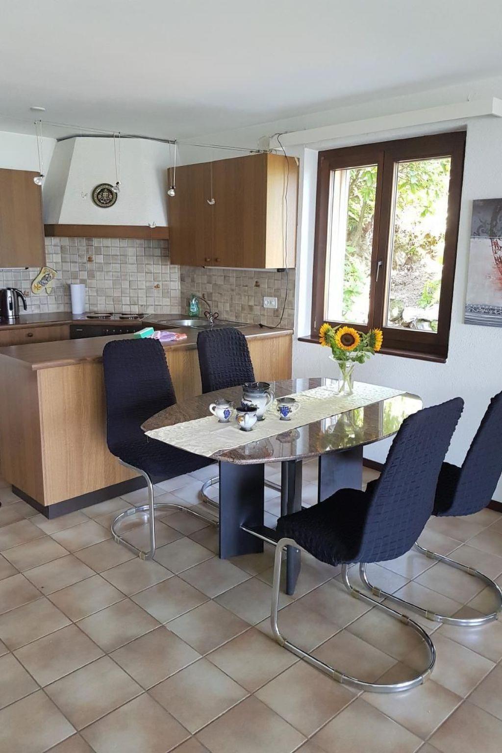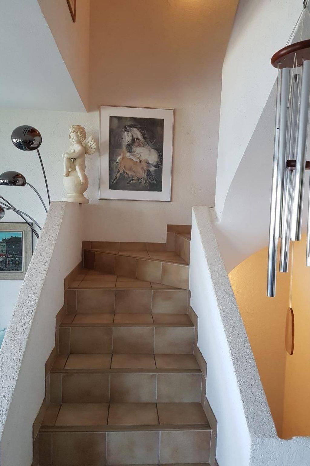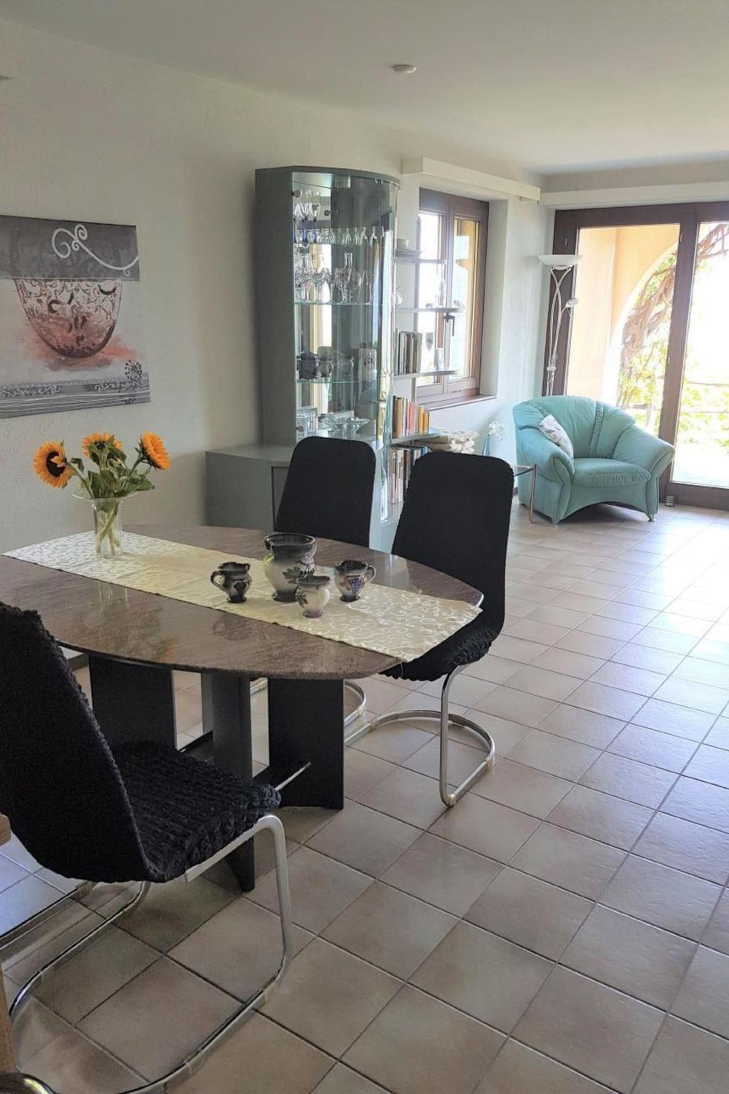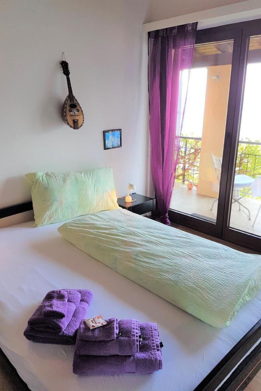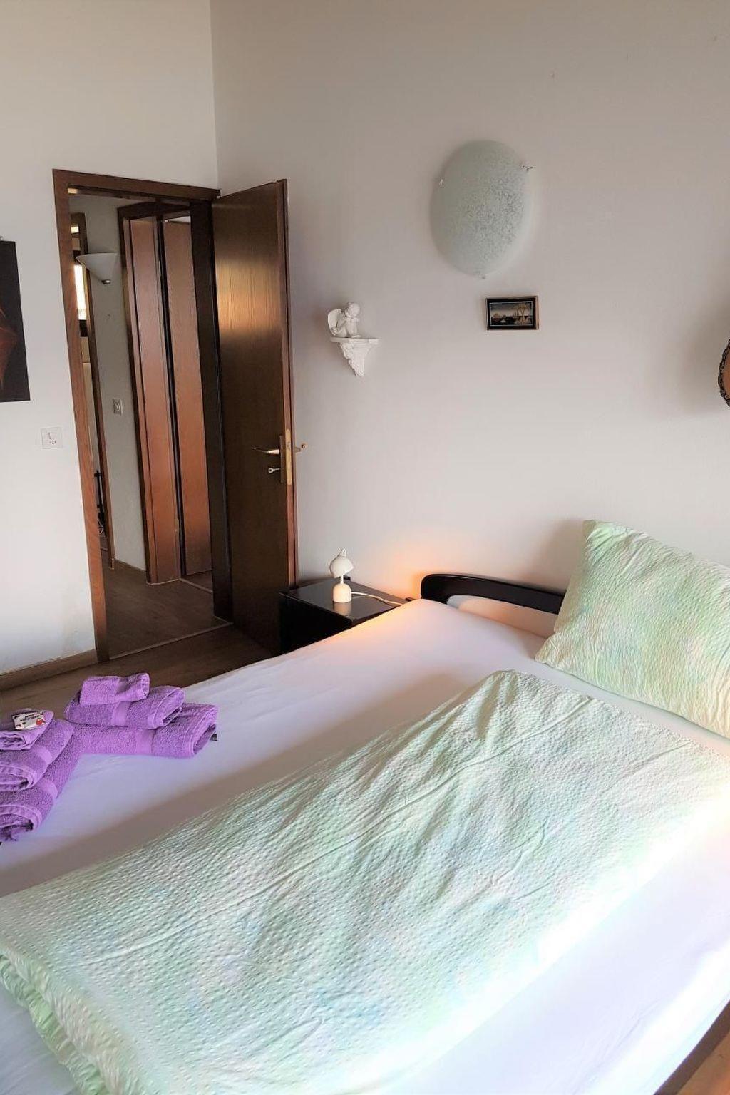 Schöner geht's nicht mehr! Die grosszügige und helle 4.5-Zimmer-Villa oberhalb von Brissago verwöhnt Sie mit einer atemberaubenden 180°-Sicht auf den Lago Maggiore. Der Panoramablick reicht von den Schweizer Alpen mit den Seestädten Locarno und Ascona bis zum italienischen Seebecken. Auch die Schiffsanlegestelle und die nachts beleuchteten Schlösser von Bellinzona sind zu sehen. Ob auf der Terrasse, dem Balkon, im Garten oder zu Hause, Sie haben immer den schönen See vor Augen. Wenn Sie einen erholsamen Urlaub in einer malerischen Umgebung verbringen möchten, heißt Sie die "Villetta Vista Bellissima" willkommen und bietet bequem Platz für bis zu 4 Personen. Das Ferienhaus ist Teil eines charmanten und gepflegten Anwesens mit vier Wohnungen und befindet sich am Ende einer ruhigen Privatstraße, die von einem Wald und Palmenhainen gesäumt ist. Obwohl wir diese Immobilie als Wohnung beworben haben, können Sie Ihr eigenes "Häuschen" genießen, da es viel Privatsphäre bietet. Das Wunderbare an der Villetta ist, dass Sie entweder drinnen oder draußen wohnen können, je nach Lust und Laune und je nach Jahreszeit. Im Außenbereich gibt es neben der großen Pergola und dem Balkon im ersten Stock einen romantischen Gartensitzplatz mit offenem Kamin und einen weiteren abgelegenen, leicht erhöhten Sitzplatz, wo Sie einen gemütlichen Abend mit einem Aperitif genießen können. Wenn es etwas kühler wird, gehen Sie einfach hinein. Im Erdgeschoss erwartet Sie ein gemütlicher Wohn-Essbereich mit einer offenen, gut ausgestatteten Küche. Das Ganze wird gekrönt von einem spektakulären Blick auf den See. Ein Gäste-WC befindet sich direkt daneben. Im Obergeschoss befindet sich das Badezimmer mit Doppelwaschbecken, Badewanne/Dusche und WC, sowie drei Schlafzimmer, alle mit Seeblick: - Ein Schlafzimmer mit Doppelbett und direktem Zugang zum Balkon. - Das zweite Schlafzimmer, ebenfalls mit Zugang zum Balkon, bietet eine ausziehbare Schlafcouch und drei Matratzen auf dem Dachboden, der über eine offene Treppe zu erreichen ist. Ein großer Spaß, nicht nur für die Kinder! - Das dritte Zimmer ist mit zwei Einzelbetten ausgestattet. Wenn Sie nach einer himmlisch ruhigen Nacht das Bedürfnis verspüren, ins kühle Nass zu springen, haben Sie einen kurzen Spaziergang von etwa 7 Minuten vor sich. Es steht Ihnen ein gemeinsamer 11 x 5,5 Meter großer Swimmingpool mit Liegewiese und Außendusche zur Verfügung. Tipp: Die Monate Dezember bis Februar sind die Monate mit den wenigsten Regentagen im Jahr, so dass man schon einige warme Sonnenstunden im Freien verbringen kann. Wer Ruhe und Erholung sucht, wird diese Monate sehr zu schätzen wissen. Wichtiger Hinweis: Es gibt einen direkten Zugang zum Haus, aber nicht zur Wohnung. Der Zugang erfolgt über mehrere Treppen (insgesamt 84 Stufen).