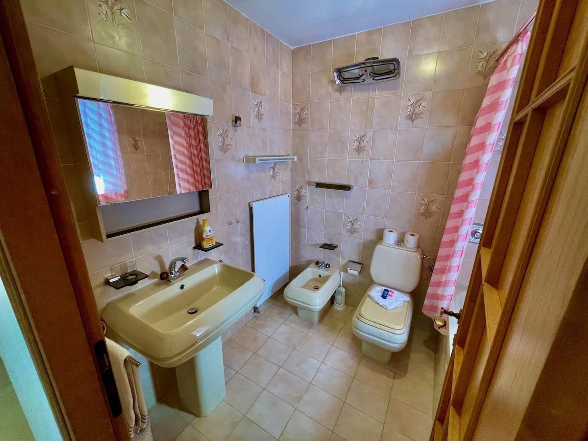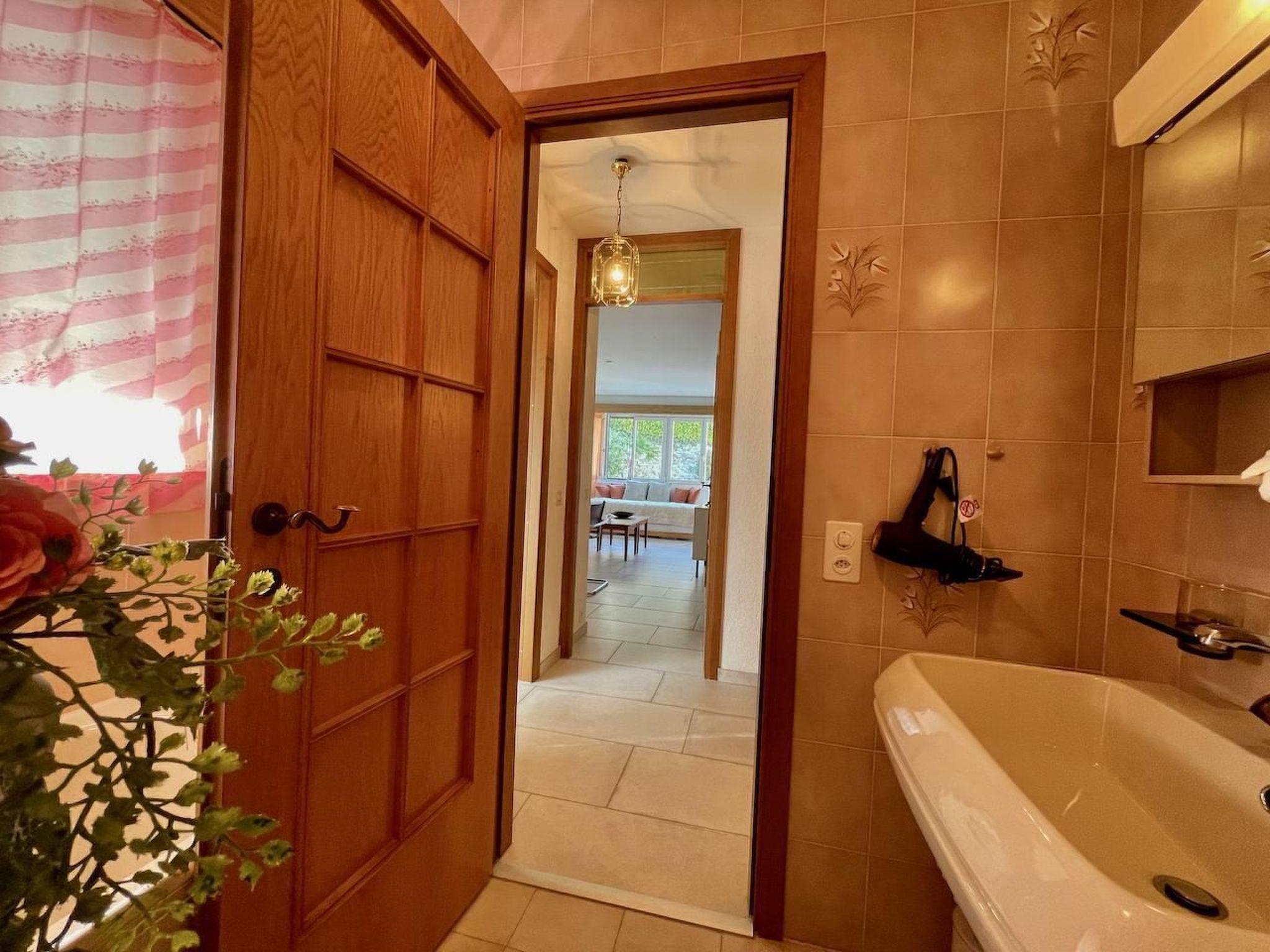 Alle sanitären Anlagen sind neuwertig, obwohl der Retro-Chic hier am besten erkennbar ist. Das Badezimmer ist mit einer grossen Badewanne/Dusche, einer Toilette, einem Bidet, einem Lavabo sowie Spiegelschrank (Stauraum) ausgestattet. Ein Haartrockner steht zur Benutzung zur Verfügung.