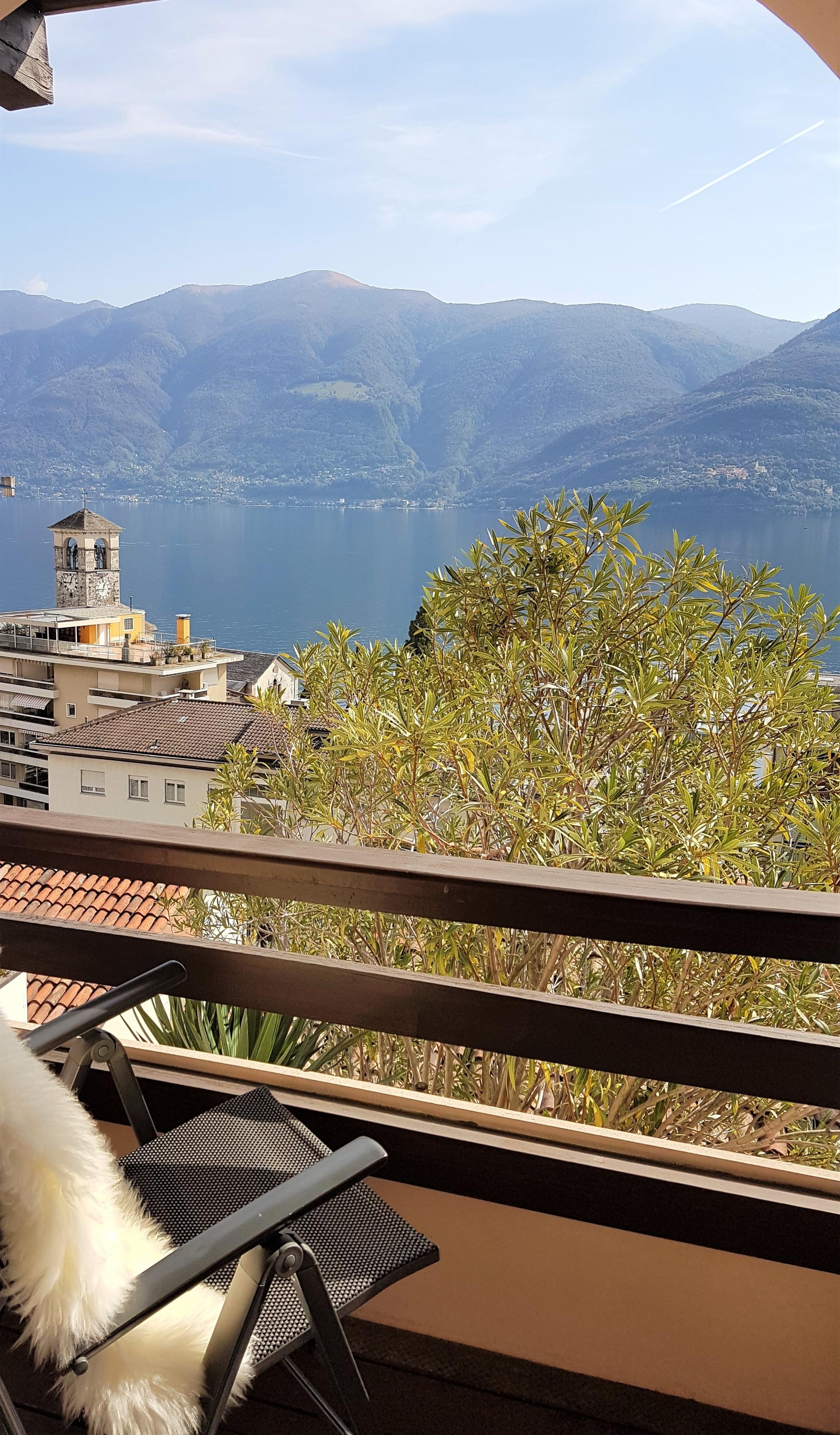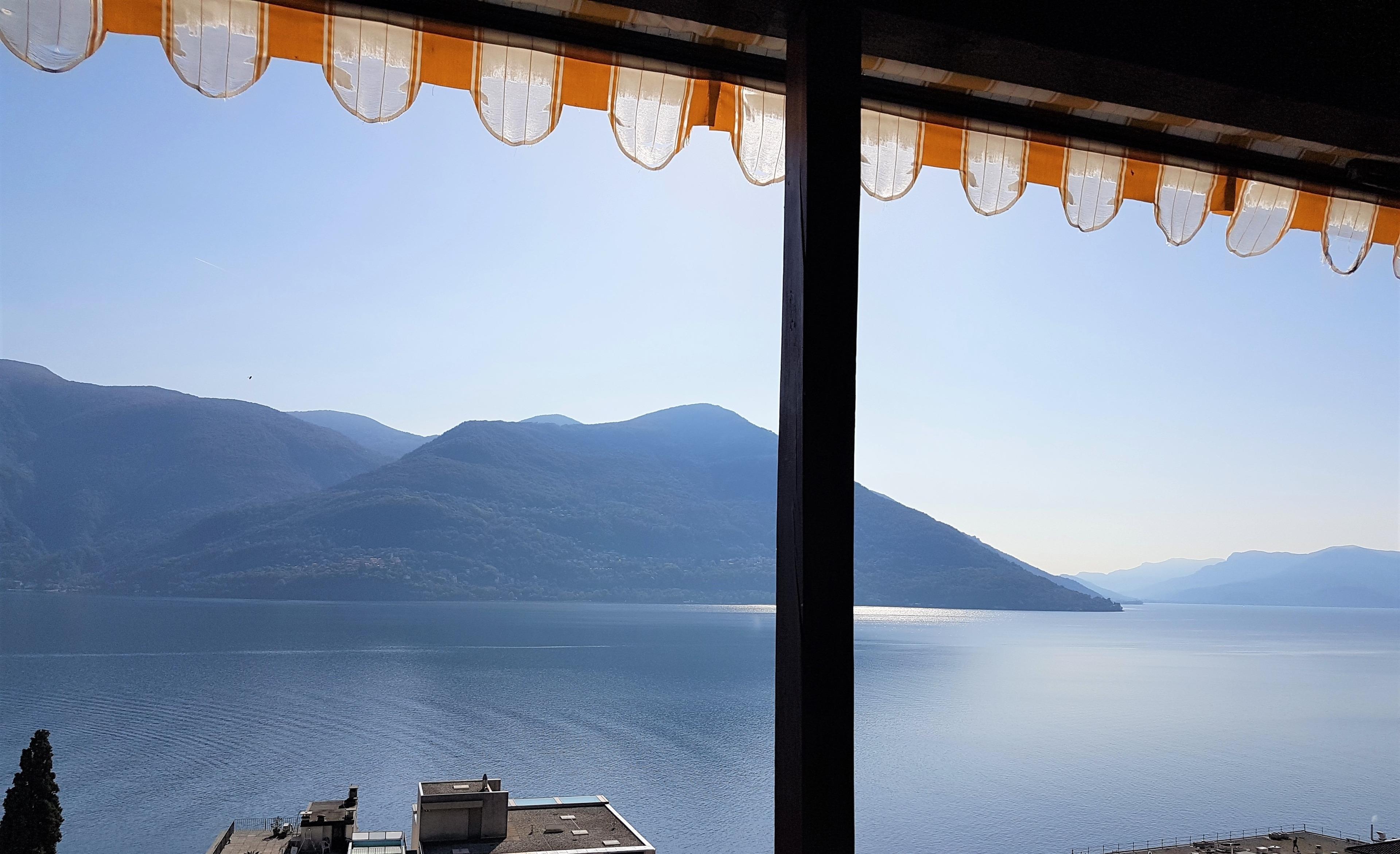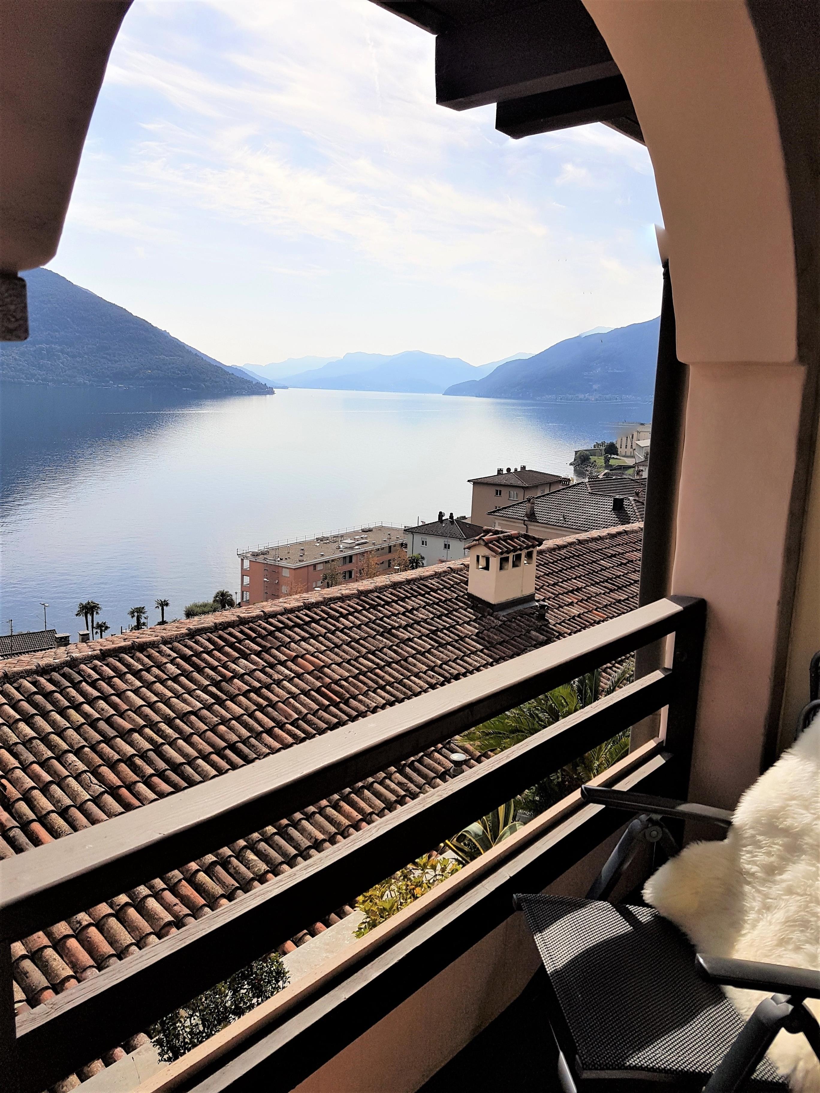 Die Maisonette-Wohnung mit den zwei Terrassen und einem wunderbaren Blick auf den Lago Maggiore Richtung Italien und den Schweizer Bergen liegt ganz in der Nähe der fussläufig erreichbaren herrlichen Seepromenade. Aufgrund der bevorzugten Lage im Appartementhaus in der 5. Etage, das auf einer Anhöhe von etwa 100 Meter entfernt von der Uferstrasse liegt, bekommen Sie vom quirligen Leben um sie herum allerdings nur wenig mit.