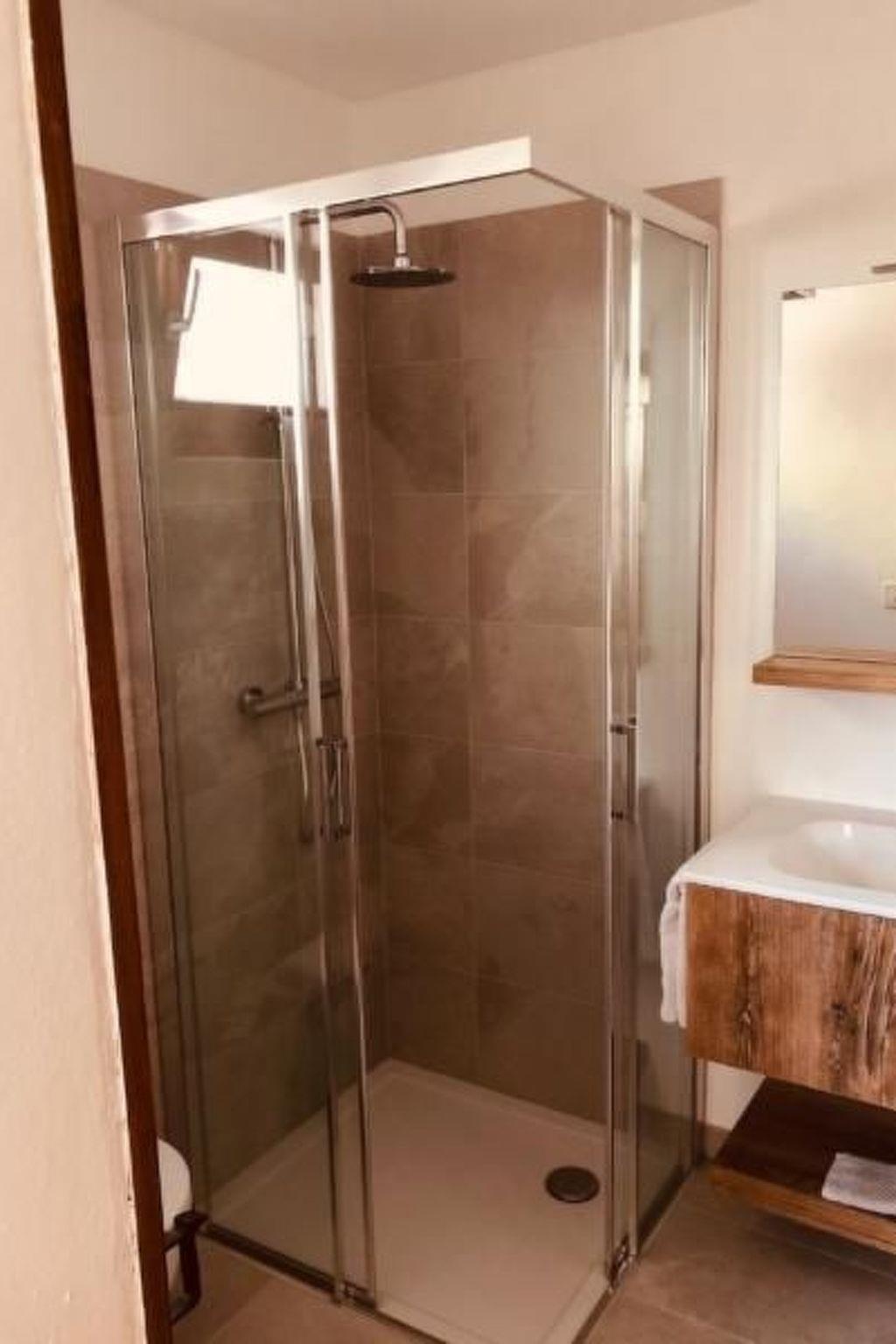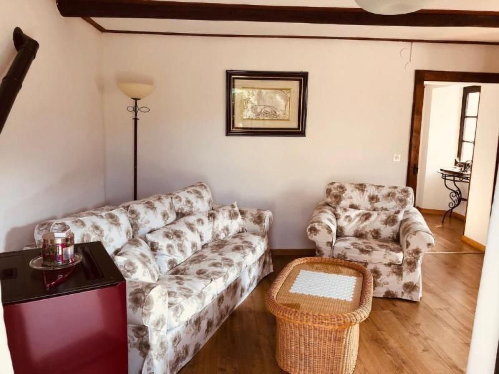 Das Innere des Hauses verfügt über eine Wohnküche, die mit allen modernen Annehmlichkeiten ausgestattet ist, darunter ein Kühl-/Gefrierschrank, ein Heißluftofen, ein Elektroherd und andere kleine Geräte, die für das tägliche Leben unerlässlich sind, wie eine Schneidemaschine, eine Kaffeemaschine, ein Wasserkocher und ein Toaster, die alle durch einen traditionellen Holzkamin ergänzt werden. Das liebevoll eingerichtete Wohnzimmer bietet ein gemütliches Sofa, einen Fernseher und einen Pelletofen, der zu entspannten Abenden einlädt. Das kürzlich renovierte Badezimmer ist mit allen notwendigen Annehmlichkeiten ausgestattet, darunter eine große Dusche. Drei geräumige Schlafzimmer bieten Platz für bis zu sechs Personen und ein kleines Kind und bieten somit Platz und Komfort für die ganze Familie.