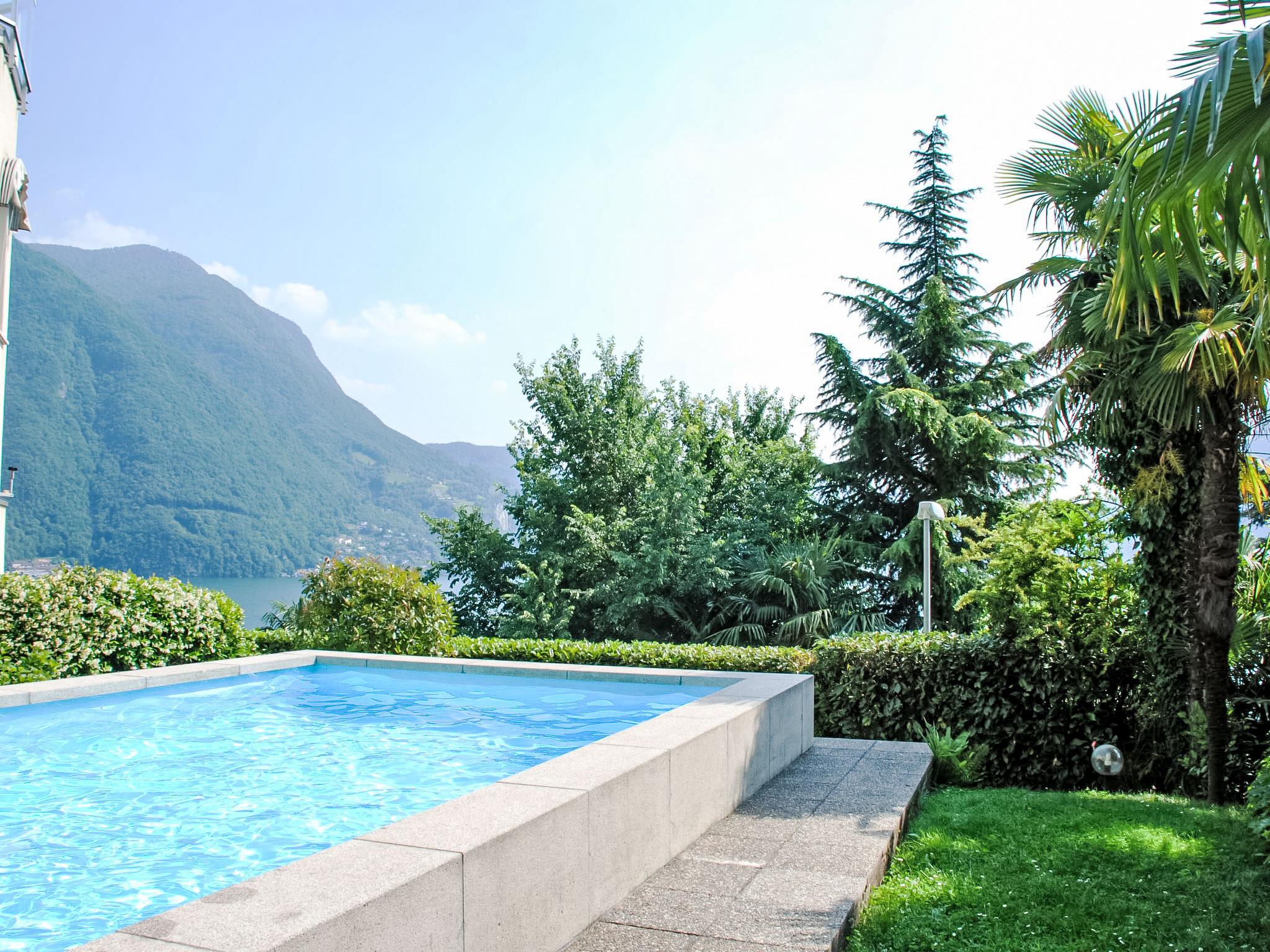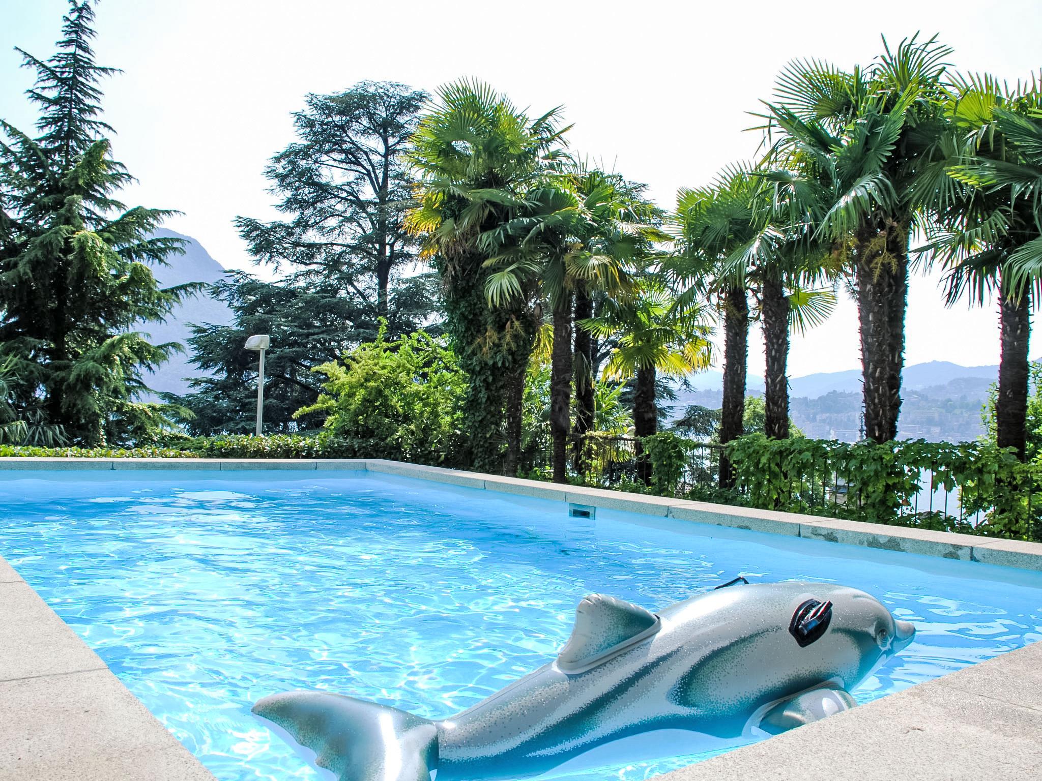 Castagnola 3 km von Lugano: Grosse, komfortable Residenz "Eldorado". Am Ortsrand, ruhige, sonnige, erhöhte Lage, exzellente Lage: Absolut zentral und dennoch ruhig, 1 km vom See, Richtung Süden. Zur Mitbenutzung: kleiner Garten Pflanzen, Wiese, Schwimmbad eckig eingezäunt (3 x 4 m, saisonale Verfügbarkeit: 01.Jun. - 15.Sep.). Aussendusche, Sitzplatz, Gartenmöbel. Im Hause: Fahrstuhl, Einstellraum für Fahrräder, Zentralheizung, Waschmaschine, Wäschetrockner (zur Mitbenutzung, extra). Zufahrt bis zum Haus. Gemeinschaftsgarage beim Haus. Parkplatz/Garage nur für kleine - mittlere Fahrzeuge geeignet. Maße: Höhe 150 cm. Einkaufsgeschäft 1 km, Lebensmittelgeschäft 1 km, Supermarkt 1 km, Restaurant 300 m, Bar, Café, Zentrum zu Fuss in 20 Minuten erreichbar, Bushaltestelle "Linie 2" 1 m, Bahnstation "Lugano SBB-CFF" 3.6 km. Tennis 1 km, Wanderwege ab Haus 1 m. Nahe gelegene Sehenswürdigkeiten: Gandria-Porlezza-Como, Swissminiatur, Melide 9.2 km, Outlet Fowtown, Mendrisio 22 km, Mercato Como, Ponte Tresa, Luino IT. Bekannte Seen in der Umgebung sind gut erreichbar: Lago di Lugano, Lago di Como, Lago Maggiore. Wandergebiete: Monte Bré, Monte Tamaro, San Salvatore, Monte San Giorgio, Monte Lema. Bitte beachten: Babyausstattung auf Anfrage (extra).