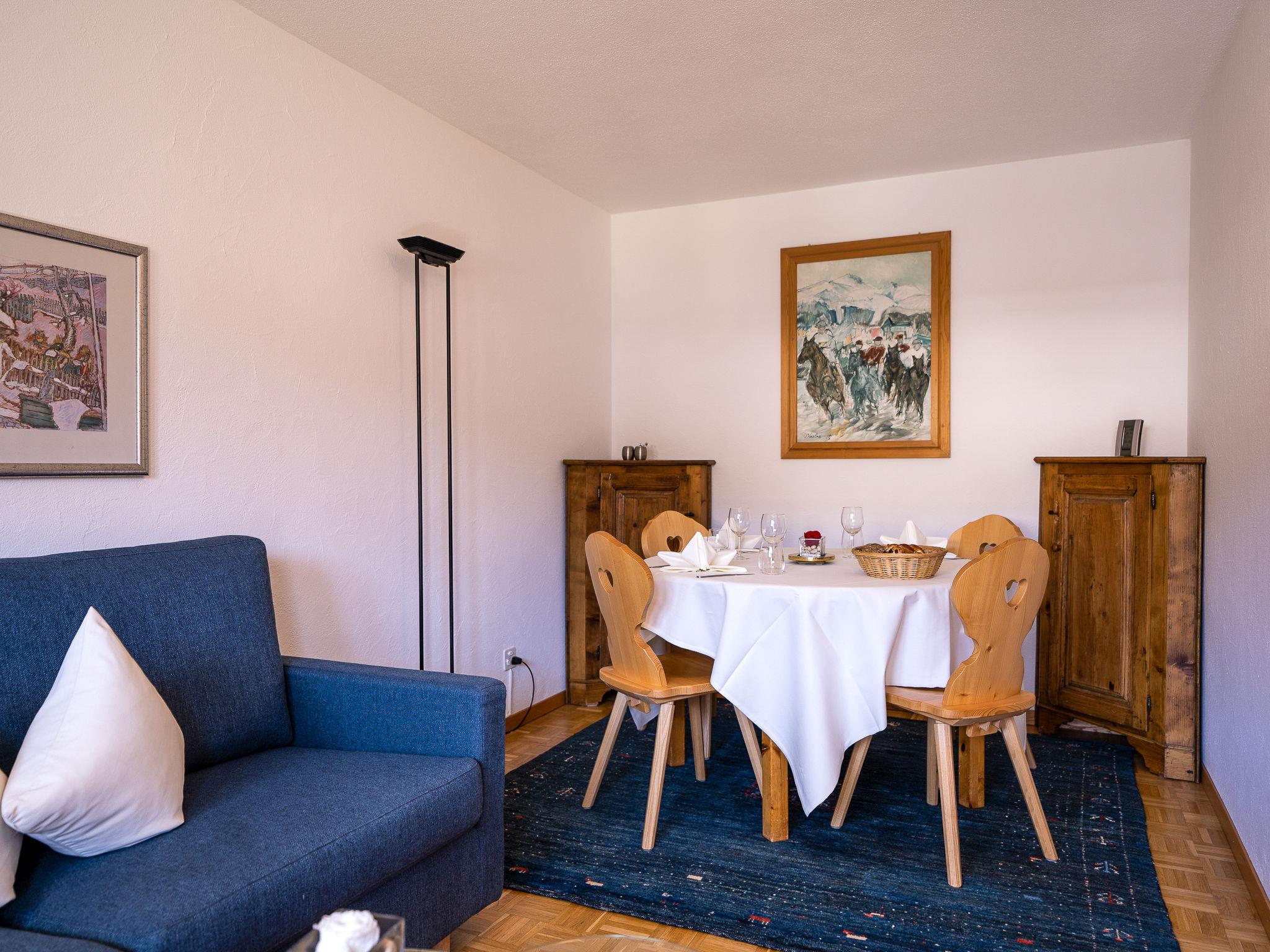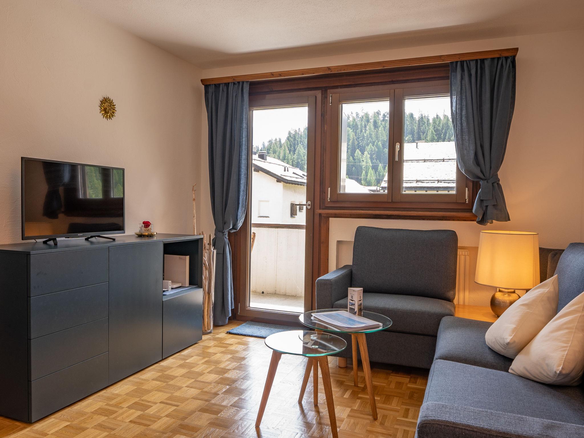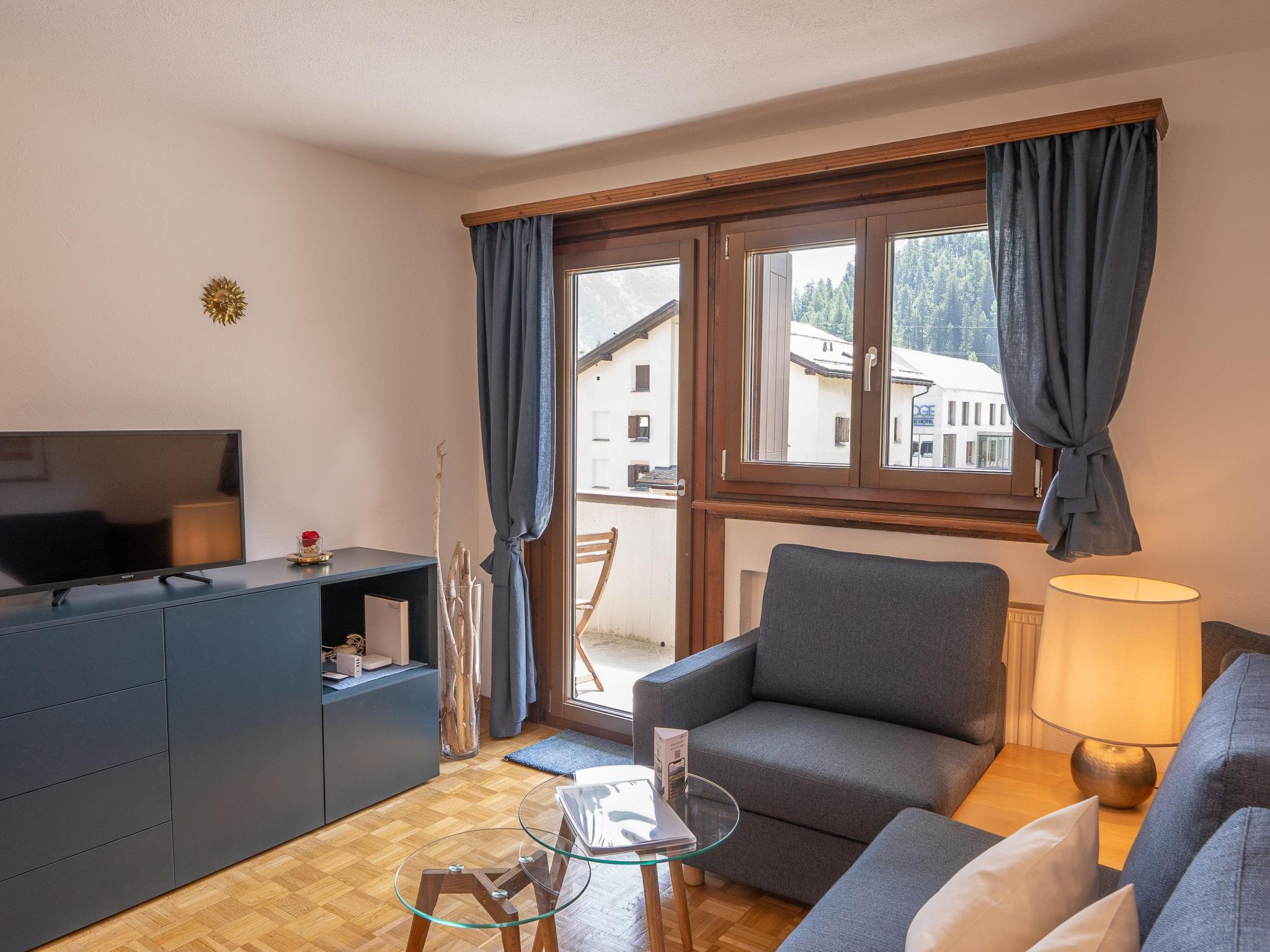"Chesa Palüdin 8 - Celerina", 3-Zimmer-Wohnung 50 m2 im 2. Stock. Schön und gemütlich eingerichtet: offenes Wohn-/Esszimmer mit TV (Flachbildschirm). Ausgang zum Balkon. 1 Doppelzimmer mit 1 franz. Bett (1 x 160 cm, Länge 195 cm). 1 Zimmer mit 1 Bett (90 cm, Länge 195 cm). Kleine Küche (4 Kochplatten, Backofen, Geschirrspüler, Toaster, Wasserkocher, elektrische Kaffeemaschine, Kapseln für die Kaffeemaschine (Nespresso) extra, Racletteofen, Fondue Set (Chinoise, Käse)). Bad/Bidet/WC. Heizung. Parkettboden. Kleiner Balkon 9 m2. Balkonmöbel. Sehr schöne Sicht auf die Berge und die Landschaft. Zur Verfügung: Bügeleisen, Haartrockner. Internet (Wireless LAN, gratis). Garage Nr. 8 (1 Auto), Höhe 195 cm, Breite 230 cm. E-Ladestation. Bitte beachten: Nichtraucher-Unterkunft, Nichtraucher-Haus. Maximal 1 Haustier/Hund erlaubt. Kein Fahrstuhl.