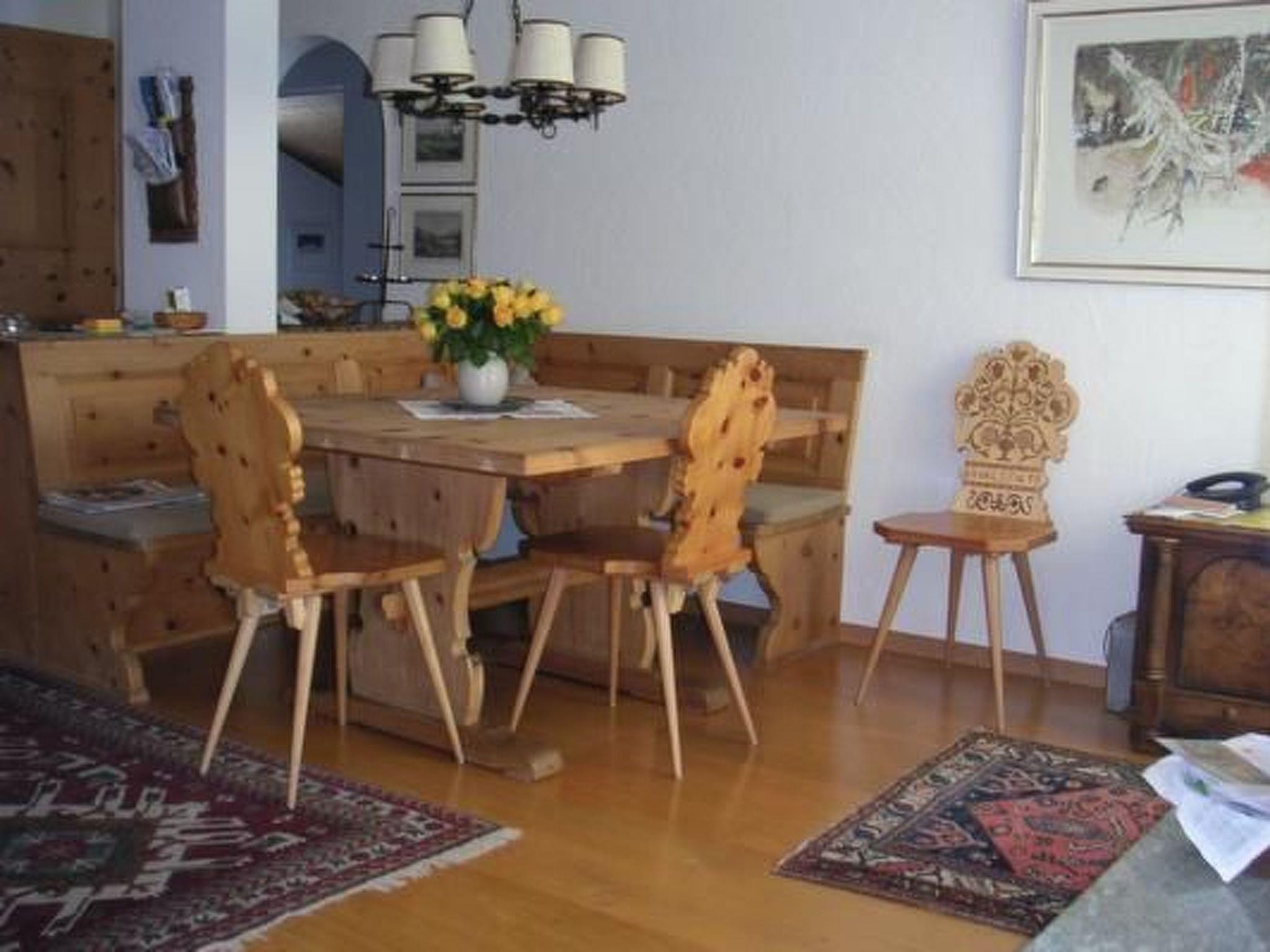 Im Innern erwartet Sie eine gemütliche 3,5-Zimmerwohnung im 1. Stock, die mit viel Liebe zum Detail eingerichtet ist. Das Wohn- und Esszimmer, möbliert mit Arvenmöbeln und ausgesuchten Antiquitäten auf glänzenden Parkettböden, verspricht alpine Gemütlichkeit. Für Ihre Unterhaltung und Kommunikation sind ein TV, Radio und WLAN sowie ein Festnetztelefon vorhanden. Die offene, moderne Küche mit Granitabdeckungen ist voll ausgestattet - inklusive Backofen, Combisteamer und Geschirrspüler. Nicht zu vergessen: Fondue- und Raclettegeschirr für stimmungsvolle Abende.