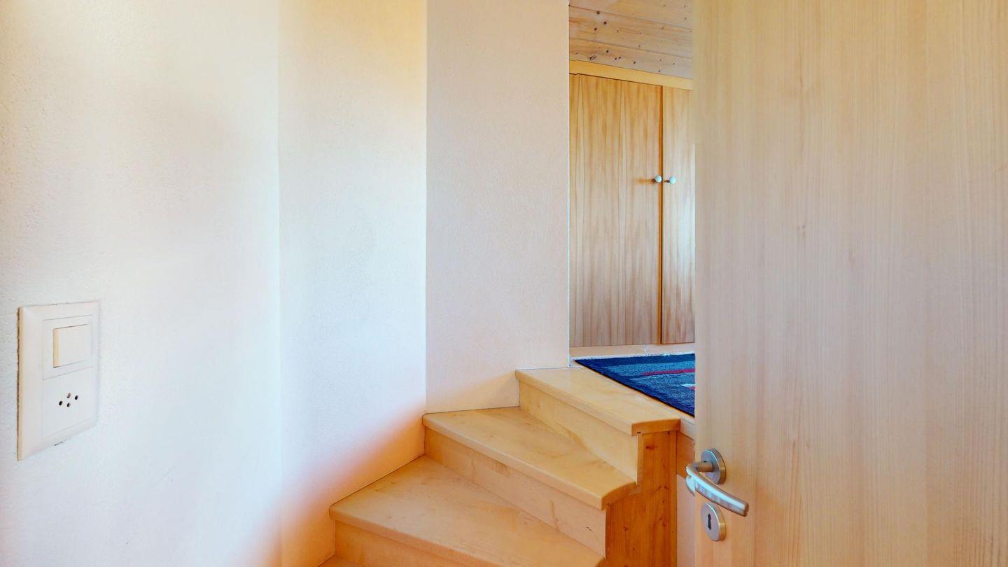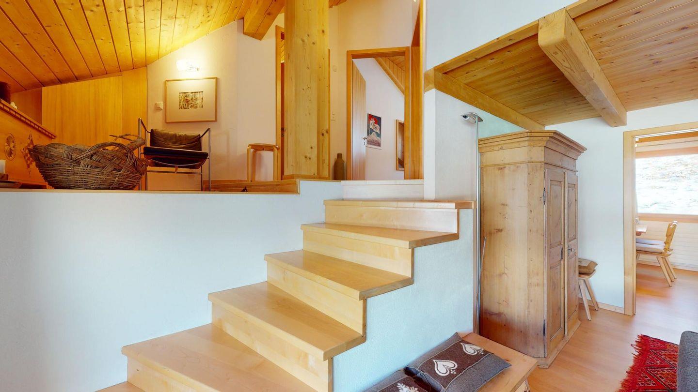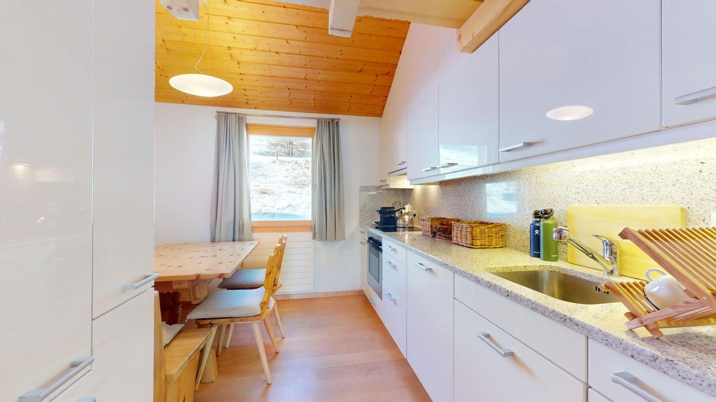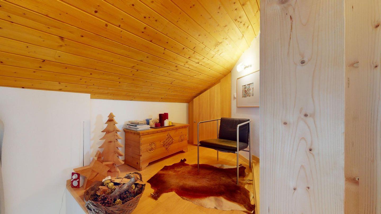 Sonnige 3-Zimmerwohnung in letzter Reihe über Celerina. Nach dem Wohnungseingang führt eine Treppe ins Wohnzimmer mit Balkon und herrlichem Blick in die Bergwelt. Geschlossene Küche mit Essbereich. Ein Schlafzimmer mit Doppelbett. Ein kleineres Schlafzimmer mit zwei Einzelbetten. Badezimmer mit Wanne, WC, Bidet und Lavabo. Ein Parkplatz in der Garage. Nichtraucherwohnung. Haustiere sind nicht gestattet.