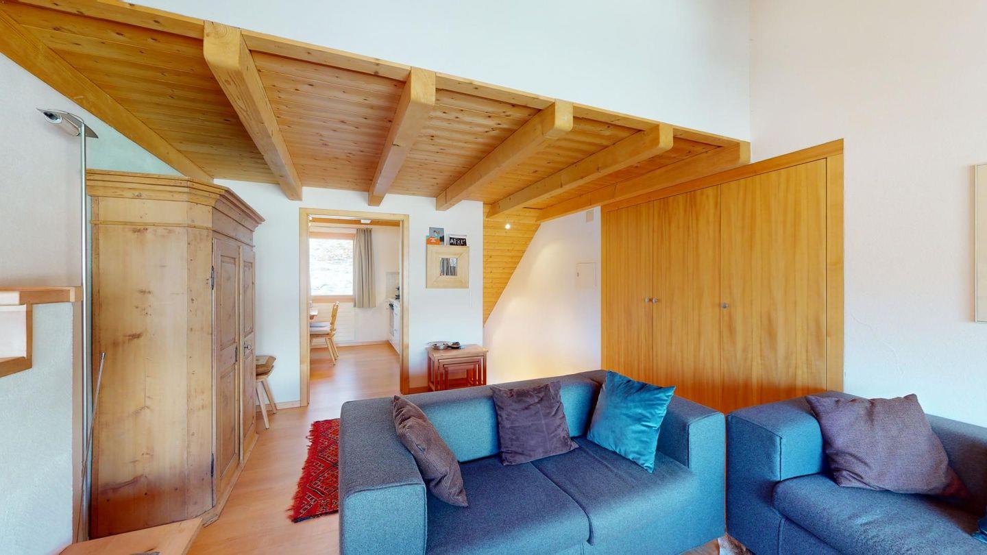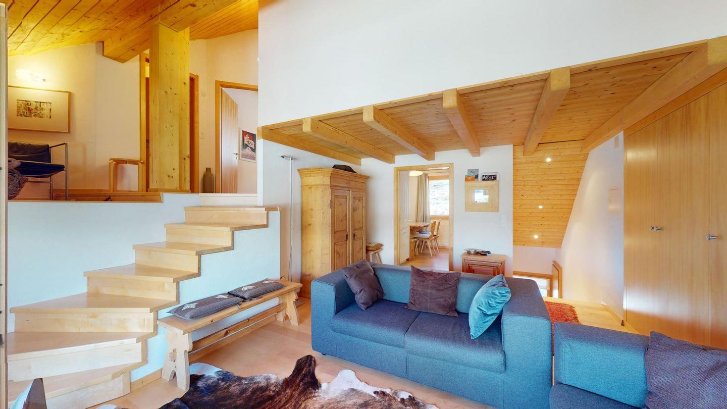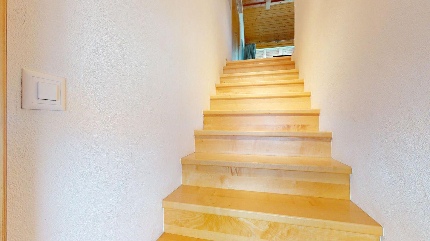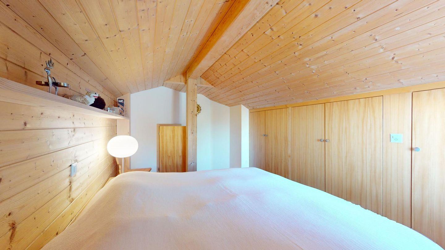 Sonnige 3-Zimmerwohnung in letzter Reihe über Celerina. Nach dem Wohnungseingang führt eine Treppe ins Wohnzimmer mit Balkon und herrlichem Blick in die Bergwelt. Geschlossene Küche mit Essbereich. Ein Schlafzimmer mit Doppelbett. Ein kleineres Schlafzimmer mit zwei Einzelbetten. Badezimmer mit Wanne, WC, Bidet und Lavabo. Ein Parkplatz in der Garage. Nichtraucherwohnung. Haustiere sind nicht gestattet.
