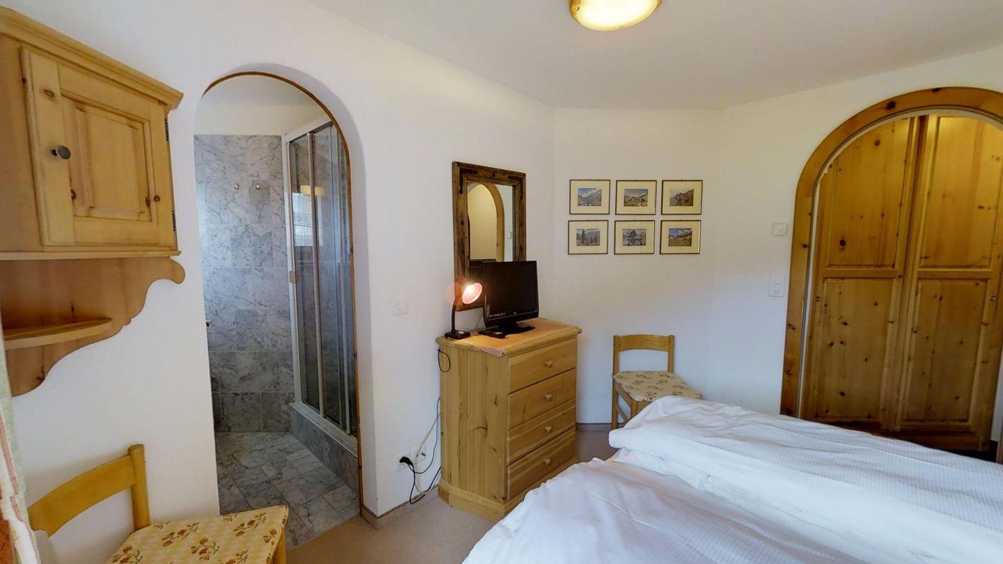 3 – Zimmerwohnung, ca.70 m², im EG. Eingang mit Garderobe. Wohn-/Esszimmer mit Fernseher, Radio, CD und Internet. Ausgang auf den Gartensitzplatz. Offene Küche mit Backofen, Geschirrspülmaschine, Kaffeemaschine (Chicco d'Oro), Raclette und Fondue Set, Wasserkocher und Kühlschrank. Ein Doppelzimmer mit Bad Dusche/WC/Lavabo. Ein Zimmer mit Kajüttenbett und ein Einzelbett. Ein Bad mit Wanne/WC und Lavabo. Waschküche zur gemeinsamen Benützung. Zur Wohnung gehört auch ein Garagenparkplatz max. Höhe 1.90M. Haustiere sind nicht erlaubt.