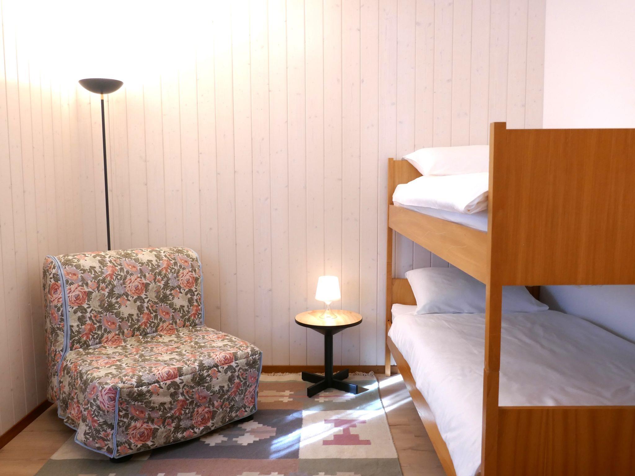"La Casetta", 3-Zimmer-Haus 61 m2. Objekt geeignet für 2 Erwachsene + 2 Kinder. Zweckmässig und gemütlich eingerichtet: offenes Wohn-/Esszimmer mit offenem Kamin, Esstisch und TV. Küche (Backofen, Geschirrspüler, 4 Glaskeramikplatten, Toaster, Wasserkocher, elektrische Kaffeemaschine, Kapseln für die Kaffeemaschine (Nespresso) extra, Fondue Set (Käse)). Obergeschoss: 1 Doppelzimmer mit 1 Doppelbett (2 x 90 cm, Länge 200 cm). 1 Zimmer mit 1 x 2 Etagenbetten (90 cm, Länge 190 cm). Bad/Bidet/WC. E-Heizung. Kleiner Gartensitzplatz 6 m2, Garten 20 m2. Liegestühle (2), Sitzplatz. Zur Verfügung: Waschmaschine, Wäschetrockner, Bügeleisen, Kinderhochstuhl, Babybett bis 2 Jahre (extra), Haartrockner. Internet (WLAN). Bitte beachten: geeignet für Familien. Nichtraucher-Haus. Maximal 1 Haustier/Hund erlaubt. Rauchmelder. NL-00012800