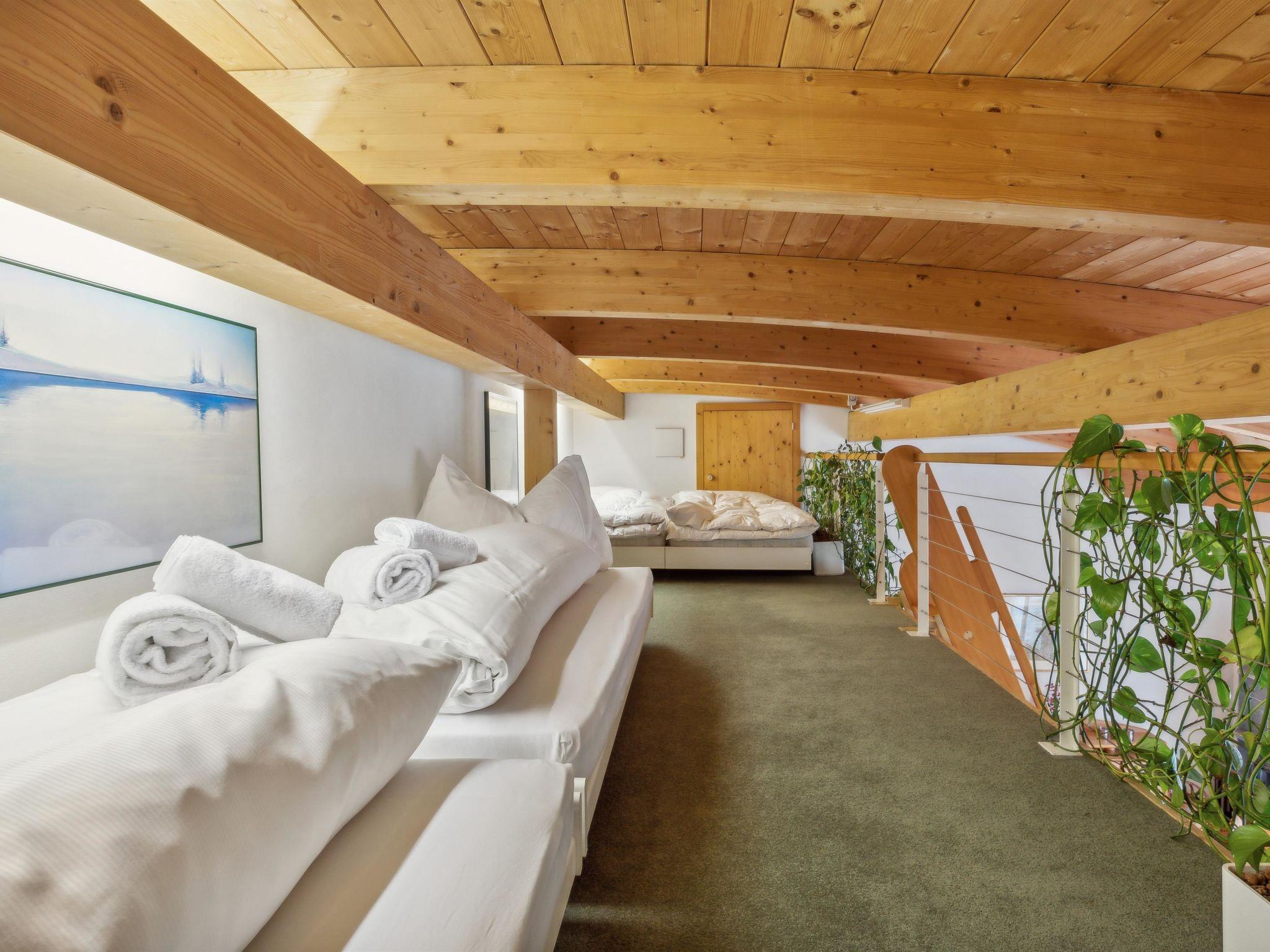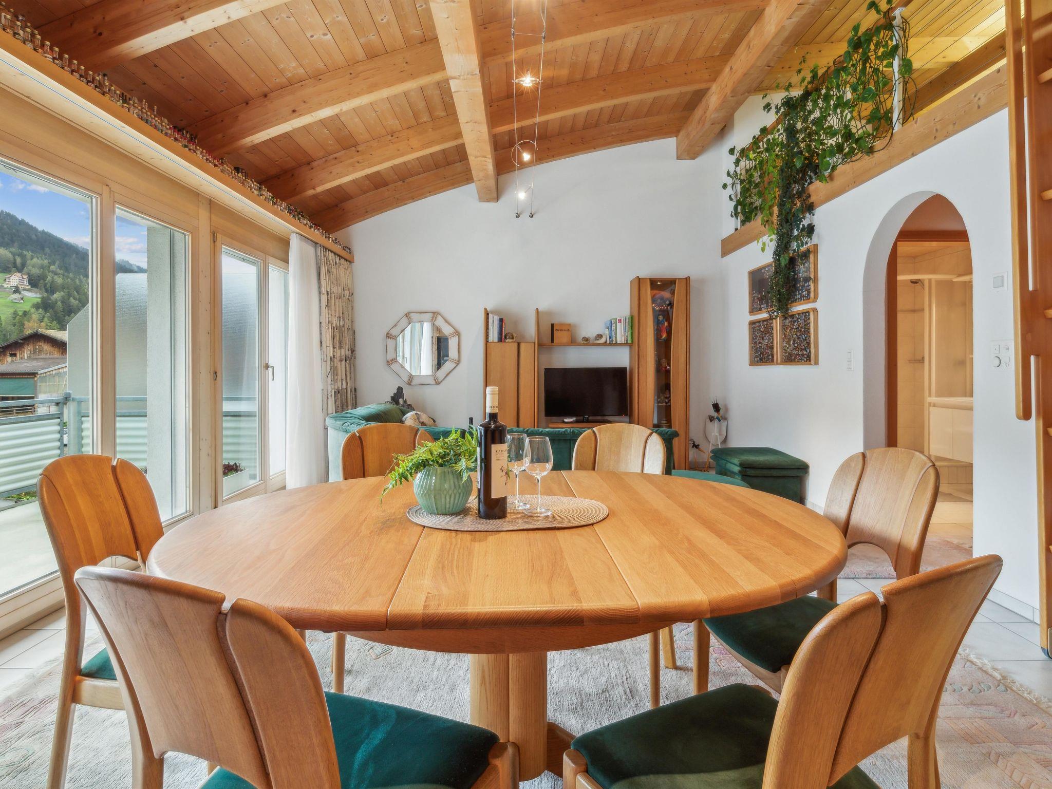2. Obergeschoss / Lift / Wlan ja / 1 Zimmer mit Doppelbett und Bad en Suite / 2-3 Schlafmöglichkeiten auf der Galerie für Kinder bis 15 Jahre / 1 Badezimmer mit WC und Dusche Einkaufsmöglichkeiten Coop und Migros sind in wenigen Gehminuten erreichbar. Ebenfalls ist die Talstation Portal und Pradaschier, sowie im Sommer auch das geheizte Freibad, Rodelbahn und Zipline in der Nähe des Hauses.