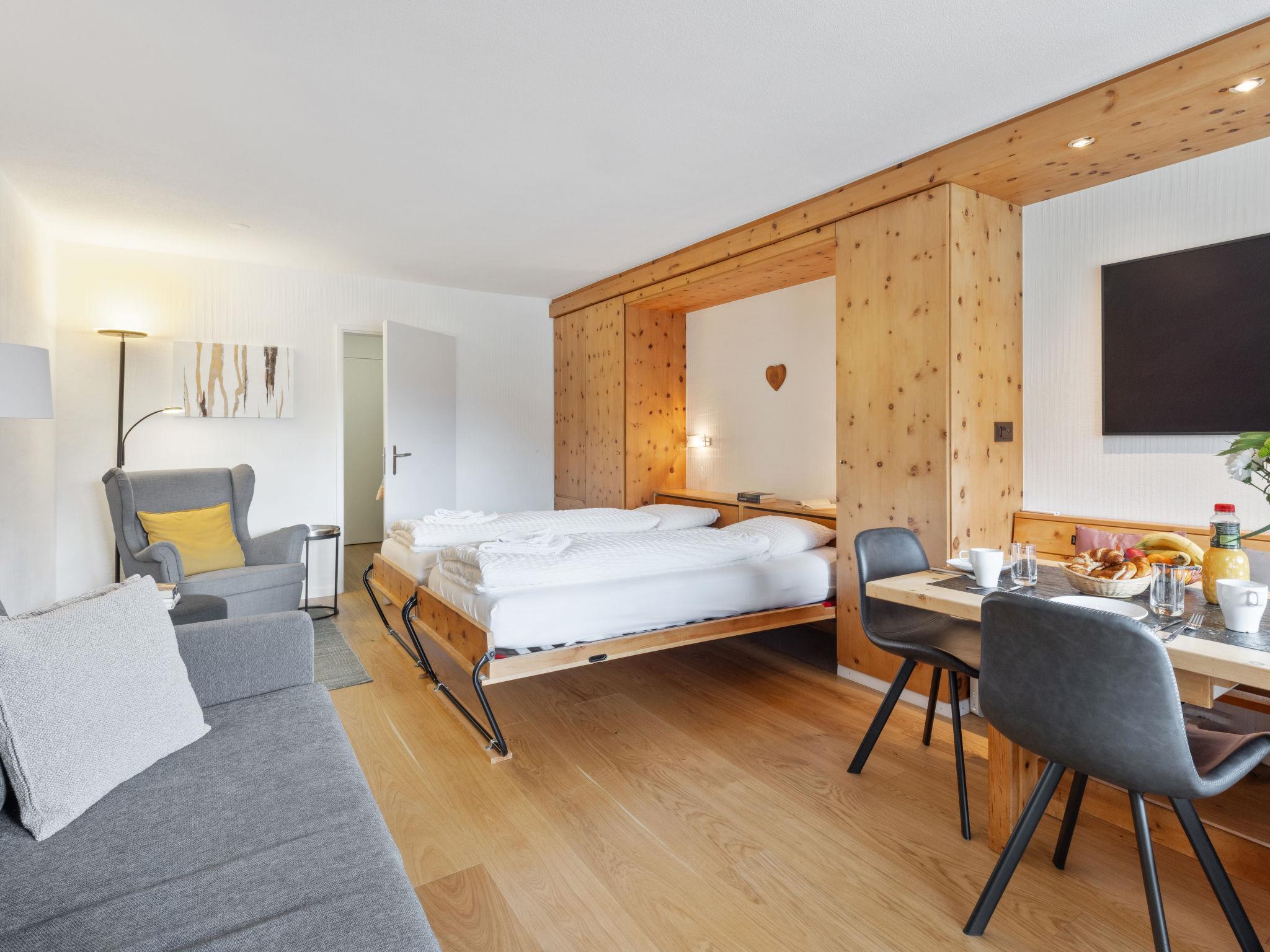 "Guardaval Apt 207", 1-Zimmer-Wohnung 38 m2 im 2. Stock. Renoviert im Jahre 2022, komfortabel und rustikal eingerichtet: Wohn-/Esszimmer mit 1 Diwanbett, 2 Wandschrankbetten und Kabel-TV (Flachbildschirm), Radio. Ausgang zum Balkon. Kochnische (Backofen, Geschirrspüler, 2 Glaskeramikplatten). Dusche/WC. Balkon 7 m2, Südlage. Schöne Sicht auf die Berge, die Landschaft und die Ortschaft. Zur Verfügung: Internet (WLAN, gratis). Parkplatz. Bitte beachten: Nichtraucher-Unterkunft. 11243