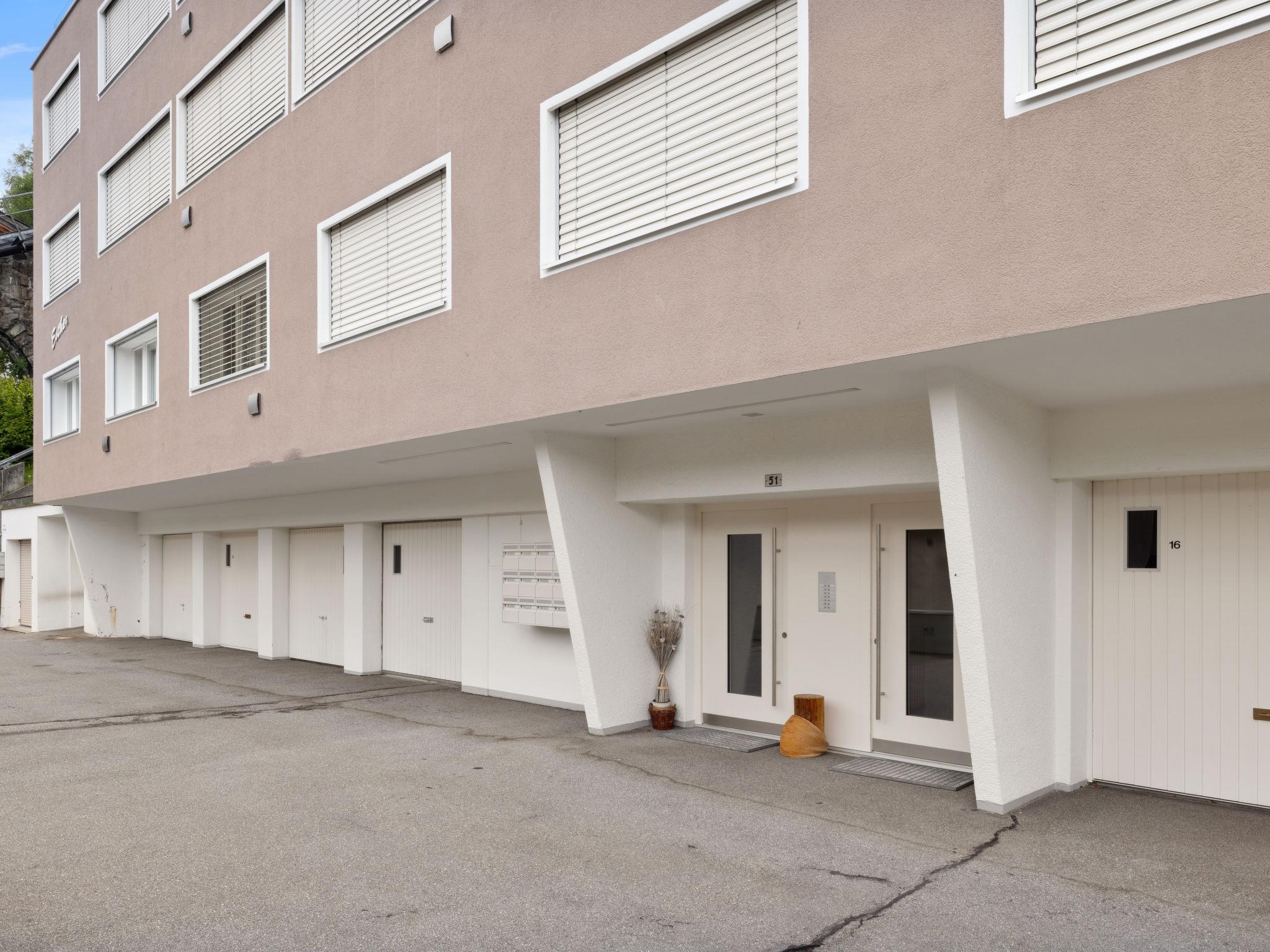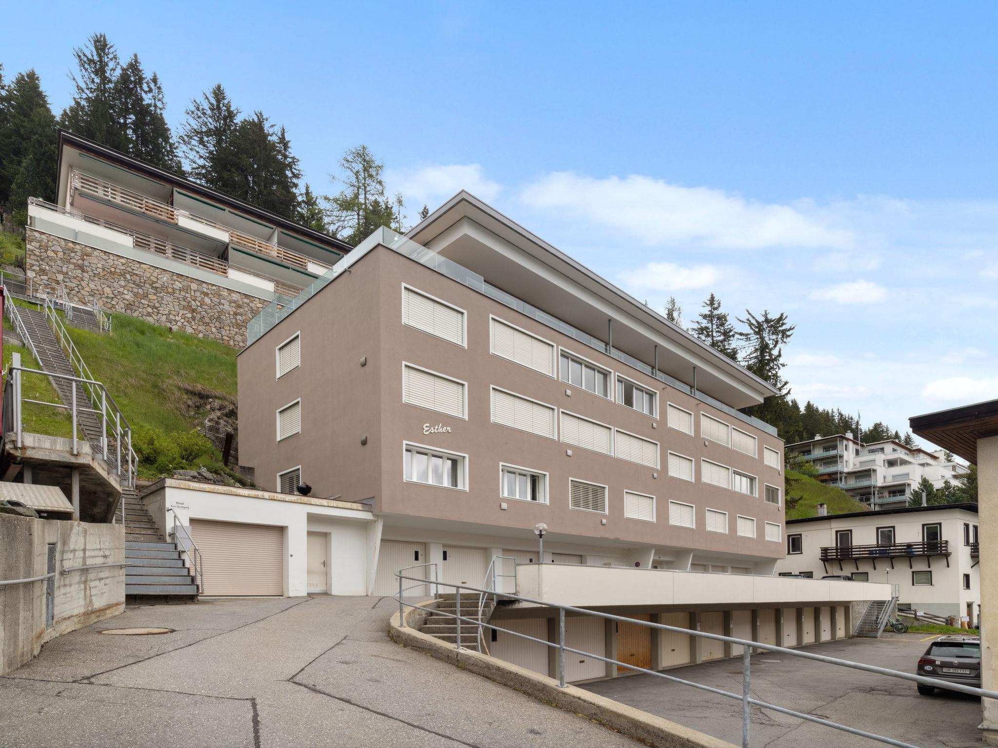 Appartementhaus "Esther". Im Ortszentrum, 250 m vom Zentrum von Davos Platz, zentrale Lage am Hang, 20 m vom Skigebiet, Richtung Süden. Im Hause: Fahrstuhl, Waschmaschine, Wäschetrockner (zur Mitbenutzung). 20 m lange steile Zufahrt bis zum Haus. Einzelgarage Nr. 6. Parkplatz/Garage nur für kleine - mittlere Fahrzeuge geeignet. Maße: Höhe 192 cm Breite 210 cm. Einkaufsgeschäft 100 m, Supermarkt 400 m, Restaurant, Bar, Bäckerei 100 m, Bushaltestelle "Davos Schatzalpbahn" 200 m, See Davoser See 2.5 km. Golfplatz (18 Loch) 800 m, Sportzentrum 400 m, Luftseilbahn 500 m, Bergeisenbahn 30 m, Skisportanlagen 15 m, Skibushaltestelle 50 m.