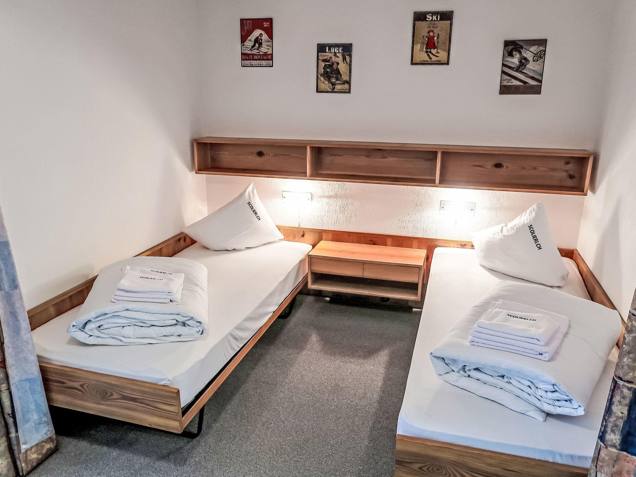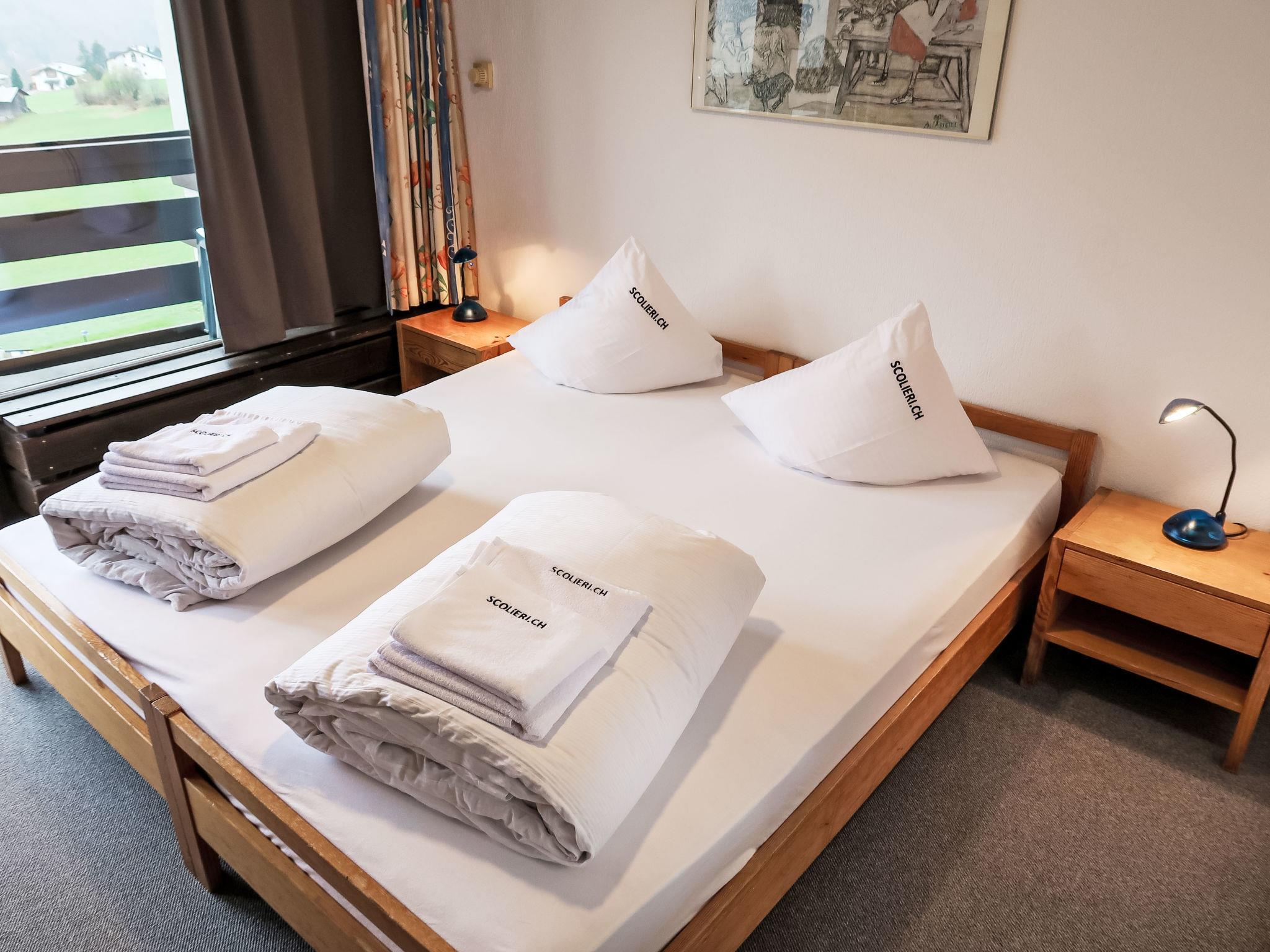"Apt B 072", 2-Zimmer-Wohnung 90 m2 im 7. Stock. Zweckmässig eingerichtet: Wohn-/Esszimmer mit 2 Wandschrankbetten und Sat-TV (Flachbildschirm). Ausgang zum Balkon. Schlafnische mit Vorhang mit 2 Betten. 1 Zimmer mit 2 Betten. Küche (Backofen, Geschirrspüler). Bad/WC. Balkon, Südlage. Balkonmöbel. Schöne Sicht auf die Berge, die Landschaft und Medelsergletscher. Zur Verfügung: Internet (Wireless LAN, gratis). Anstelle eines abgeschlossenen Schlafzimmers befinden sich manche Schlafplätze in einem offenen Bereich (Galerie, Nische etc.).