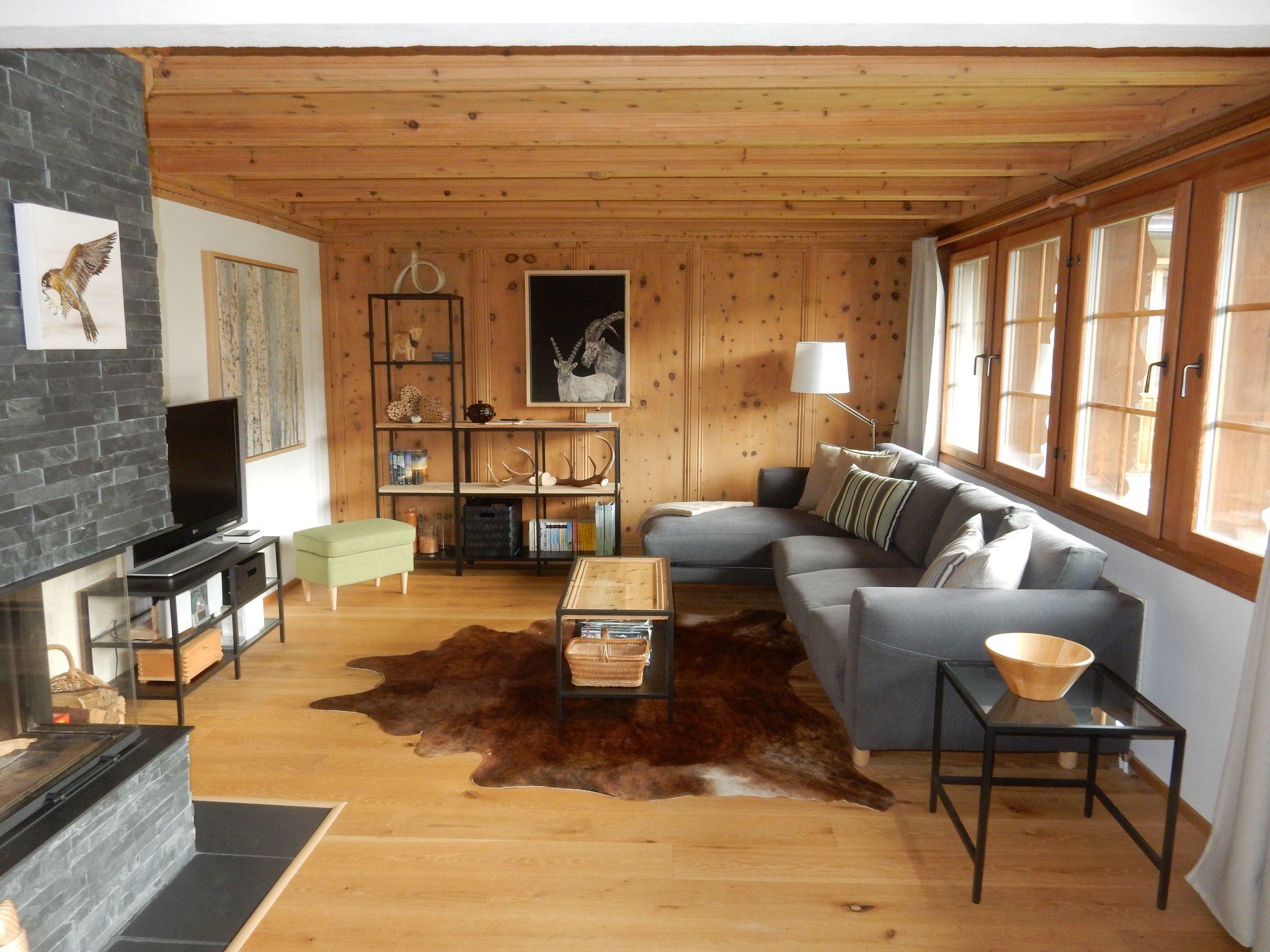 95 m2. Weitere Angaben des Anbieters: Neumöblierte und renovierte (2016) 3.5 Zimmer-Wohnung mit schöner Küche. Grosses Wohn- und Esszimmer mit cheminée, Radio/TV und WLAN. 1 Schlafzimmer mit Doppelbett, 1 Schlafzimmer mit 2 Einzelbetten und 1 Zusatzbett. Badzimmer mit Dusche und WC. Waschmaschine/Tumbler, ski- und Skischuhtrockner, Veloraum. Grosse Terrasse mit Tisch und Liegestühlen und grosser Garten. Bad-, Küchen- und Bettwäsche vorhanden und inbegriffen. Haustiere nur nach vorgängiger Absprache mit dem Vermieter möglich. Bodenbelag: Bad: Keramik, Küche+Gang: Vinyl, Rest: Holz