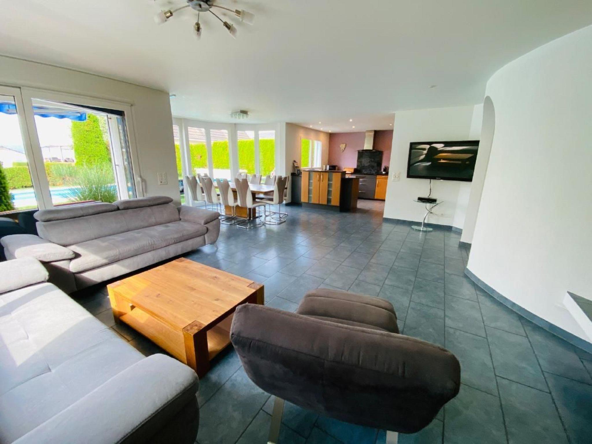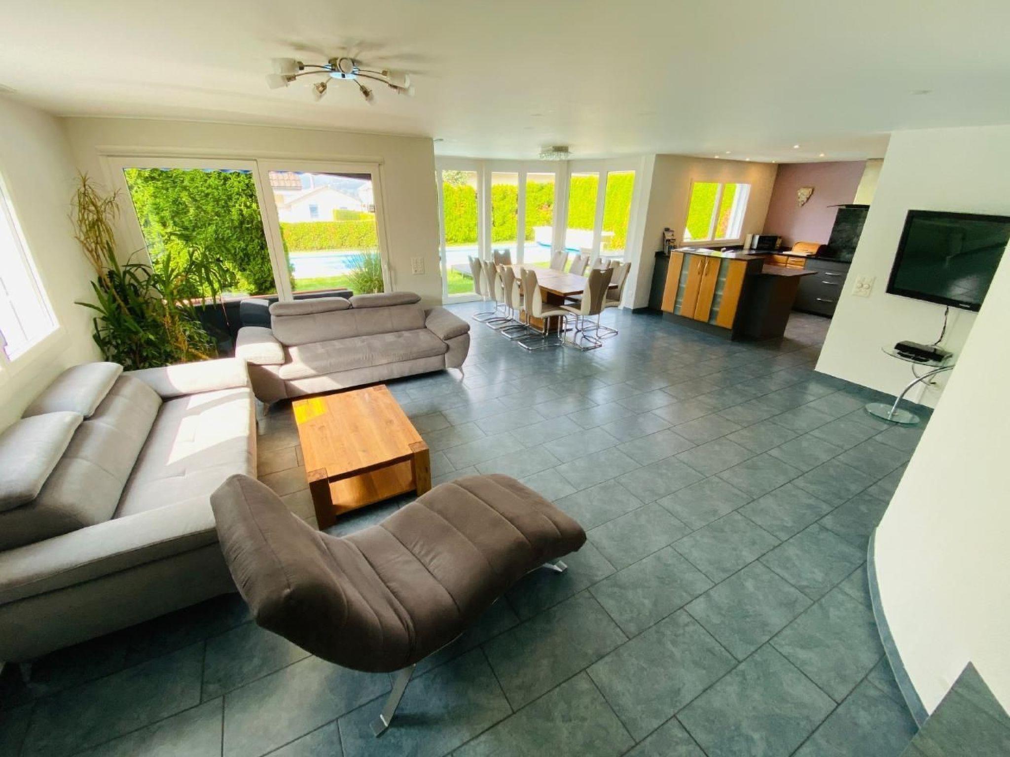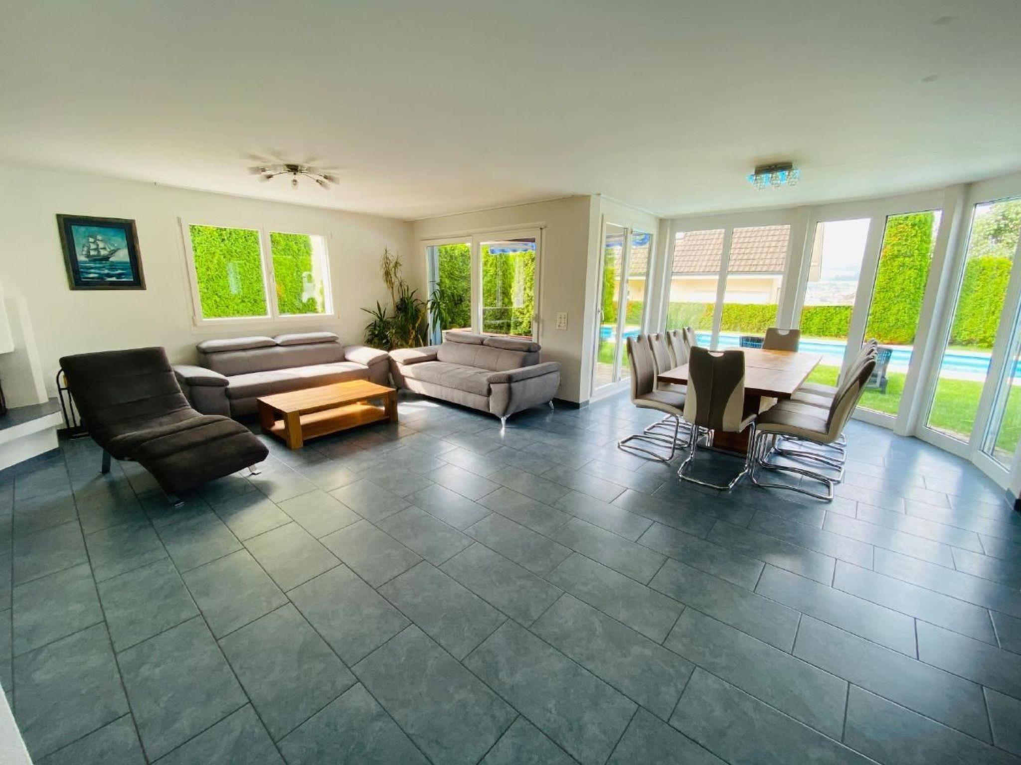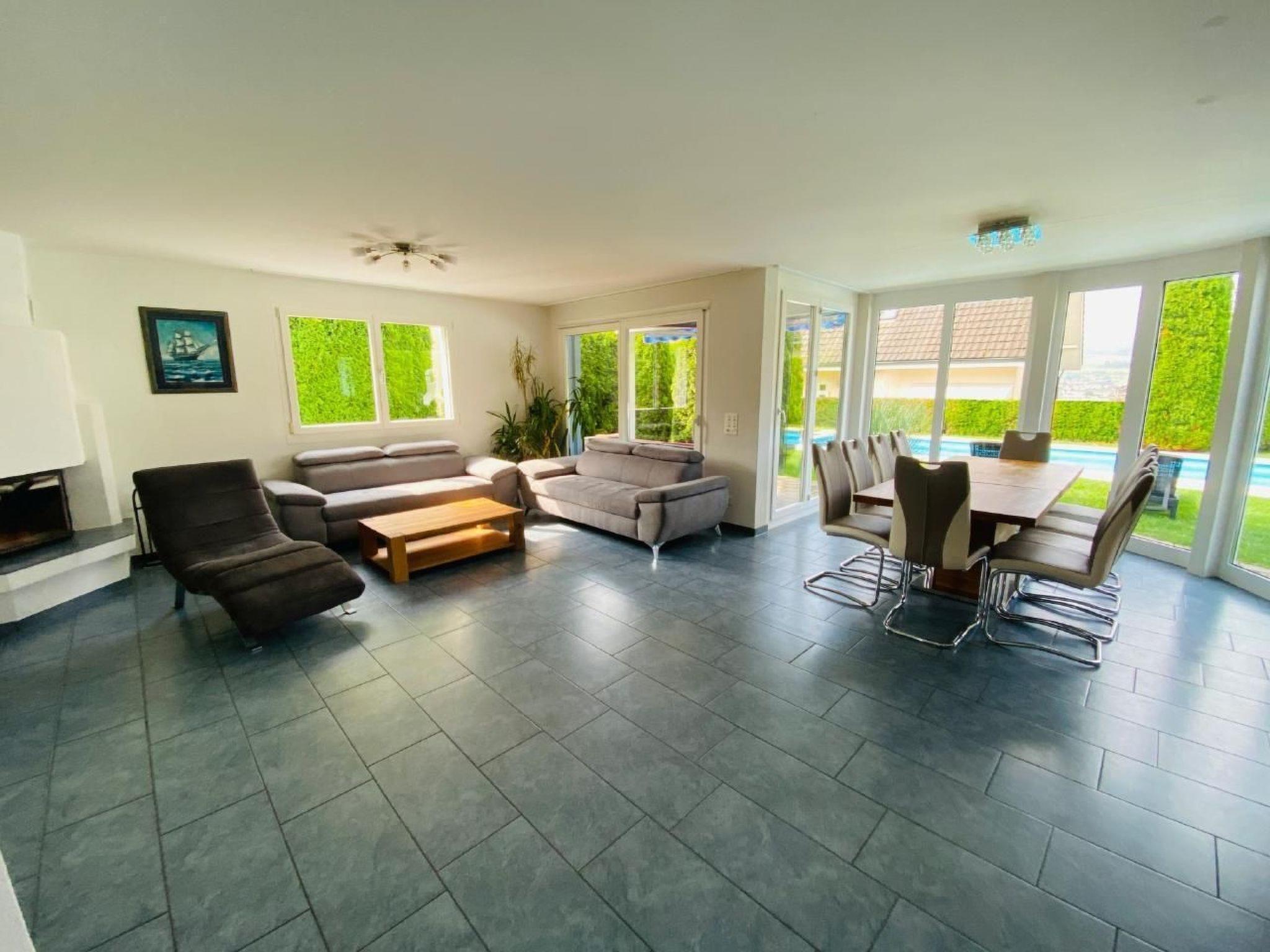 Willkommen in unserer Villa mit zahlreichen Entspannungs- und Freizeitmöglichkeiten. Ein beheizter 12-Meter-Außenpool und ein ganzjährig nutzbarer Whirlpool stehen zur Verfügung. Für sportliche Aktivitäten gibt es einen Fitnessbereich und eine Infrarotsauna. Drei Terrassen, darunter eine Poolterrasse, sowie ein Grillplatz laden zum Verweilen ein. Die Umgebung bietet malerische Wanderwege und ein grosses Grundstück mit gepflegtem Rasen. Die Villa verfügt über vier komfortable Schlafzimmer, eine voll ausgestattete Küche und einen sehr geräumigen Wohnbereich. Wir freuen uns auf Ihren Besuch! Weitere Informationen: Der beheizte Pool (12 m x 3,5 m) ist von anfangs April bis Ende August geöffnet, während der Whirlpool das ganze Jahr über mit angenehmen 37 Grad Celsius zur Verfügung steht. Die Villa besteht aus vier Schlafzimmern, wovon sich drei im obersten Stockwerk befinden: • Zwei Zimmer mit jeweils einem 180x200 cm Bett • Ein Zimmer mit einem 140x200 cm Bett • Ein viertes Zimmer im Untergeschoss mit Tageslicht, ausgestattet mit zwei Betten (140x200 cm und 180x200 cm) • Ein Kinderbett (Laufgitter) steht ebenfalls zur Verfügung Das Haus liegt an einer ruhigen Hanglage in einer privaten Sackgasse und ist daher ideal für Kinder. Die atemberaubende Natur in unmittelbarer Nähe bietet zahlreiche wunderschöne Wanderwege, die das Gesamterlebnis bereichern. Ein Parkplatz in der abgeschlossenen Garage, die mit dem Haus verbunden ist, steht zur Verfügung. Vor dem Haus gibt es weitere, dem Anwesen zugehörige Parkplätze für bis zu 4 Autos. Weitere wichtige Hinweise: • Im Haus und am Poolbereich dürfen nur die bei der Buchung angemeldeten Personen anwesend sein; Besuche sind nicht gestattet. Für nicht angemeldete Gäste wird eine Gebühr erhoben. • Das Haus ist als Wellness-Oase konzipiert und bietet eine ruhige und erholsame Urlaubszeit. • Aufgrund der Lage in einem Wohngebiet sind die vom Kanton Aargau vorgegebenen Ruhezeiten (von 12 Uhr bis 13 Uhr) und die Nachtruhe (ab 20 Uhr) strikt einzuhalten. • Das Haus ist ausschliesslich für Familien, Geschäftsleute und Gruppen von Erwachsenen (30+) geeignet. Jugendgruppen sind nicht zugelassen. Solche Buchungen werden automatisch ohne Rückerstattung storniert. • Zwei Outdoor-Kameras decken den gesamten Aussenbereich ab, wobei nur die Sicherheitsgesellschaft Zugriff auf die Aufnahmen hat.