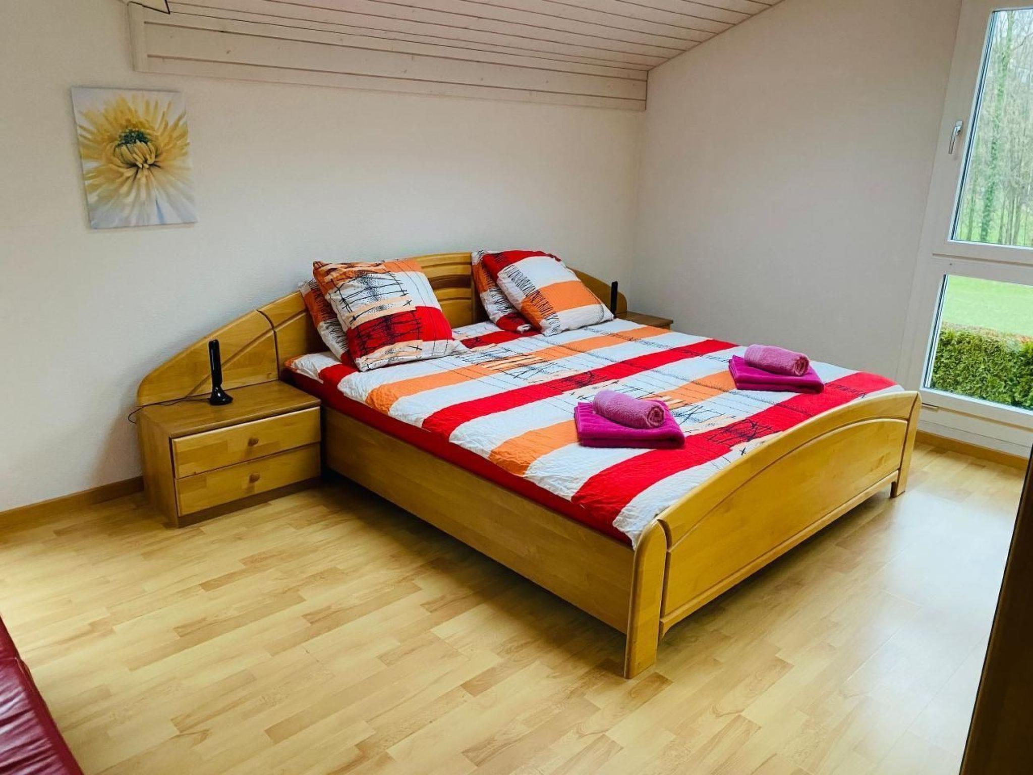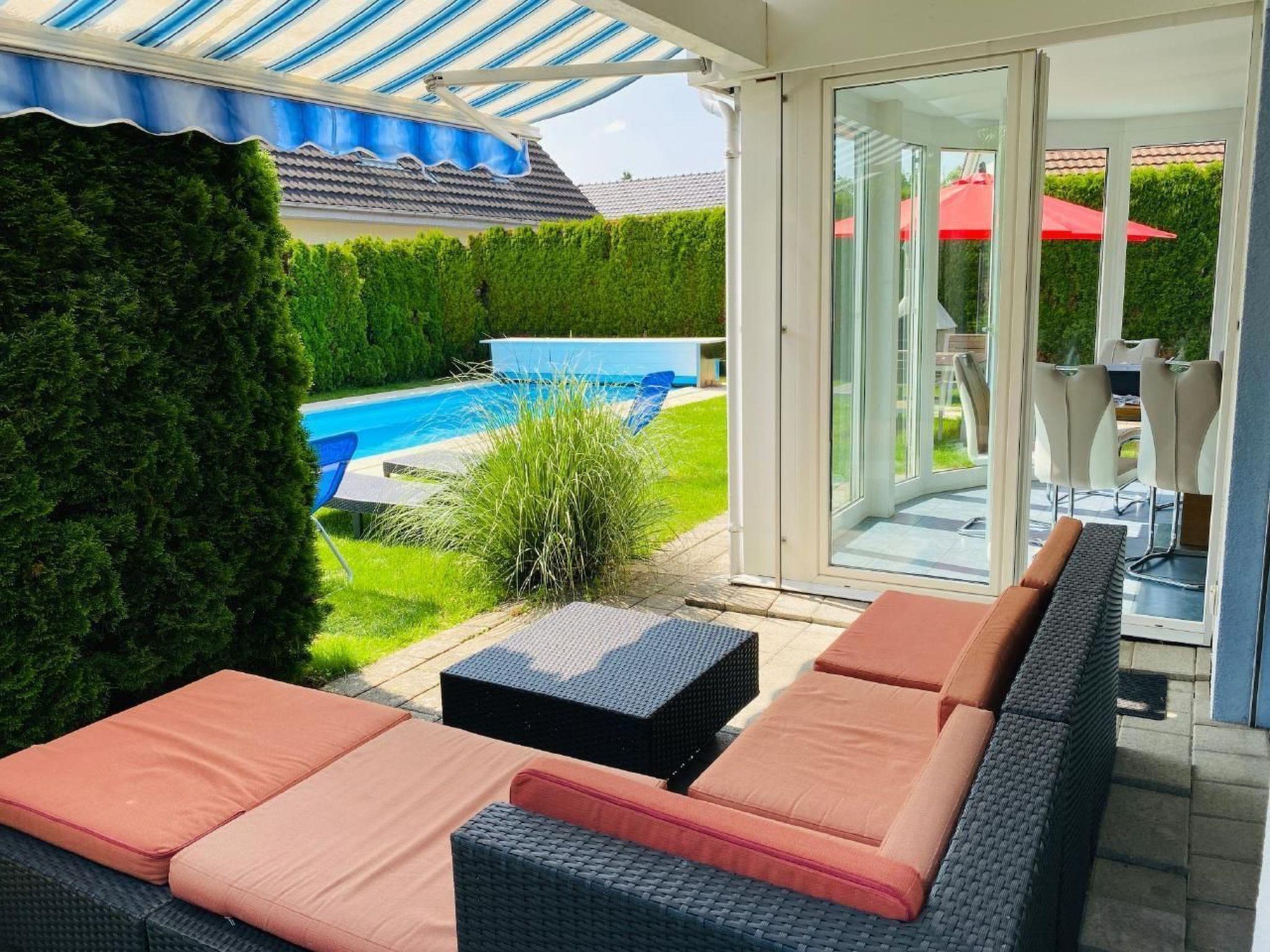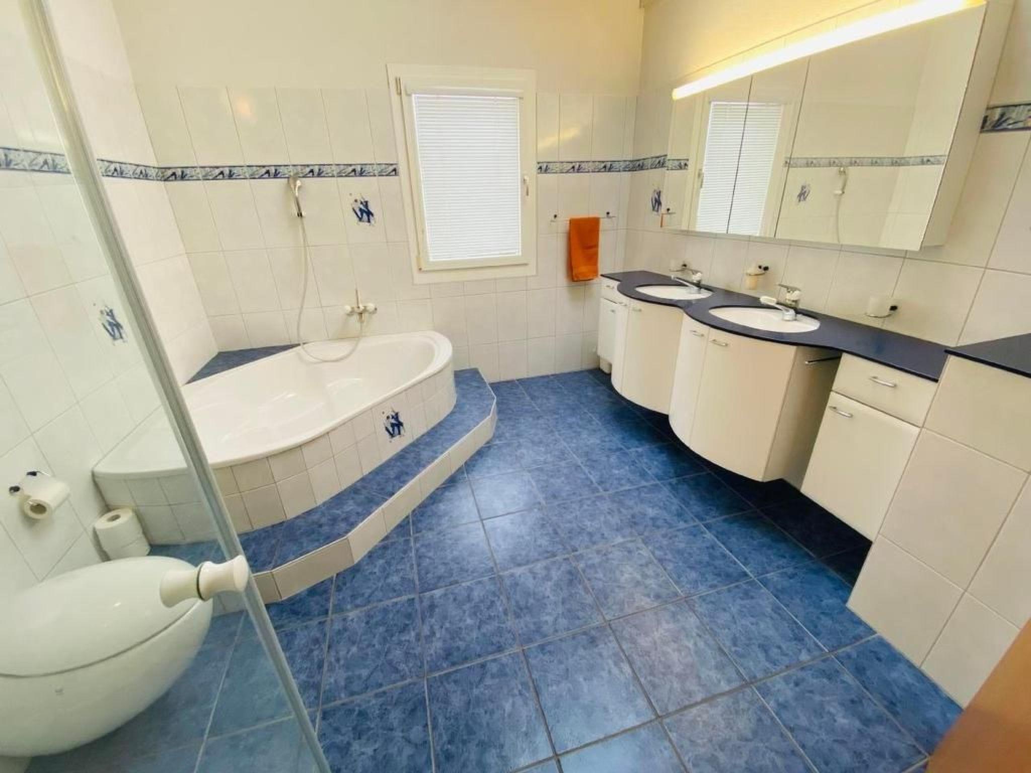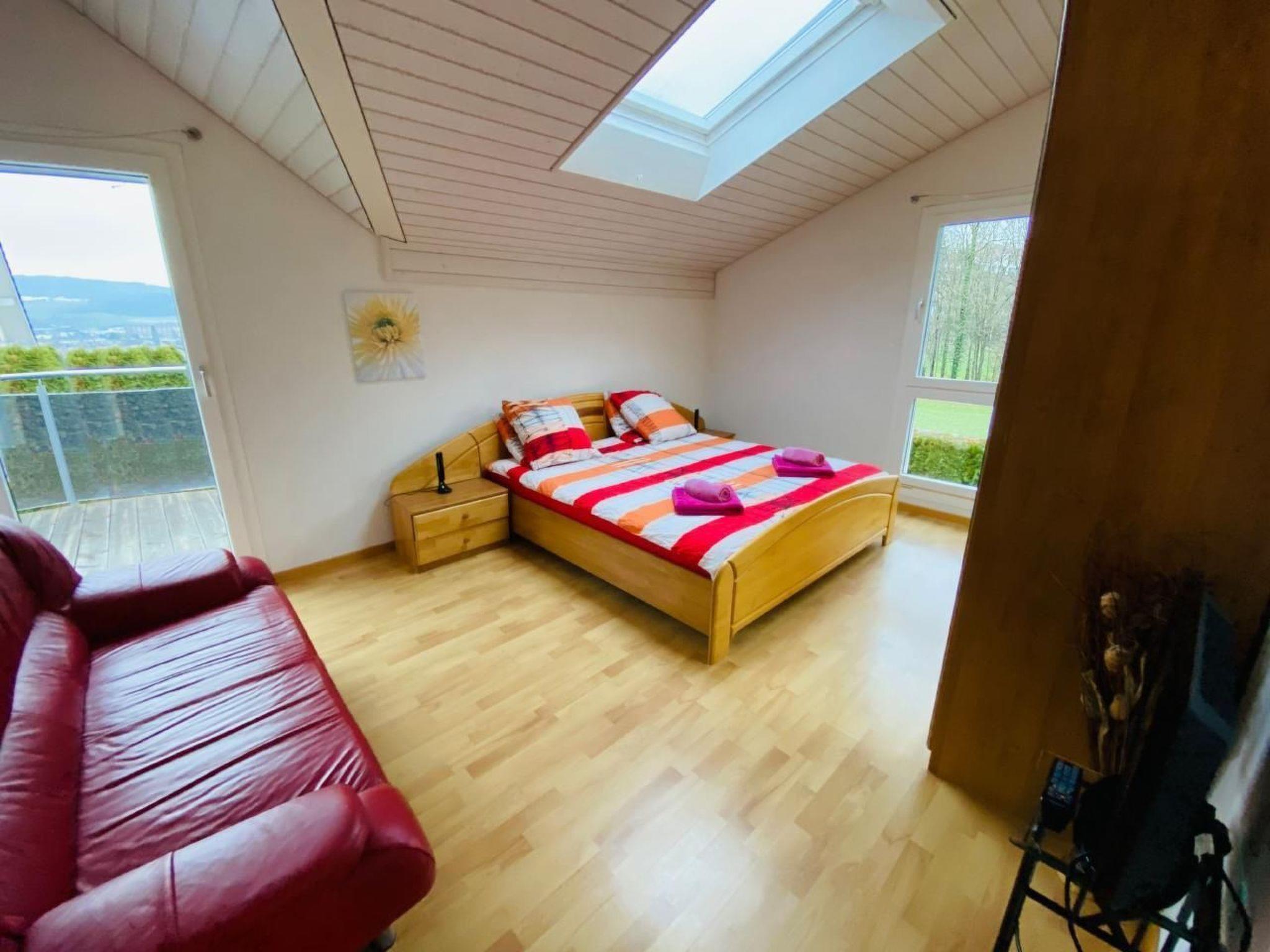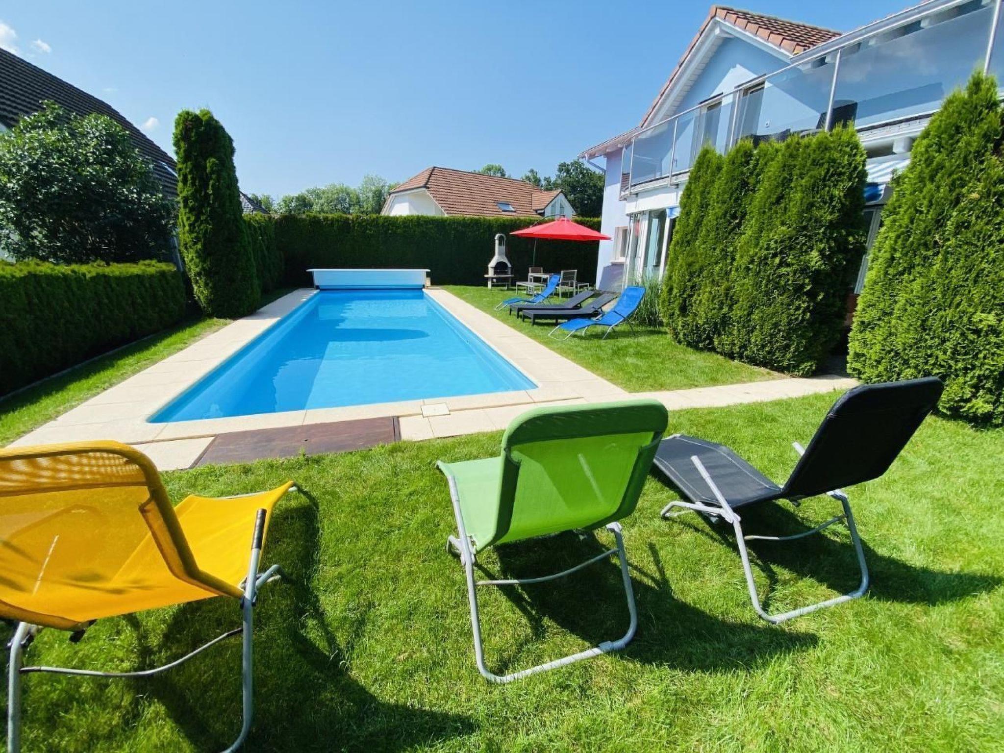 Willkommen in unserer Villa mit zahlreichen Entspannungs- und Freizeitmöglichkeiten. Ein beheizter 12-Meter-Außenpool und ein ganzjährig nutzbarer Whirlpool stehen zur Verfügung. Für sportliche Aktivitäten gibt es einen Fitnessbereich und eine Infrarotsauna. Drei Terrassen, darunter eine Poolterrasse, sowie ein Grillplatz laden zum Verweilen ein. Die Umgebung bietet malerische Wanderwege und ein grosses Grundstück mit gepflegtem Rasen. Die Villa verfügt über vier komfortable Schlafzimmer, eine voll ausgestattete Küche und einen sehr geräumigen Wohnbereich. Wir freuen uns auf Ihren Besuch! Weitere Informationen: Der beheizte Pool (12 m x 3,5 m) ist von anfangs April bis Ende August geöffnet, während der Whirlpool das ganze Jahr über mit angenehmen 37 Grad Celsius zur Verfügung steht. Die Villa besteht aus vier Schlafzimmern, wovon sich drei im obersten Stockwerk befinden: • Zwei Zimmer mit jeweils einem 180x200 cm Bett • Ein Zimmer mit einem 140x200 cm Bett • Ein viertes Zimmer im Untergeschoss mit Tageslicht, ausgestattet mit zwei Betten (140x200 cm und 180x200 cm) • Ein Kinderbett (Laufgitter) steht ebenfalls zur Verfügung Das Haus liegt an einer ruhigen Hanglage in einer privaten Sackgasse und ist daher ideal für Kinder. Die atemberaubende Natur in unmittelbarer Nähe bietet zahlreiche wunderschöne Wanderwege, die das Gesamterlebnis bereichern. Ein Parkplatz in der abgeschlossenen Garage, die mit dem Haus verbunden ist, steht zur Verfügung. Vor dem Haus gibt es weitere, dem Anwesen zugehörige Parkplätze für bis zu 4 Autos. Weitere wichtige Hinweise: • Im Haus und am Poolbereich dürfen nur die bei der Buchung angemeldeten Personen anwesend sein; Besuche sind nicht gestattet. Für nicht angemeldete Gäste wird eine Gebühr erhoben. • Das Haus ist als Wellness-Oase konzipiert und bietet eine ruhige und erholsame Urlaubszeit. • Aufgrund der Lage in einem Wohngebiet sind die vom Kanton Aargau vorgegebenen Ruhezeiten (von 12 Uhr bis 13 Uhr) und die Nachtruhe (ab 20 Uhr) strikt einzuhalten. • Das Haus ist ausschliesslich für Familien, Geschäftsleute und Gruppen von Erwachsenen (30+) geeignet. Jugendgruppen sind nicht zugelassen. Solche Buchungen werden automatisch ohne Rückerstattung storniert. • Zwei Outdoor-Kameras decken den gesamten Aussenbereich ab, wobei nur die Sicherheitsgesellschaft Zugriff auf die Aufnahmen hat.