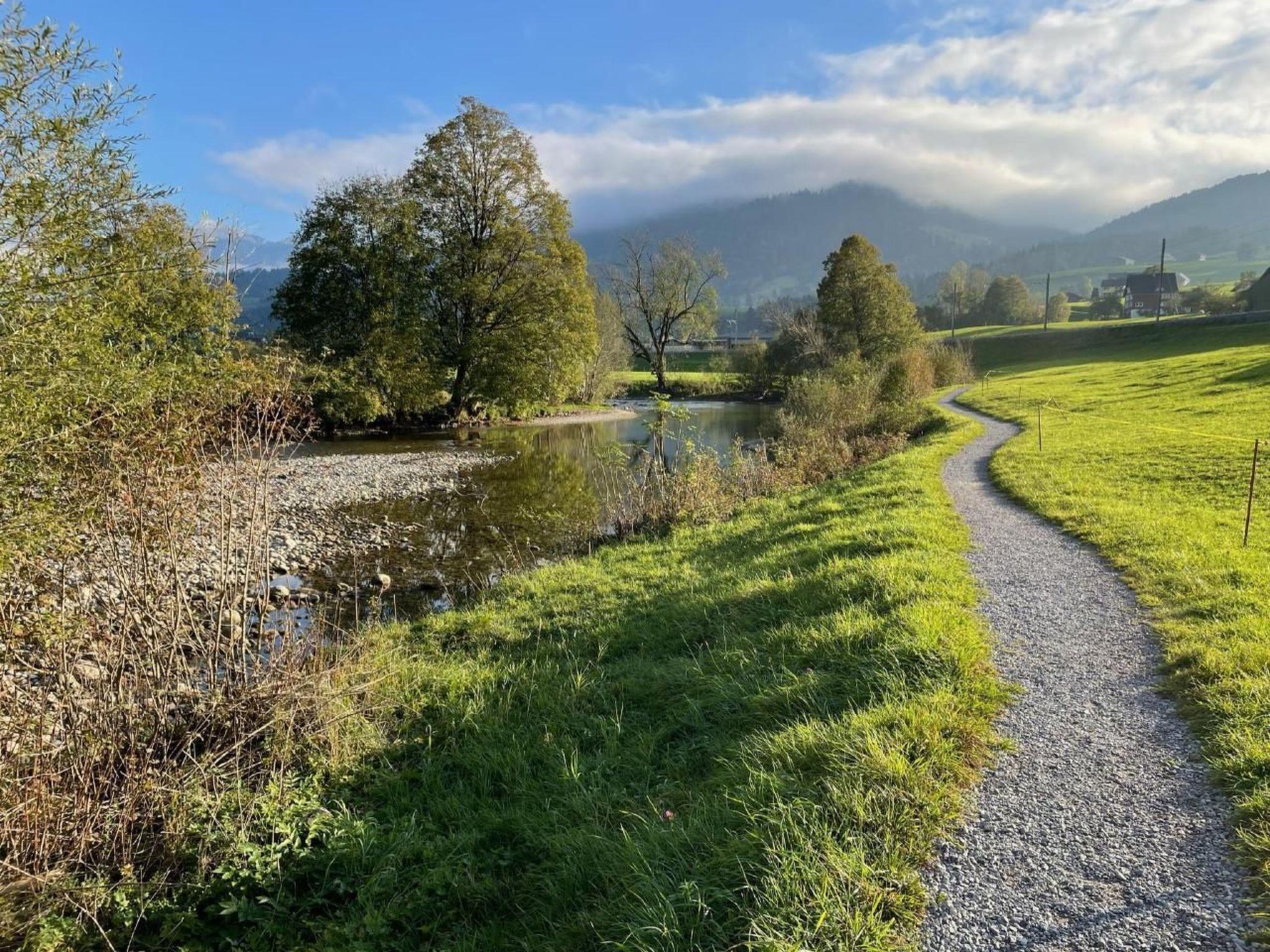 Der Außenbereich lädt mit einem naturnahen Garten, ausgestattet mit Terrassen und Obstbäumen, zum Entspannen und Verweilen ein. In den Sommermonaten bietet die nahegelegene Thur perfekte Bedingungen zum Grillen und Baden. Für die eigene Ausrüstung, sei es Fahrräder oder Wintersportgeräte, finden sich problemlose Unterbringungsmöglichkeiten auf Anfrage.