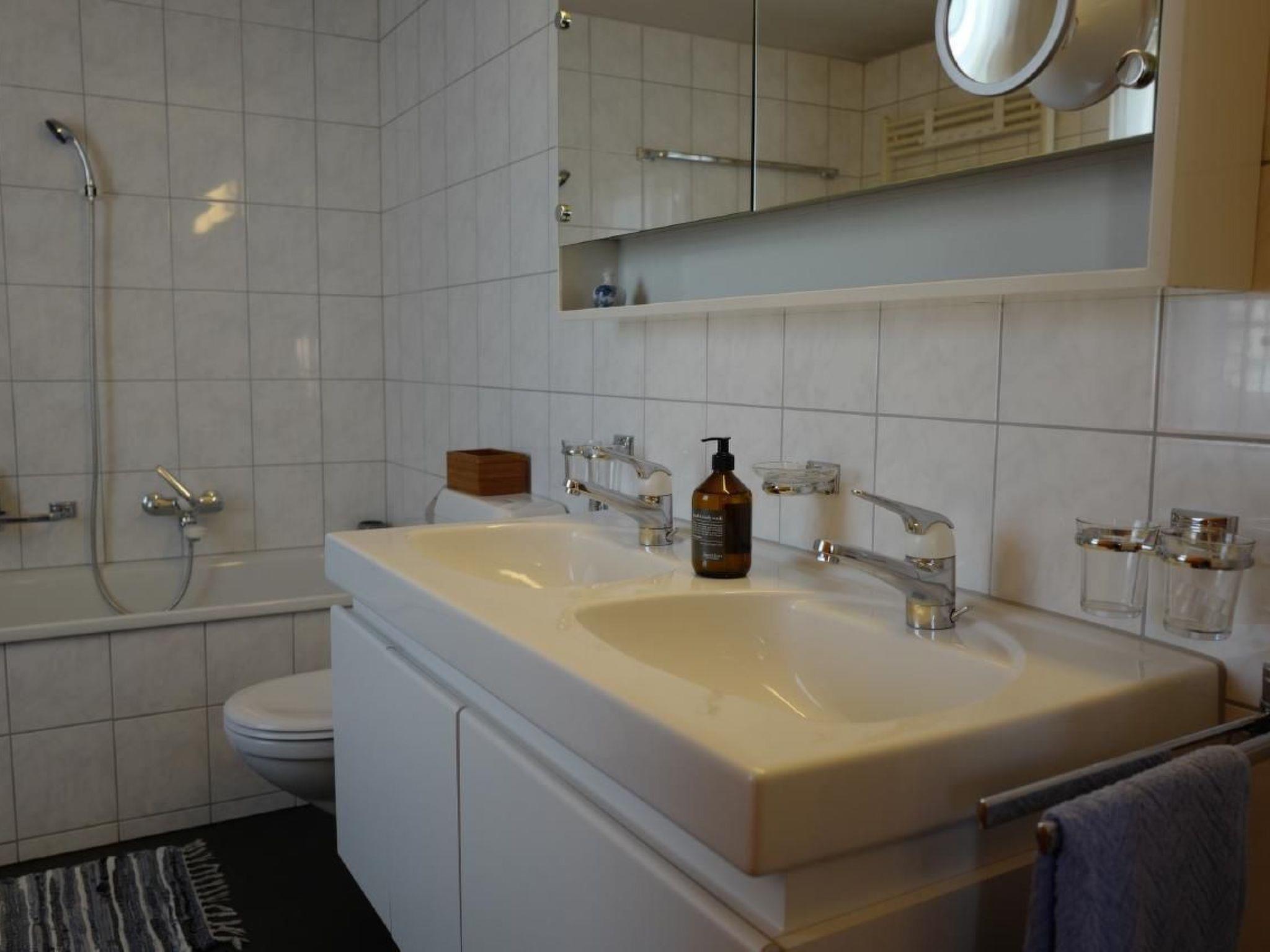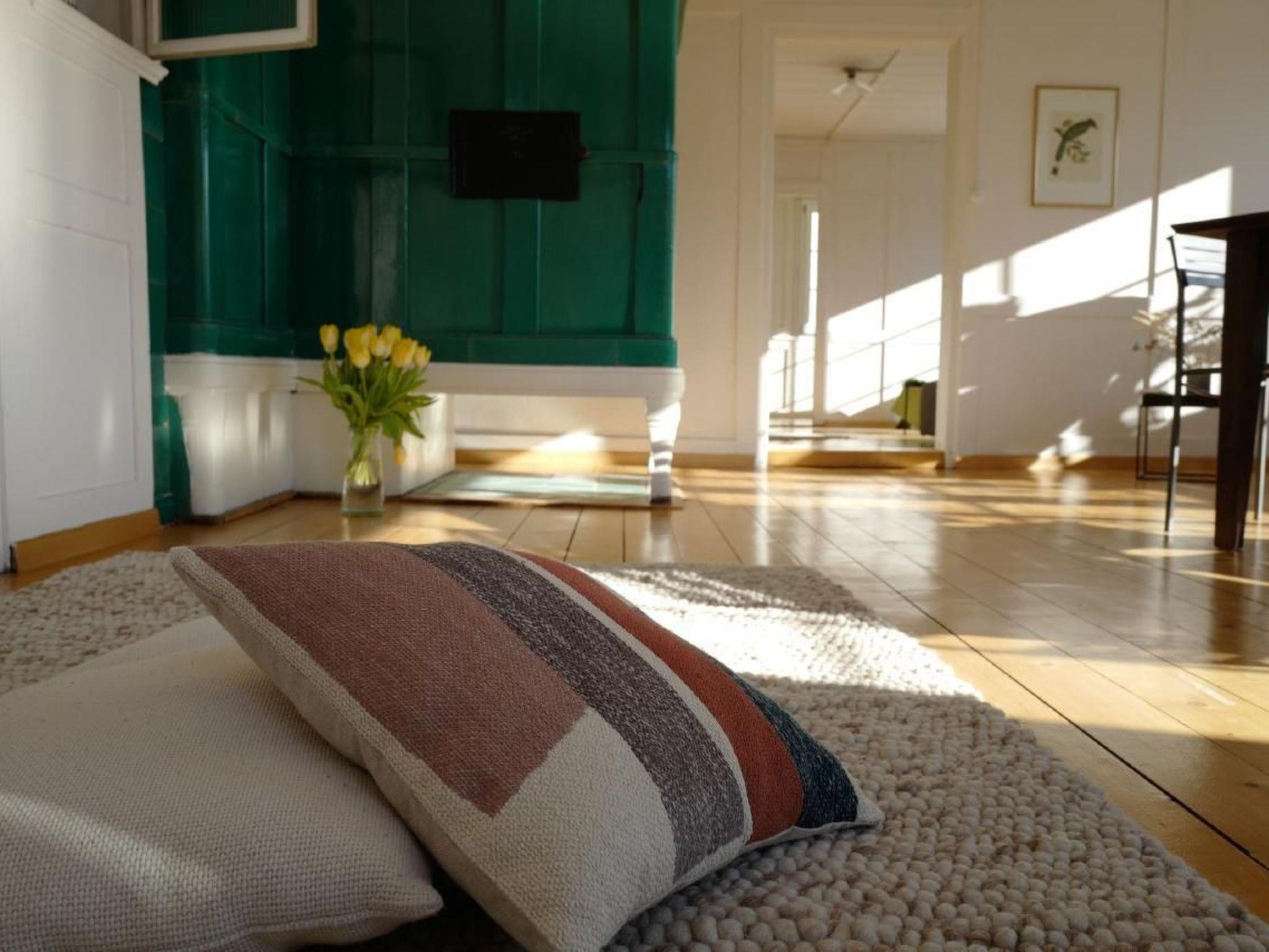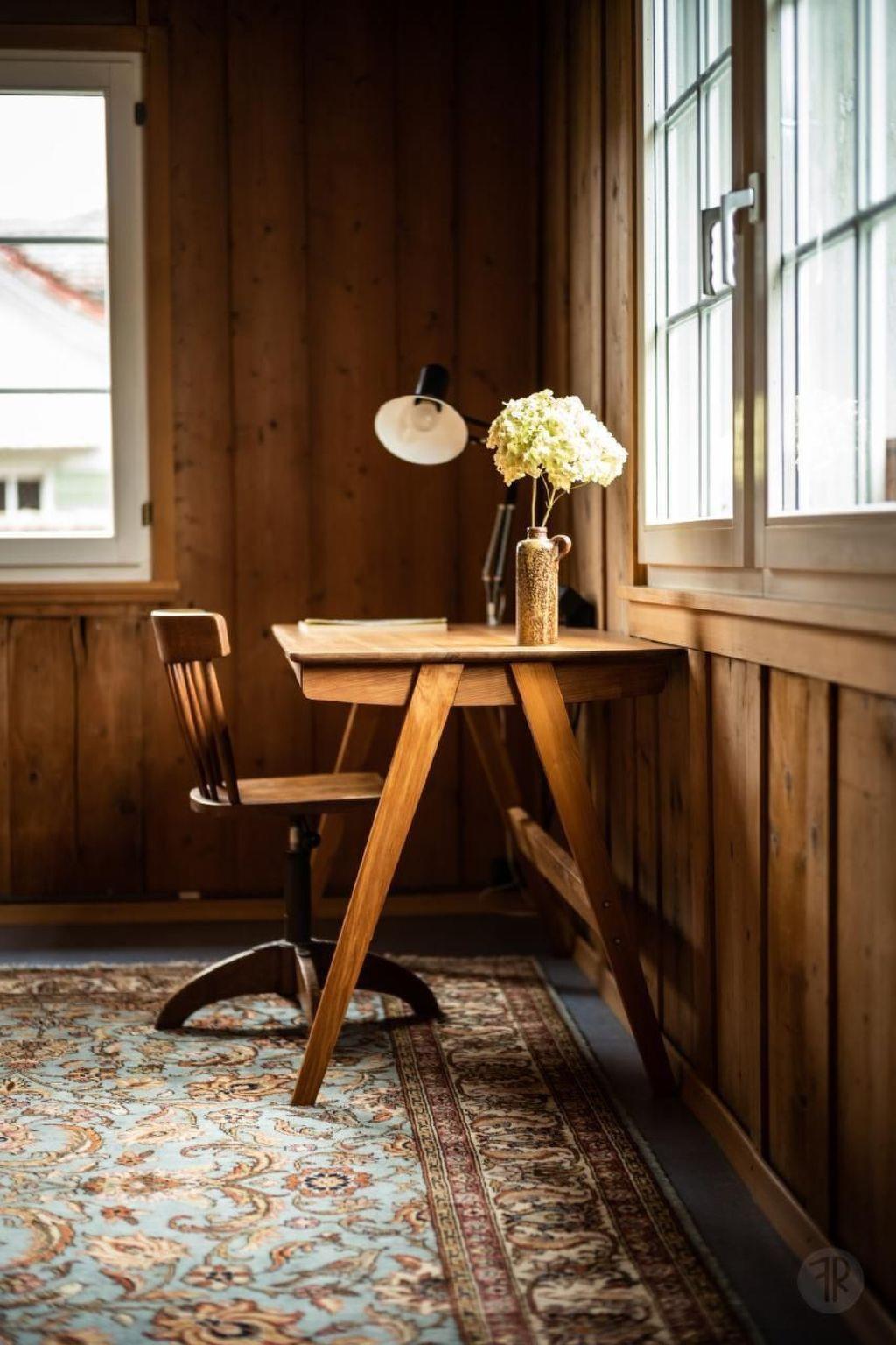 Im Inneren der großzügigen Wohnung erwartet Sie eine wohlüberlegte Ausstattung, die keine Wünsche offen lässt. Von komfortablen Betten mit kuschliger Baumwollbettwäsche in den beiden Schlafzimmern über ein einladendes Wohnzimmer mit Kachelofen, Ohrensessel und Beamer für Filmabende bis hin zum ruhigen Büro mit Arbeitsplatz – hier finden Sie alles, was es für erholsame Tage und produktive Stunden braucht. Zwei Bäder, ausgestattet mit modernen Duschkabinen und einer Doppellavabo, sowie eine voll ausgestattete Küche runden das Angebot ab.