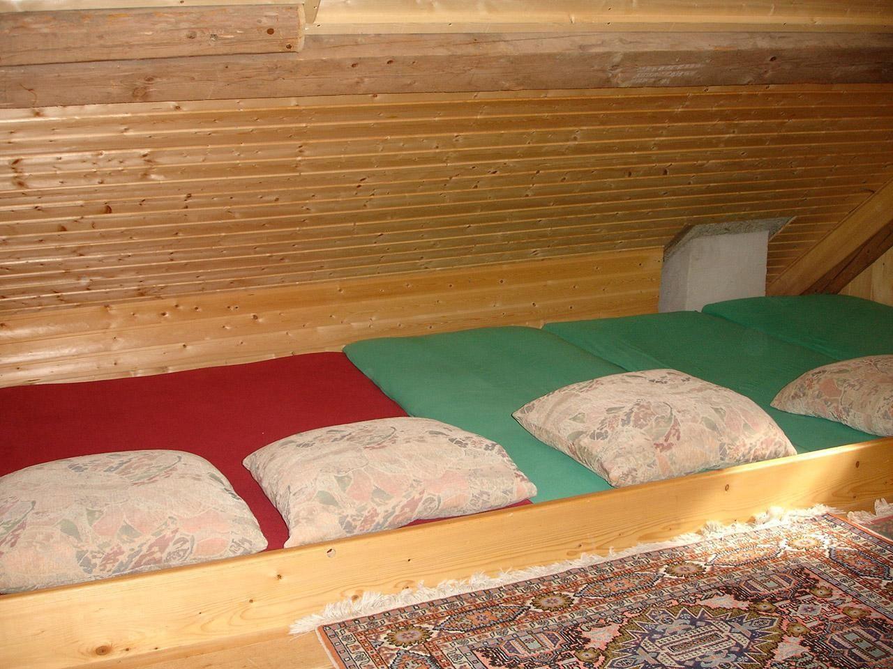 Es sind drei Schlafzimmer vorhanden (1x Doppelbett, 2x2 Etagenbetten, 5x Einzelbetten). Alle haben Fixleintücker und 7 Betten haben komplette Bettwäsche. Im Matratzenlager im Estrich (weitere 10 Schlafgelegenheiten) sind Kissen und Wolldecken vorhanden - oder es kann mit Schlafsack übernachtet werden.