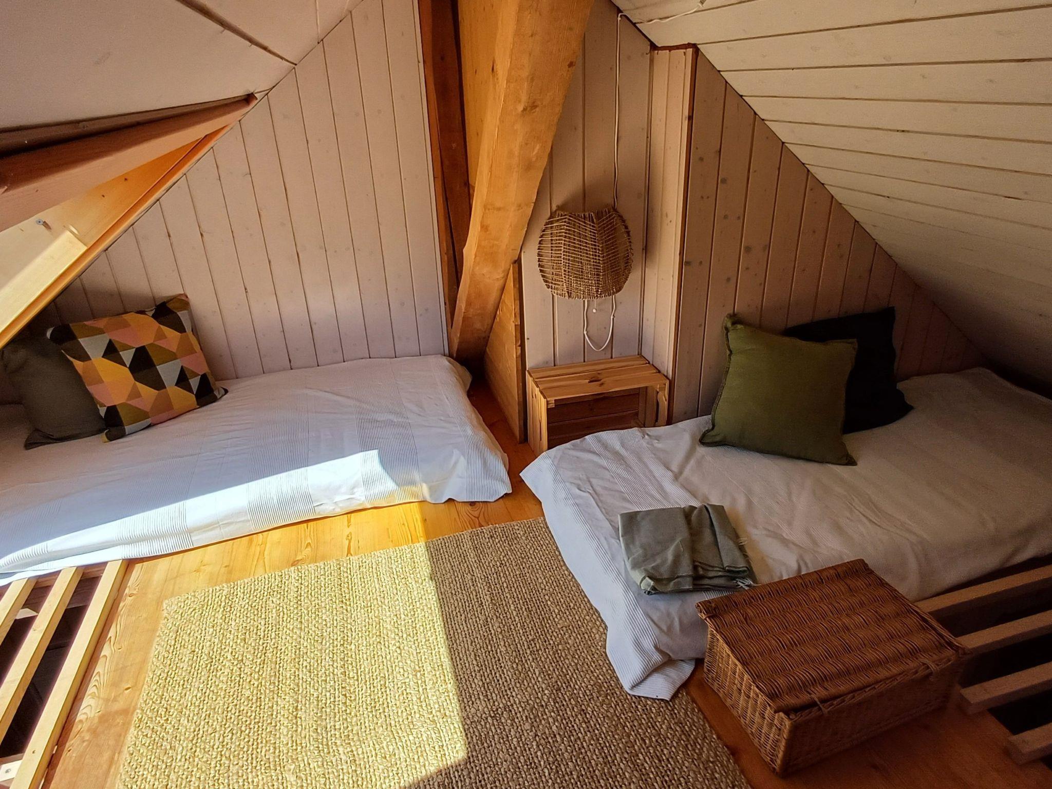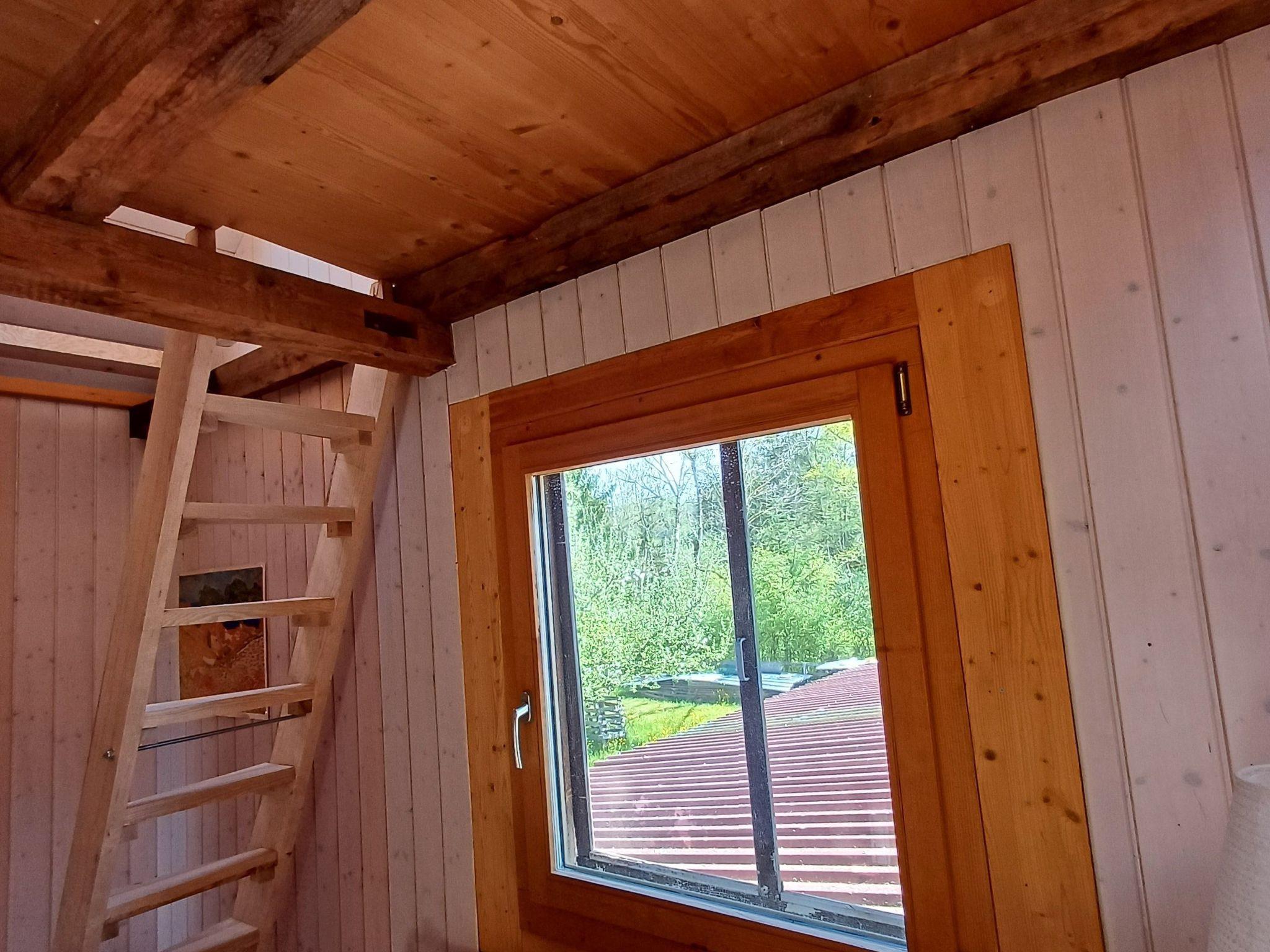 Entdecken Sie die beiden originellen Zimmer. Sie weisen den Standard einer Jugendherberge auf. Das eine Zimmer ist mit einem Doppelbett und einem Sofa ausgestattet; es dient sowohl als Wohn- wie auch als Schalfzimmer. Das andere Zimmer verfügt über eine Teeküche. Über eine steile Treppe gelangt man auf den Giebelboden mit zwei Schlafgelegenheiten, die sich insbesondere für grössere Kinder und Jugendliche eignen. Zudem ist die Teeküche über eine ebenso steile Innentreppe mit der Nasszelle verbunden. Dusche und WC erreicht man auch über eine gedeckte Aussentreppe.