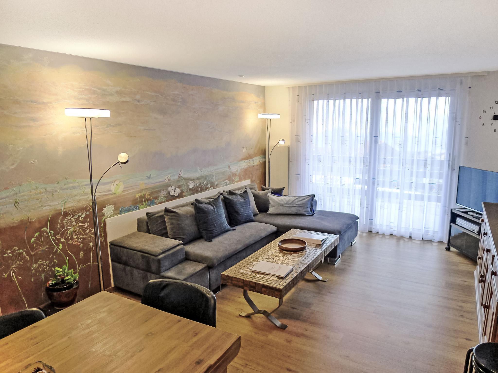 "Bennico", 4-Zimmer-Wohnung 67 m2, im erhöhten Erdgeschoss. Renoviert im Jahre 2016, komfortabel und gemütlich eingerichtet: Wohn-/Esszimmer mit Kabel-TV (Flachbildschirm). Ausgang zum Balkon. 1 Doppelzimmer mit 1 Doppelbett. 2 Zimmer, jedes Zimmer mit 2 Betten. Offene Küche (Backofen, Geschirrspüler, 4 Glaskeramikplatten, Mikrowelle, elektrische Kaffeemaschine, Racletteofen, Fondue Set (Käse)) mit Esstisch. Bad/WC. Balkon 11 m2. Balkonmöbel, Sitzplatz. Eingeschränkte Sicht auf den See, die Berge, das Tal, die Landschaft und die Ortschaft. Zur Verfügung: Babybett. Internet (WLAN, gratis). Parkplatz (1 Auto) beim Haus. Bitte beachten: Nichtraucher-Unterkunft. Maximal 1 Haustier/Hund erlaubt.