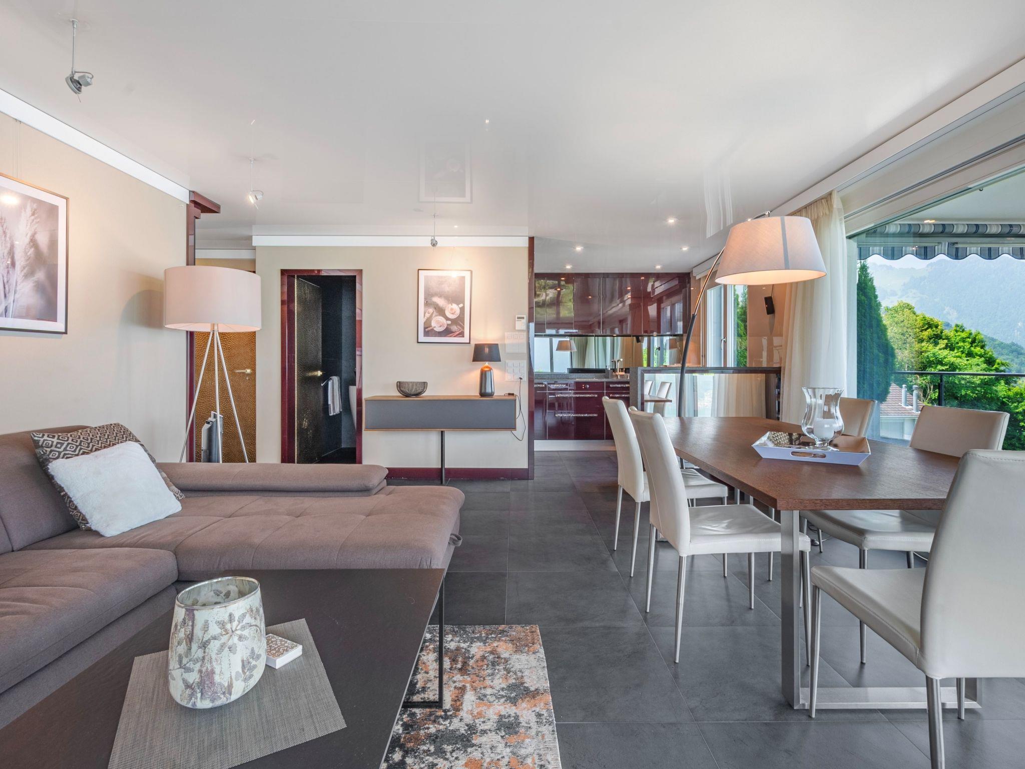 Traumhafte Aussicht über den Vierwaldstättersee in Richtung Bürgenstock (20 km entfernt) und Rigi. Emmetten liegt 25 km von Luzern und 54 km von Andermatt entfernt auf einer voralpinen Terrasse ca. 300 m über dem Vierwaldstättersee. Der Autobahnanschluss an die A2 (Gotthardroute) ist in 5 Autominuten erreichbar. Fünf Seilbahnen erschliessen die Wander- und Wintersportgebiete Emmetten, Stockhütte, Klewenalp und Niederbauen.