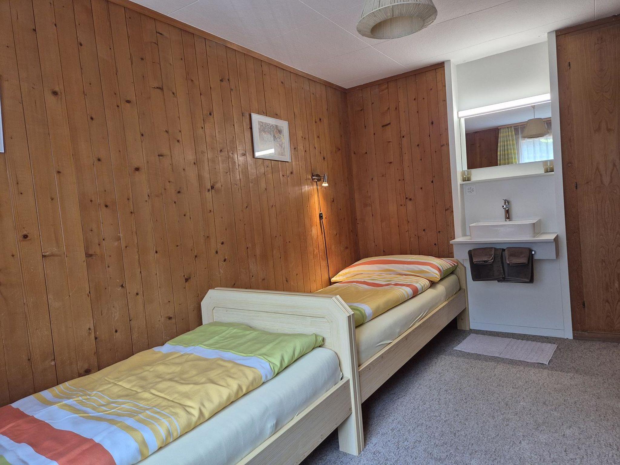90 m2. Weitere Angaben des Anbieters: Älteres, grosses Chalet (Wohnfläche ca. 90 m2) für 5-7 Personen, zentral gelegen, mit viel Umschwung, ebene Zufahrt, auf der Sonnenseite gelegen. Sportanlagen und Bergbahnen bequem zu Fuss erreichbar. Wohn-Esszimmer, Doppelzimmer, Zweibettzimmer, Zimmer mit Etagenbett plus Zusatzbett, Küche, Bad-WC, Dusche-WC. kostenloses WLAN. Tiere erlaubt.