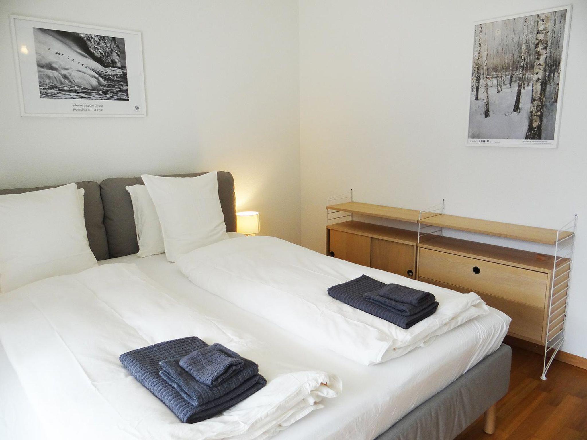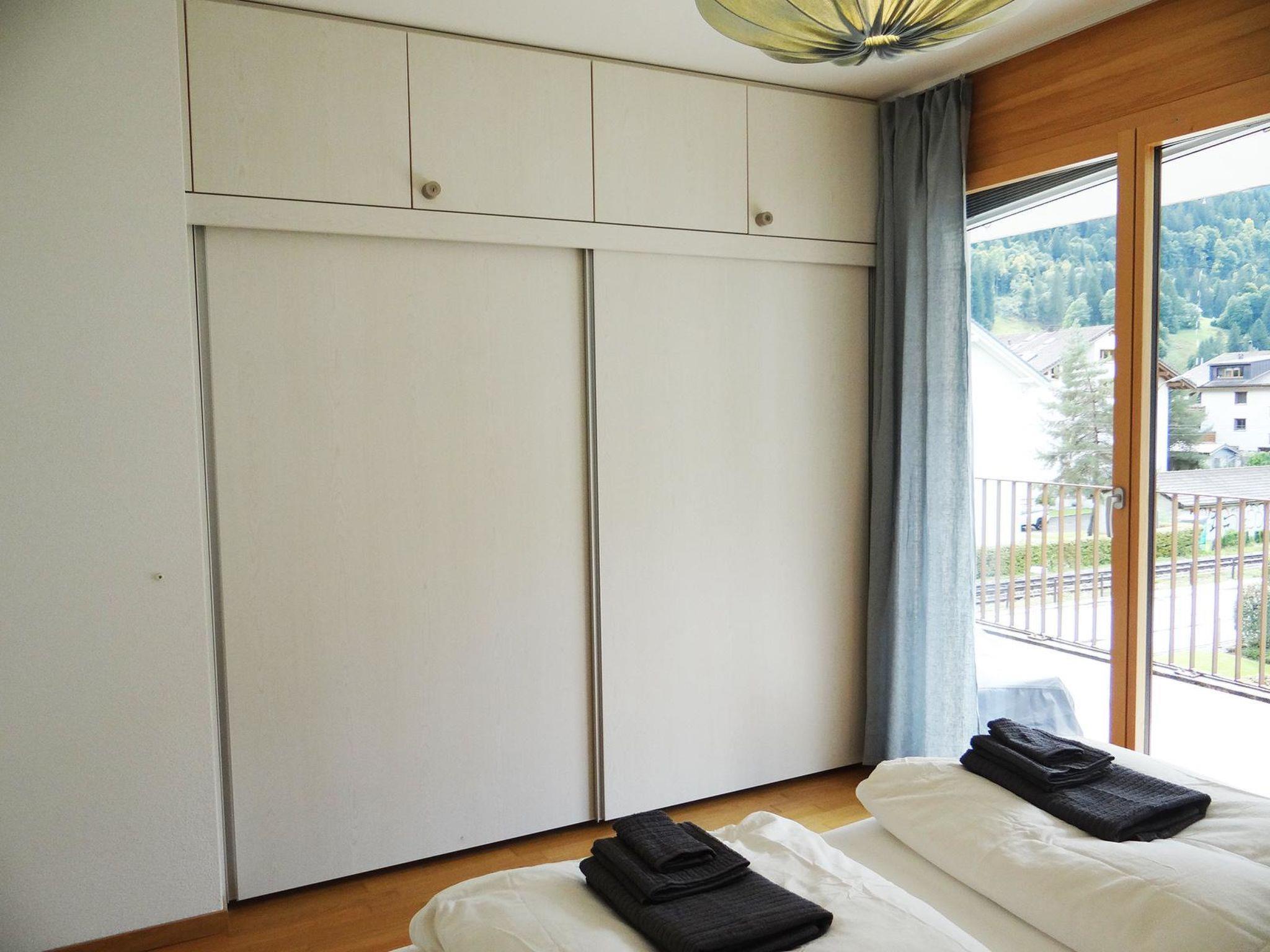 107 m2. Weitere Angaben des Anbieters: Die grosszügige und modern eingerichtete 3-Zimmerwohnung (107 m2) befindet sich im 2. Stock eines Mehrfamilienhauses an zentraler Lage (Nähe Bahnhof). Die Wohung verfügt über 1 Schlafzimmer mit Doppelbett, 1 Schlafzimmer mit Etagenbett, einem Wohnzimmer mit TV, eine offene Küche mit modernen Geräten (Geschirrspüler, Nespresso Maschine, usw.), einem separaten WC, Bad/WC mit einem Wäscheturm (Waschmaschine und Wäschetrockner) sowie einer grossen sonnigen Südterrasse mit herrlichem Bilck auf die umliegende Bergwelt. Kostenloses WLAN. 1 Parkplatz in Einstellhalle. Skiraum. Nichtraucher-Wohnung. Tiere sind nicht erlaubt.