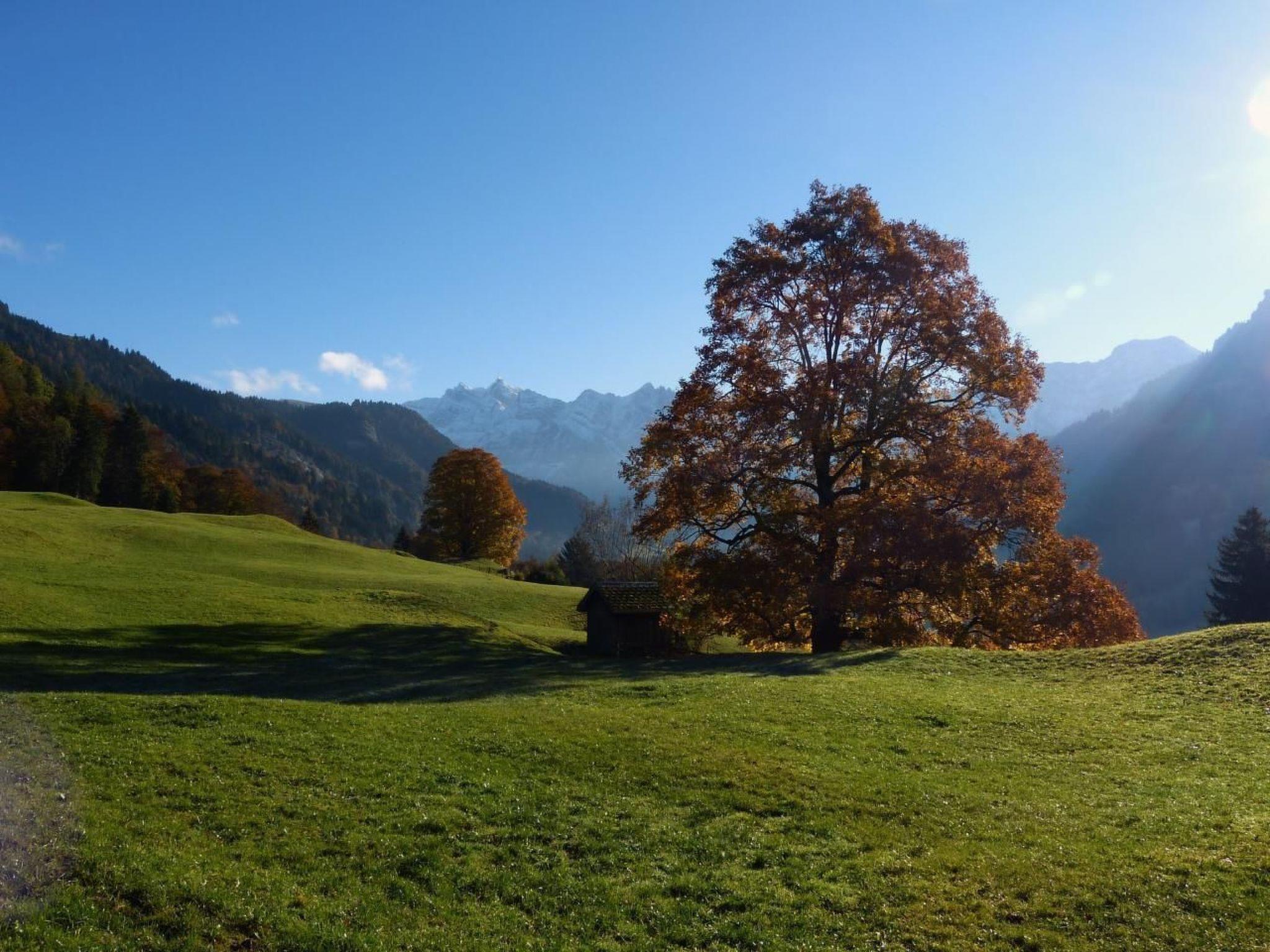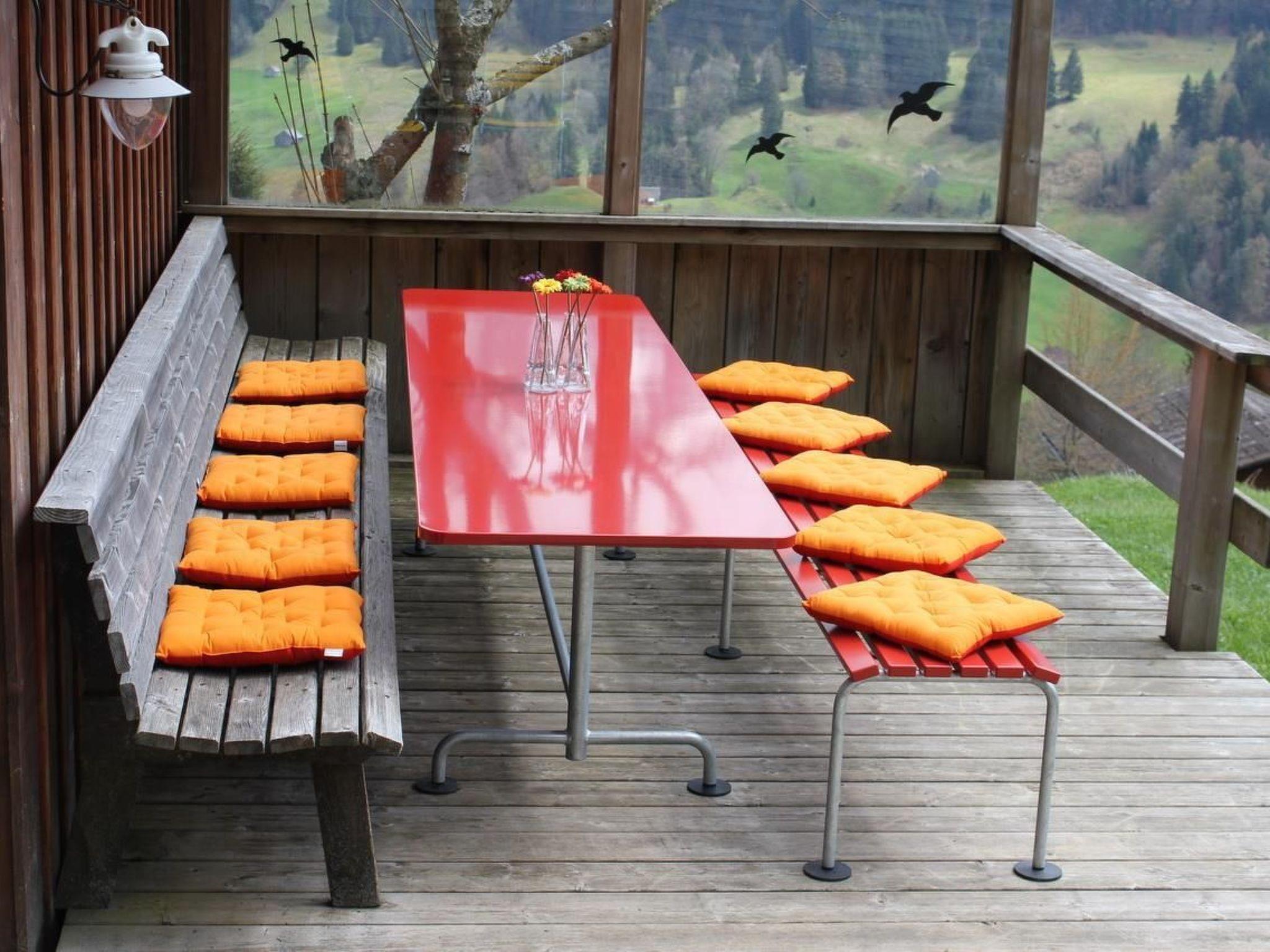 Eine windgeschützte Terrasse, der grosszügige Rasensitzplatz unter Apfelbäumen mit origineller Feuer- und Grillstelle, laden geradezu zum stundenlangen Verweilen ein. Von jedem Platz aus ist die herrliche Aussicht in die Bergwelt und gesunden Wälder zu geniessen!